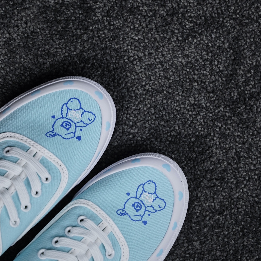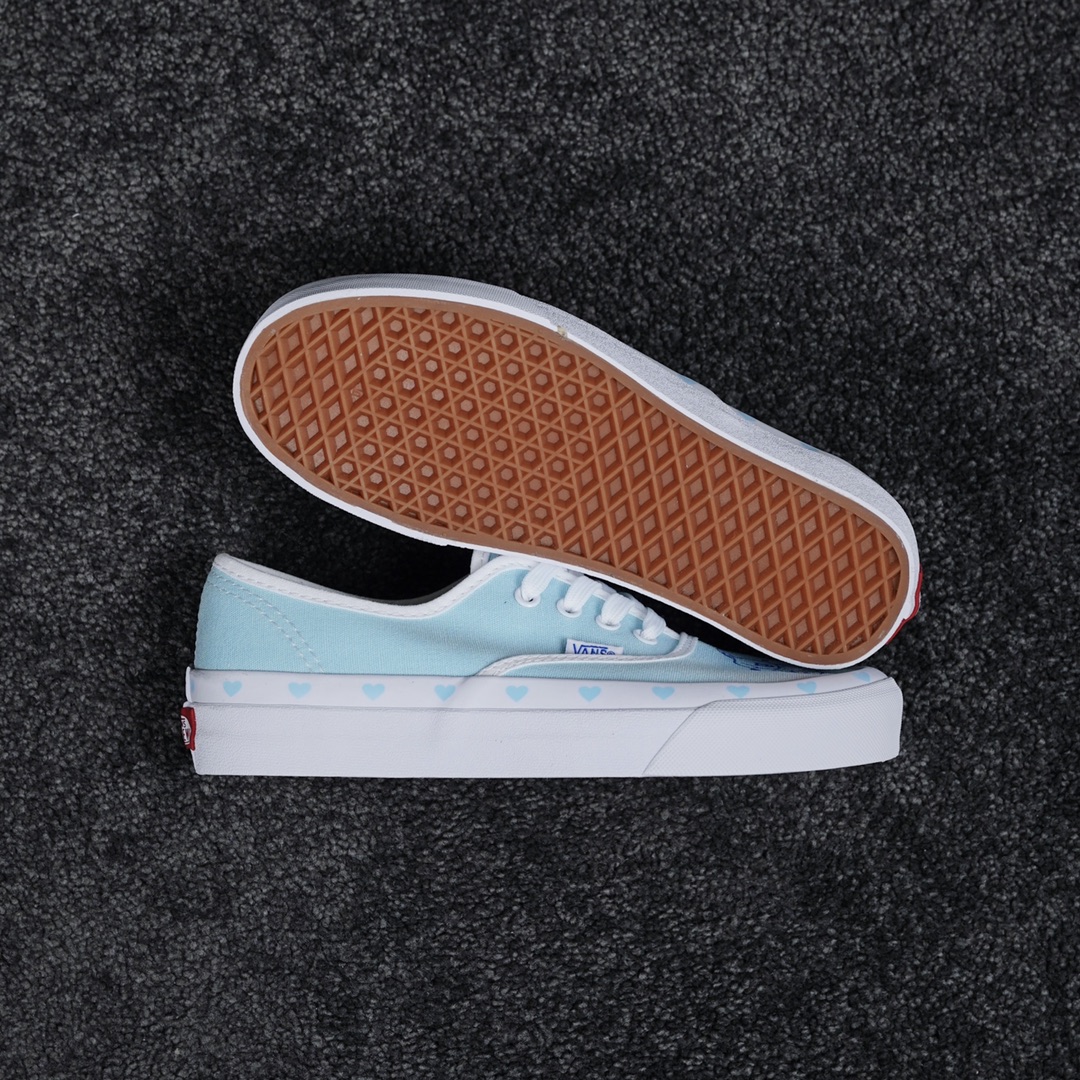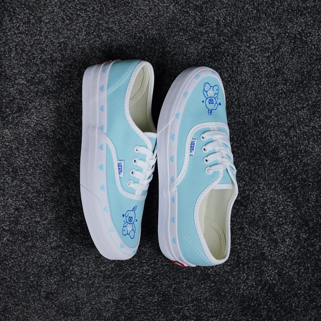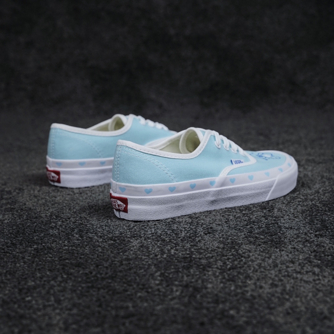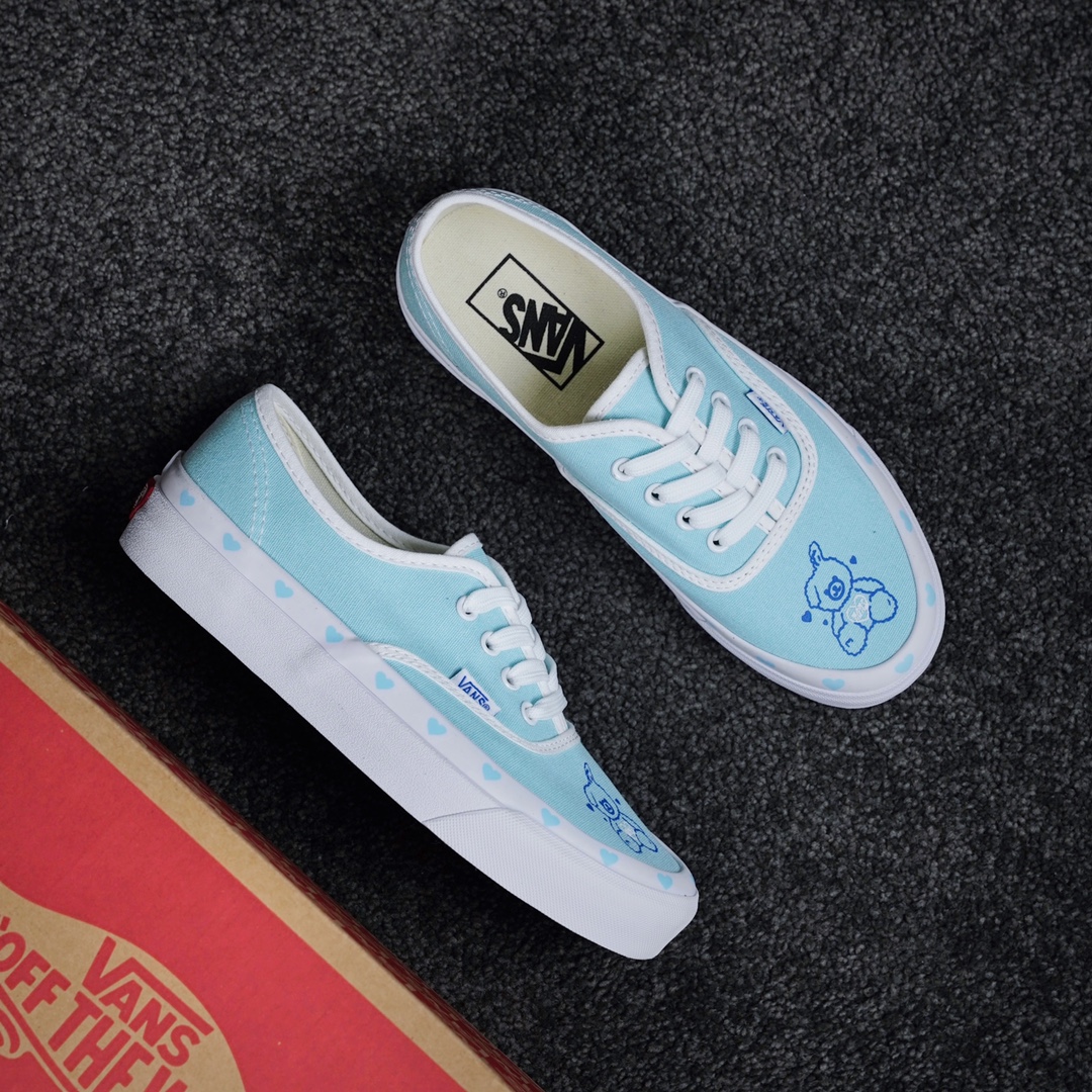 G0 Vans Authentic 淡蓝小熊爱心万斯海外官网新版 浅蓝面布搭配白色围条 满满少女心 独特的围条印上蓝色爱心搭配独特小熊涂鸦 让你感受不一样的感觉