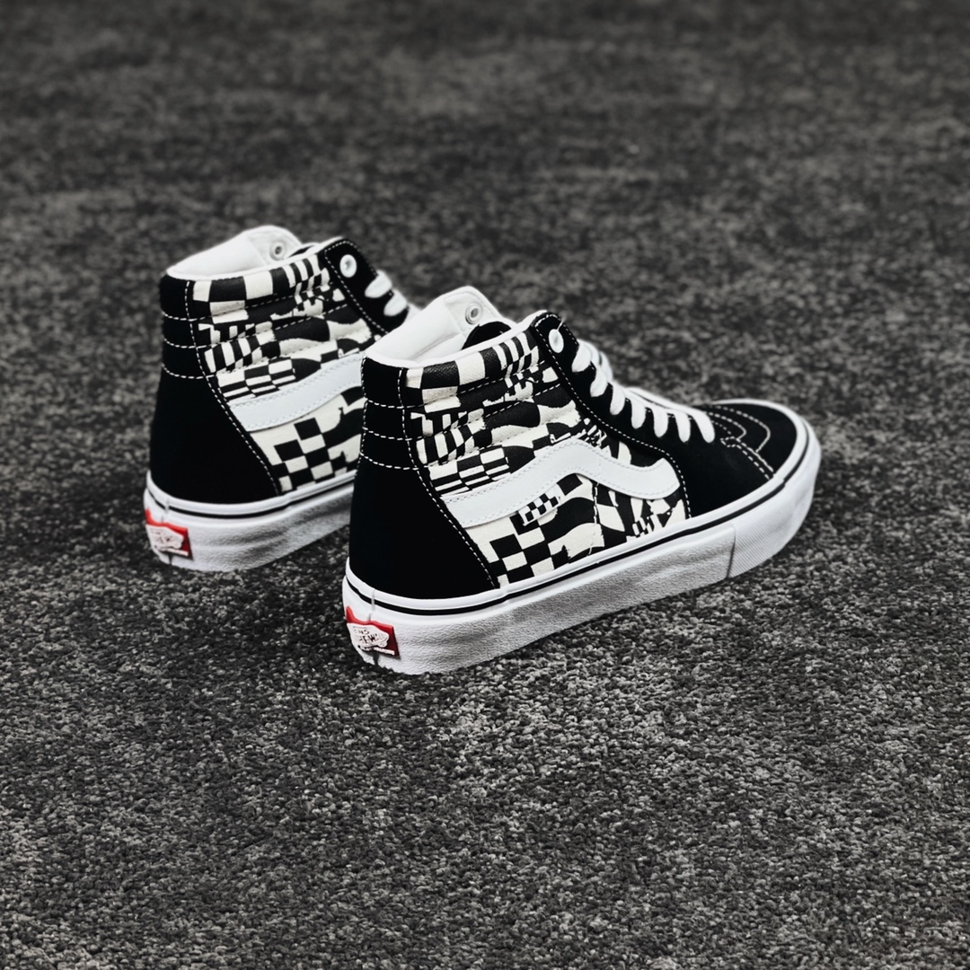 G0 Vans Sk8-Hi Pro 黑白棋盘格印花范斯官方 侧边条纹职业滑板鞋 大底边侧钢印PRO 整双鞋风格复古 更显气质 上脚超显大气尺码:35 36 36.5 37 38 38.5 39 40 40.5 41 42 42.5 43 44 工艺:硫化1:1(重量1:1、真标、原钢印、材质标、鞋型标、合格证)