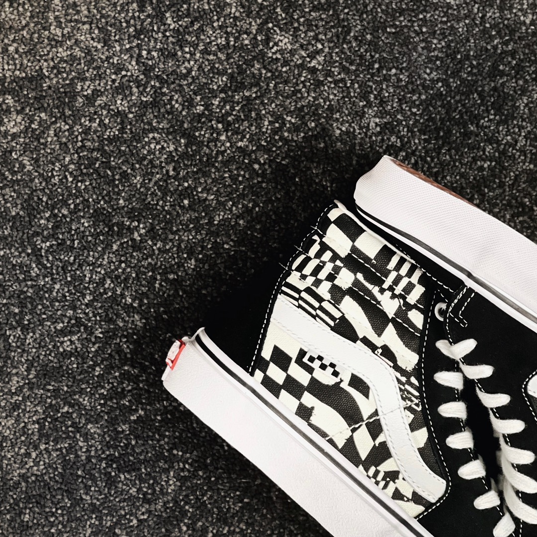 G0 Vans Sk8-Hi Pro 黑白棋盘格印花范斯官方 侧边条纹职业滑板鞋 大底边侧钢印PRO 整双鞋风格复古 更显气质 上脚超显大气