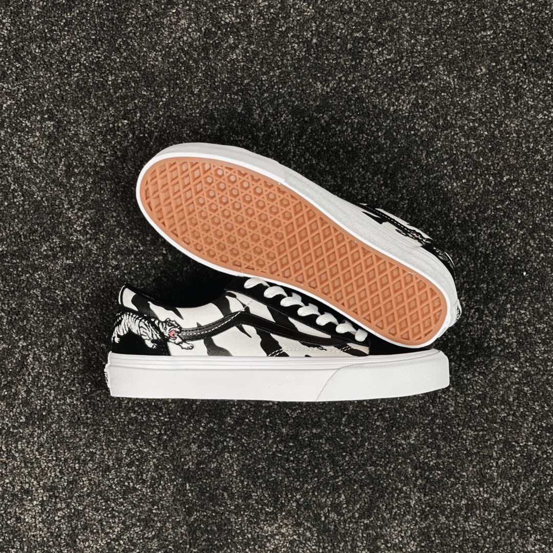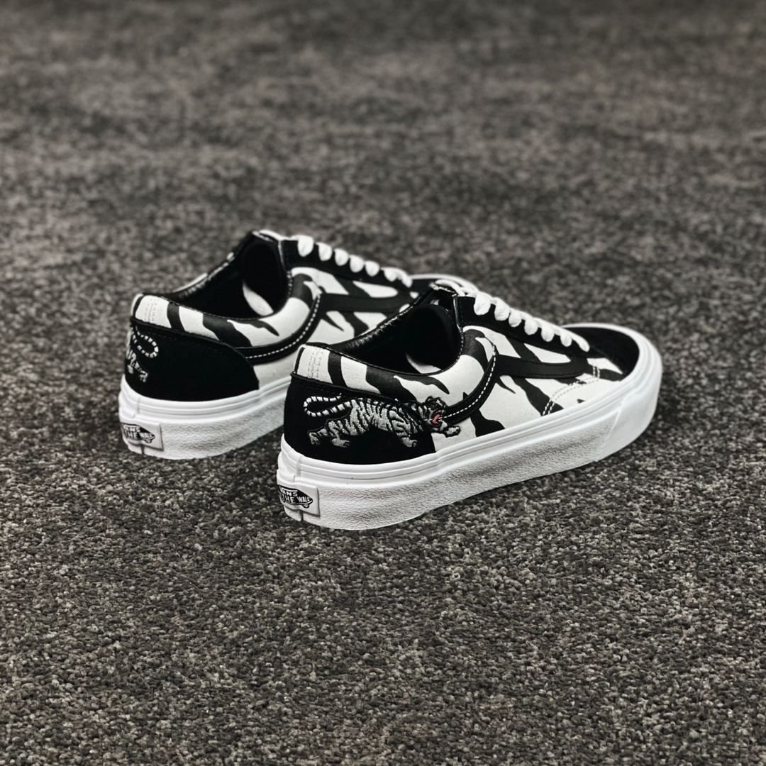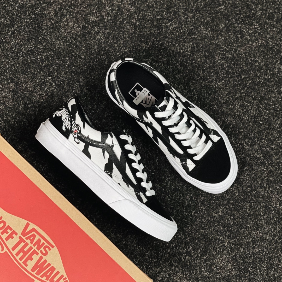 G0 Vans Style 36 黑白老虎刺绣VANS将2022壬寅年虎年元素与经典棋盘格元加以变幻并运用至经典鞋型,推出虎年限定系列。Style 36该系列彩用具有新年代表性,后跟和鞋身电锈老虎图案,鞋身印有人气豹纹印花以及棋盘格爱心印花三组合鞋款凸显设计主题以交叉重叠呈现出炸眼的视觉效果。