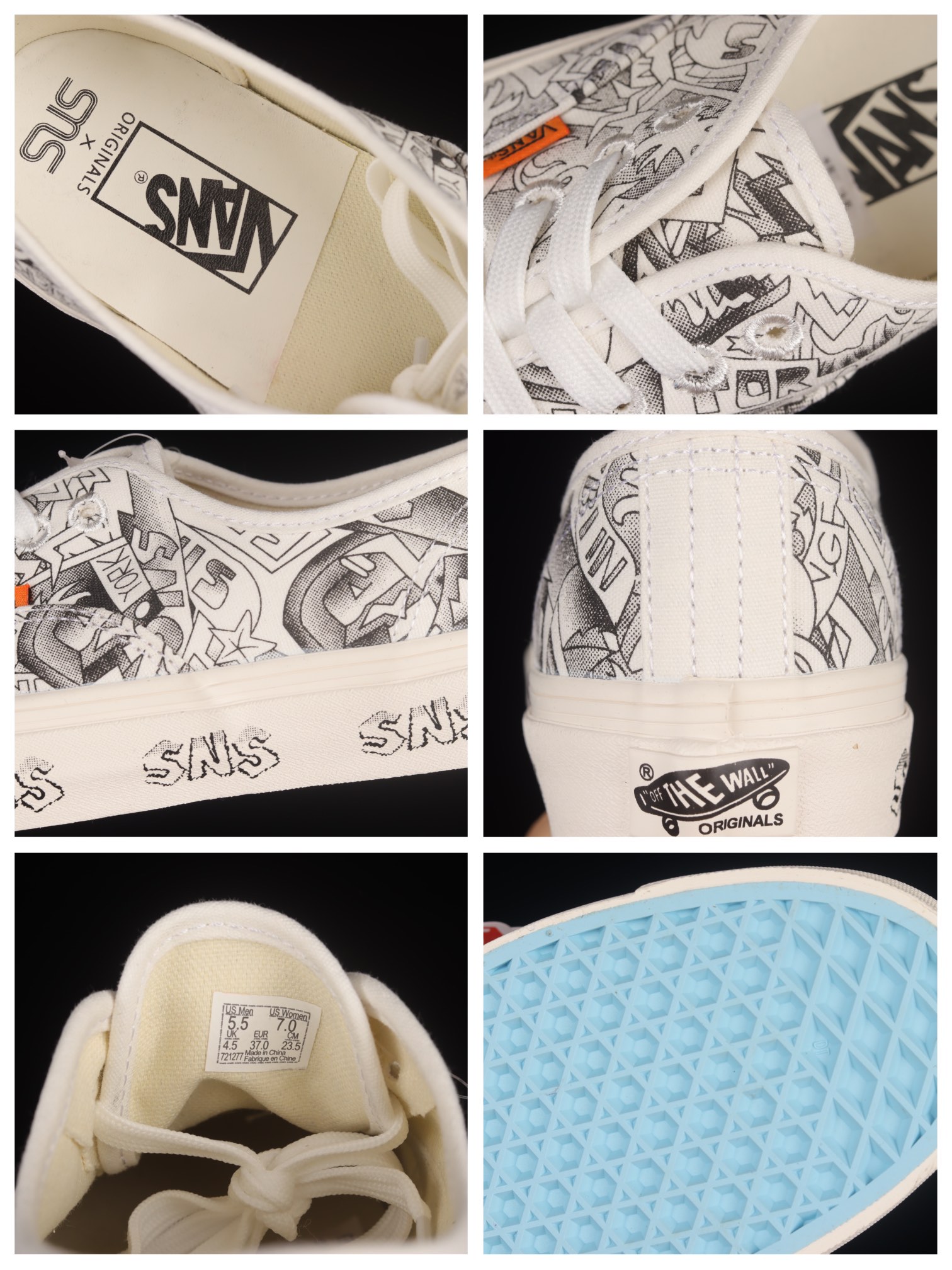 G0 Vans Vault x SNS 联名黑白插图海滩印花复古帆布板鞋 VN0A4BV9676此次采用Authentic鞋型,鞋面整体以米白为主色,搭配了涂鸦图案,中底部分印上了sns字样,鞋垫部分也同样表示了其合作身份。外底则采用了比较清新的天蓝尺码:35 36 36.5 37 38 38.5 39 40 40.5 41 42 42.5 43 44 hj