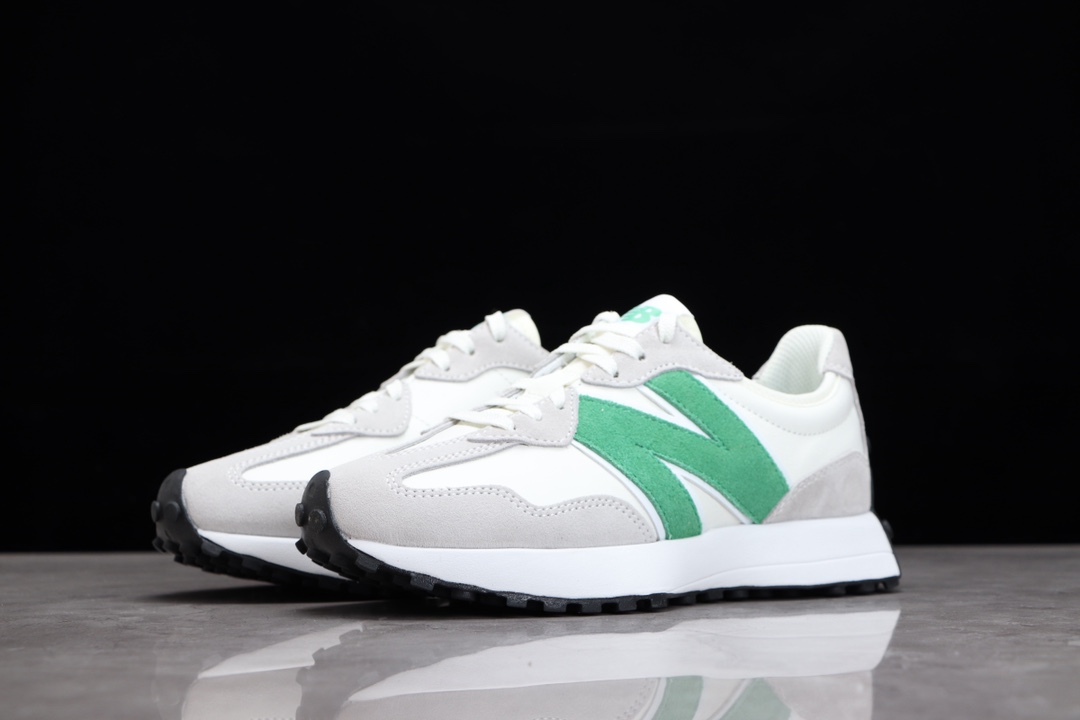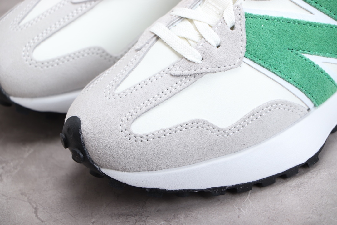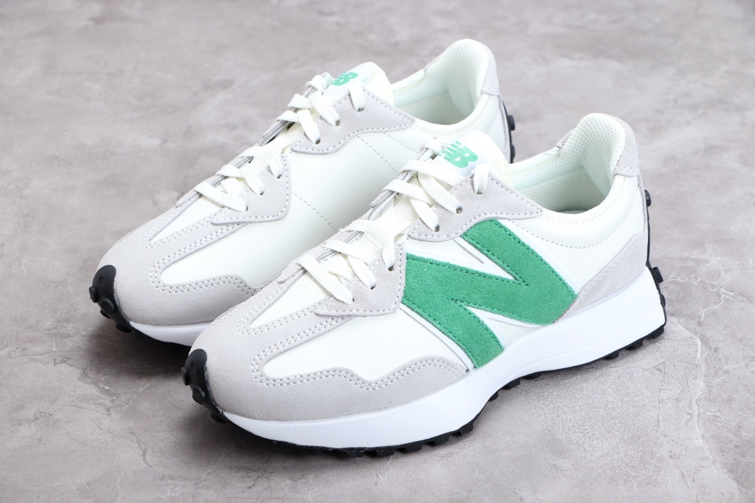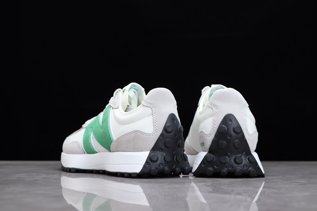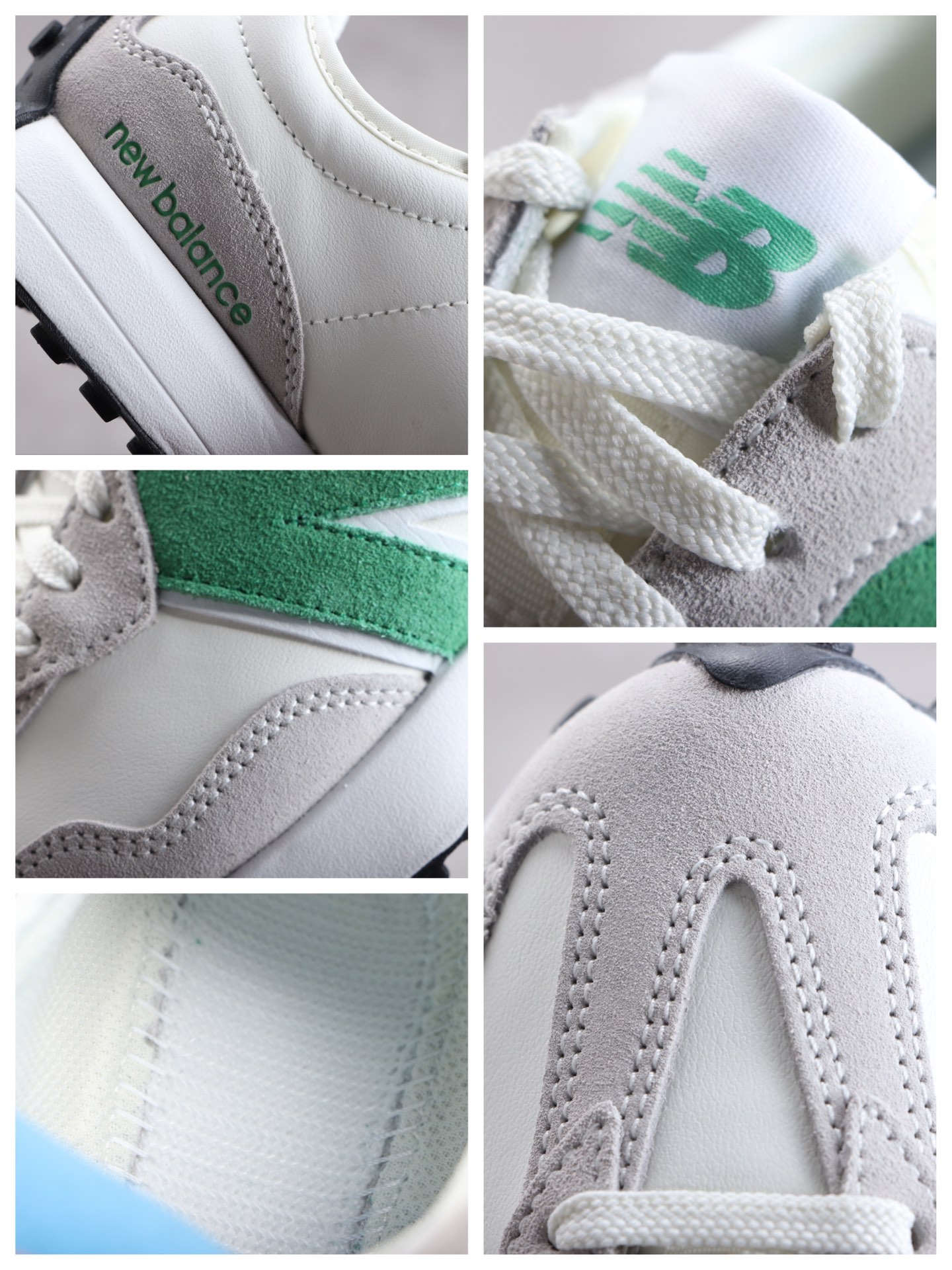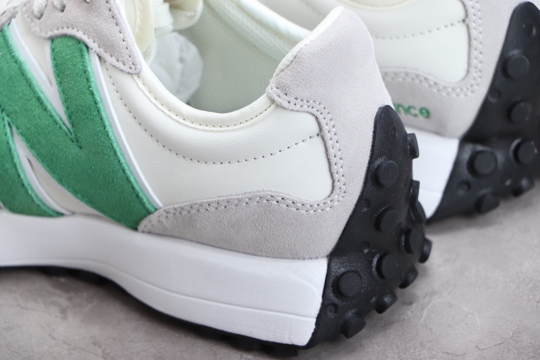 G5 全码出货NB新百伦New Balance MS327系列复古休闲运动慢跑鞋 “皮革米白浅灰草绿”WS327LG上世纪 70 年代的意大利街头风格原楦原纸版开发版型采用固色翻毛皮及牛培革料拼接构成中底高弹EVA发泡材质加持满丁防滑橡胶外底