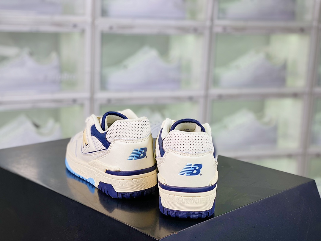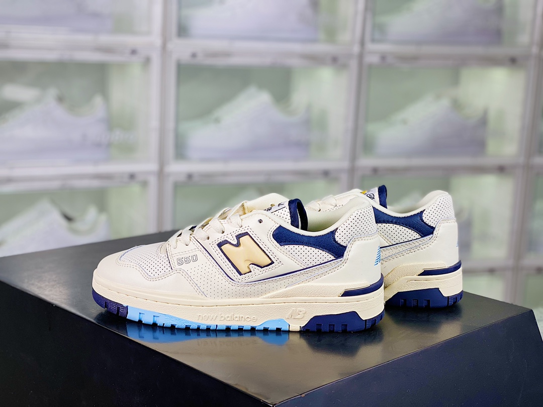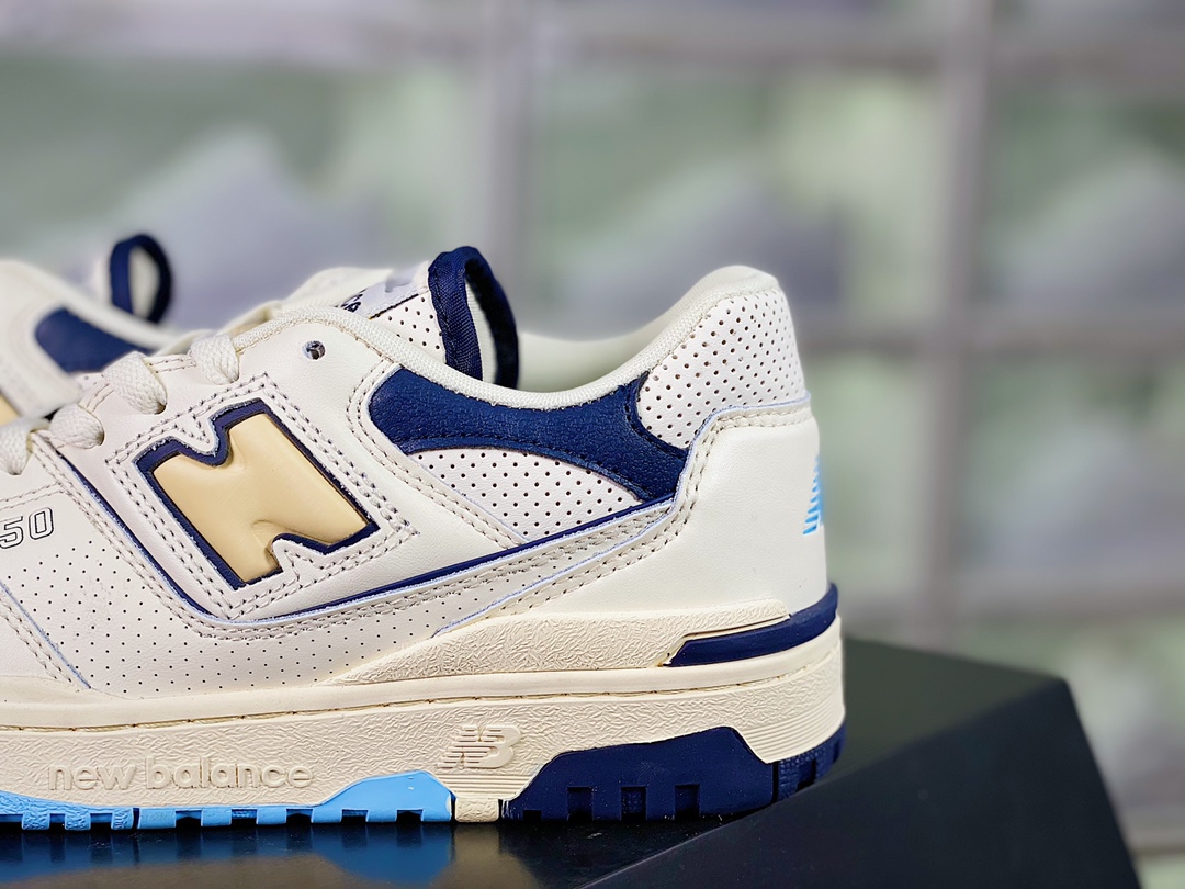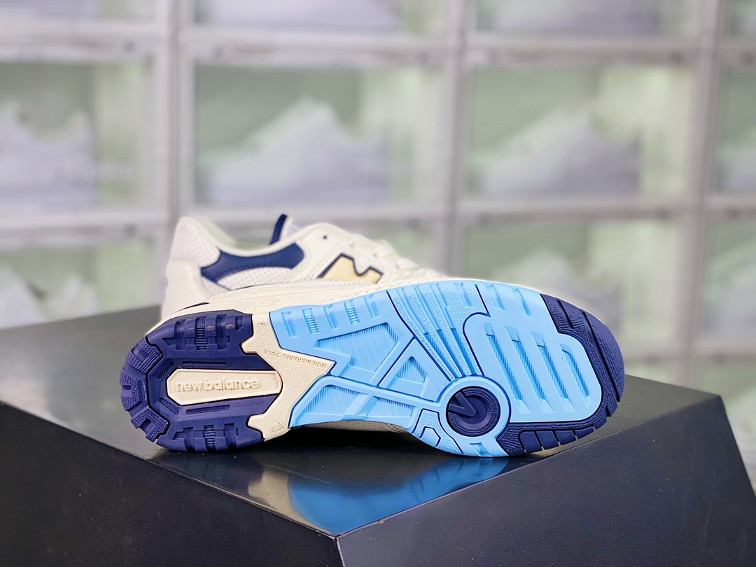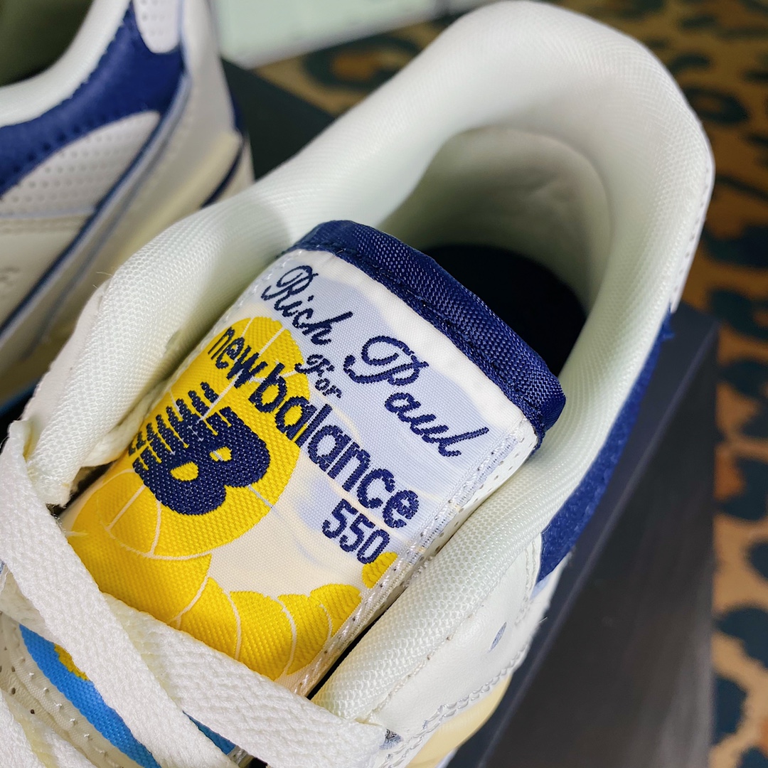 G5 升级原楦原纸版数据开发版型采用硬质牛培皮组合透气网纱鞋面材质厚实耐磨橡胶缓震大底携手NBA经纪人Rich Paul x NB新百伦New Balance BB550系列经典复古低帮休闲运动篮球板鞋“皮革米白海军蓝浅黄”BB550RP1