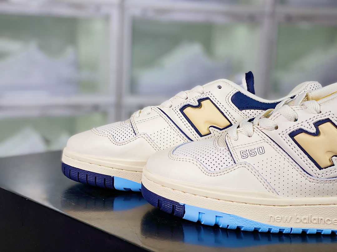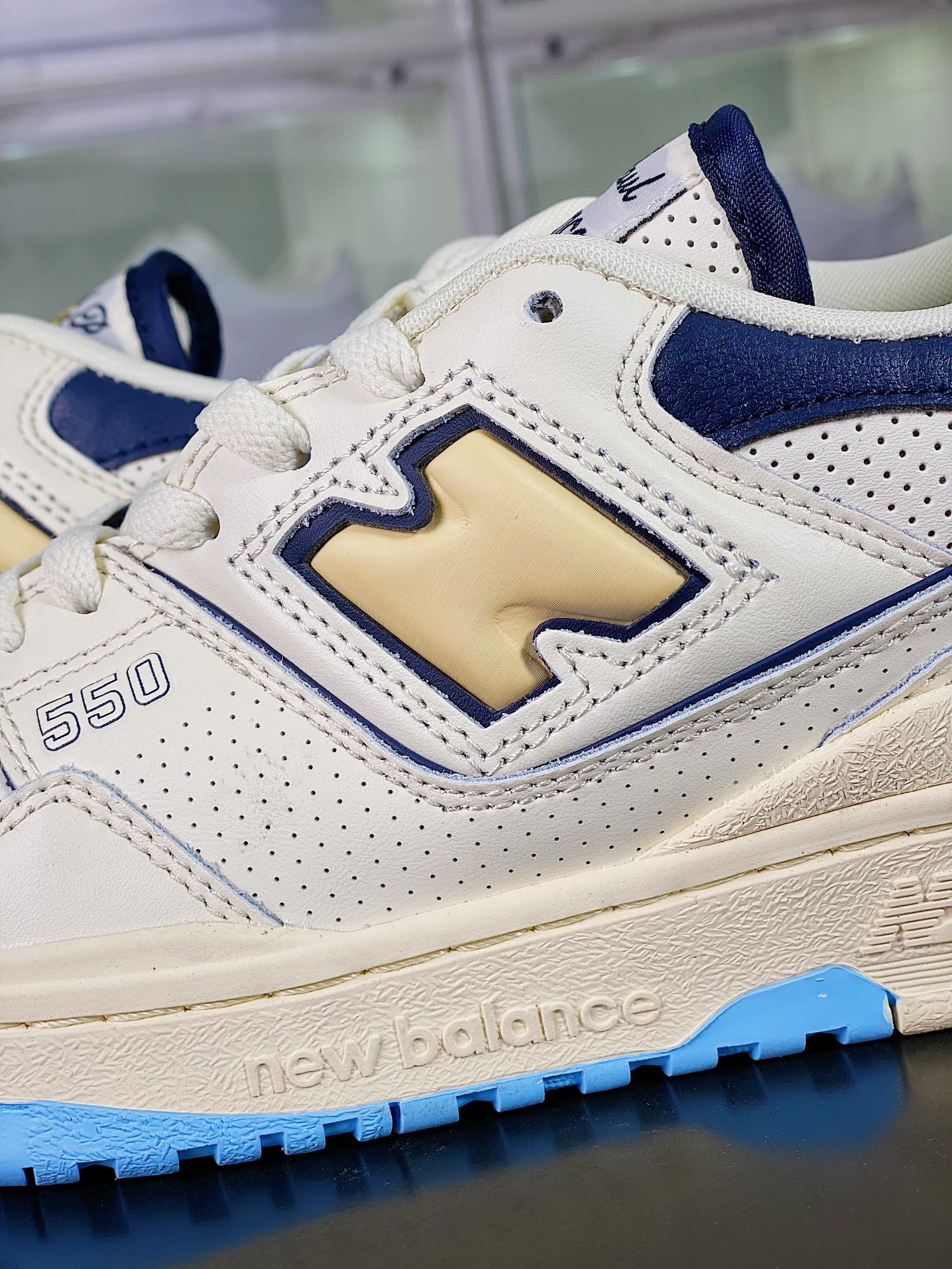 G5 升级原楦原纸版数据开发版型采用硬质牛培皮组合透气网纱鞋面材质厚实耐磨橡胶缓震大底携手NBA经纪人Rich Paul x NB新百伦New Balance BB550系列经典复古低帮休闲运动篮球板鞋“皮革米白海军蓝浅黄”BB550RP1尺码:36 36.5 37.5 38 38.5 39 40 40.5 41.5 42 42.5 43 44 45编码:dmm4454fd
