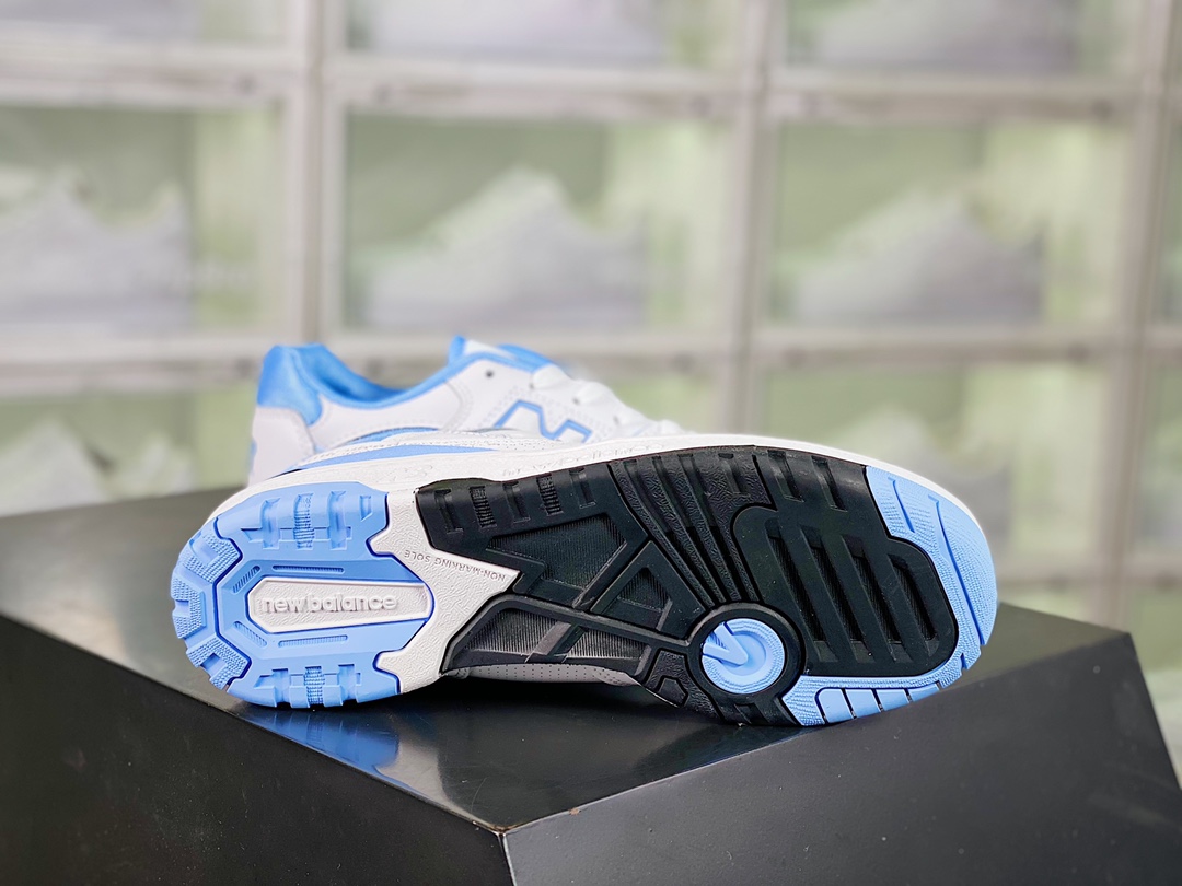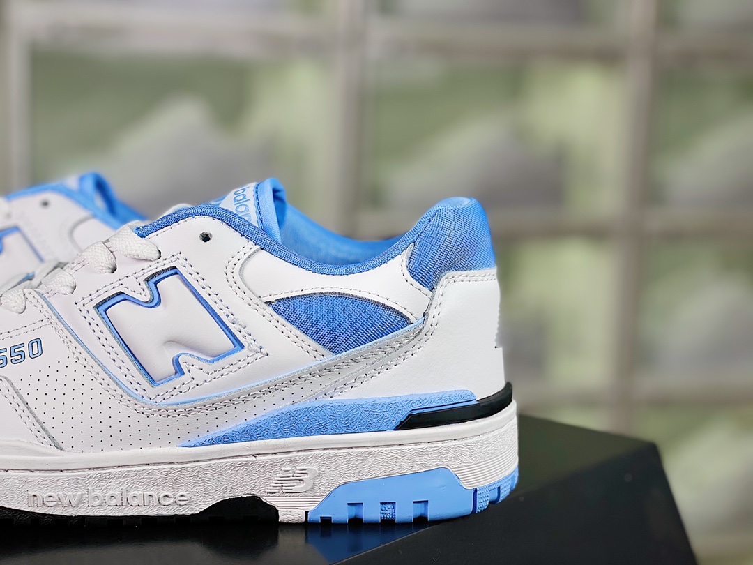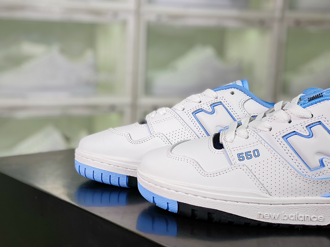 G5 升级版男女鞋真标半码制升级原楦原纸版数据开发版型采用硬质牛培皮组合透气网纱鞋面材质厚实耐磨橡胶缓震大底复古新选择,NB新百伦New Balance BB550系列经典复古低帮休闲运动篮球板鞋“皮革白蓝 BB550SN1