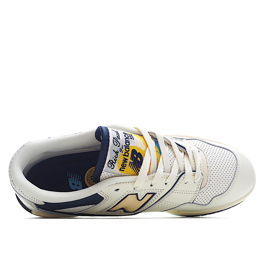 G5 此配色贵10 玫瑰金扣版本年度最强爆款复古新选择,New Balance 550系列 经典复古低帮休闲运动篮球板鞋 奶白黄蓝货号:BB550RP1完全按照原鞋开发 区别市面先行版本可接受全方位无死角对比采用丝光猪巴革拼接牛培皮鞋面材质厚实耐磨橡胶缓震大底尺码:36 37 37.5 38 38.5 39 40 40.5 41.5 42 42.5 43 44 45