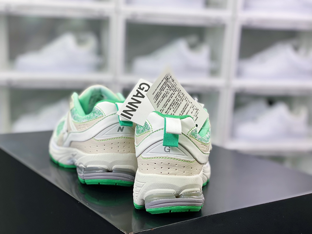G5 男女鞋半码制耗时3个月开发原装档案原数据纸版楦型采用同源轻质纤维革拼接3D印花透气网眼织物鞋面T-Beam大底提供足步弓支撑,保持步态稳定后跟搭载外露缓震胶来点北欧时尚色彩,丹麦轻奢时尚品牌 GANNI x NB新百伦New Balance ML 2002系列复古老爹风休闲运动慢跑鞋“米白绿”M 2002RGC