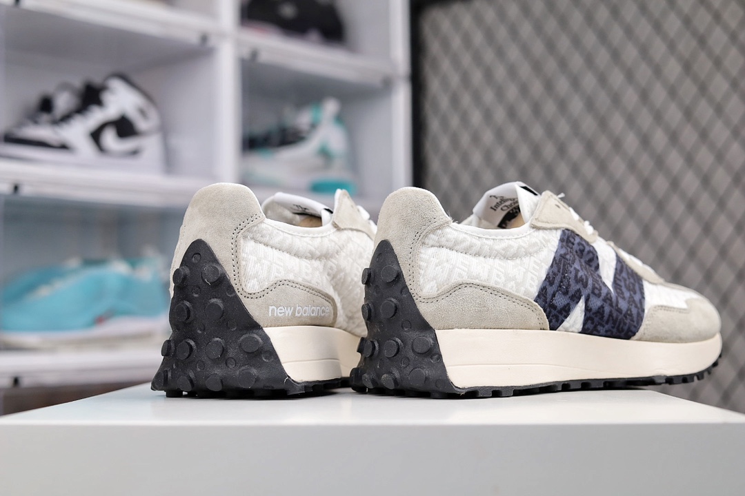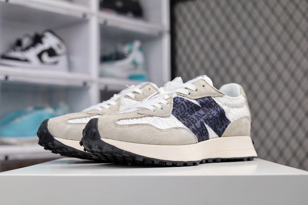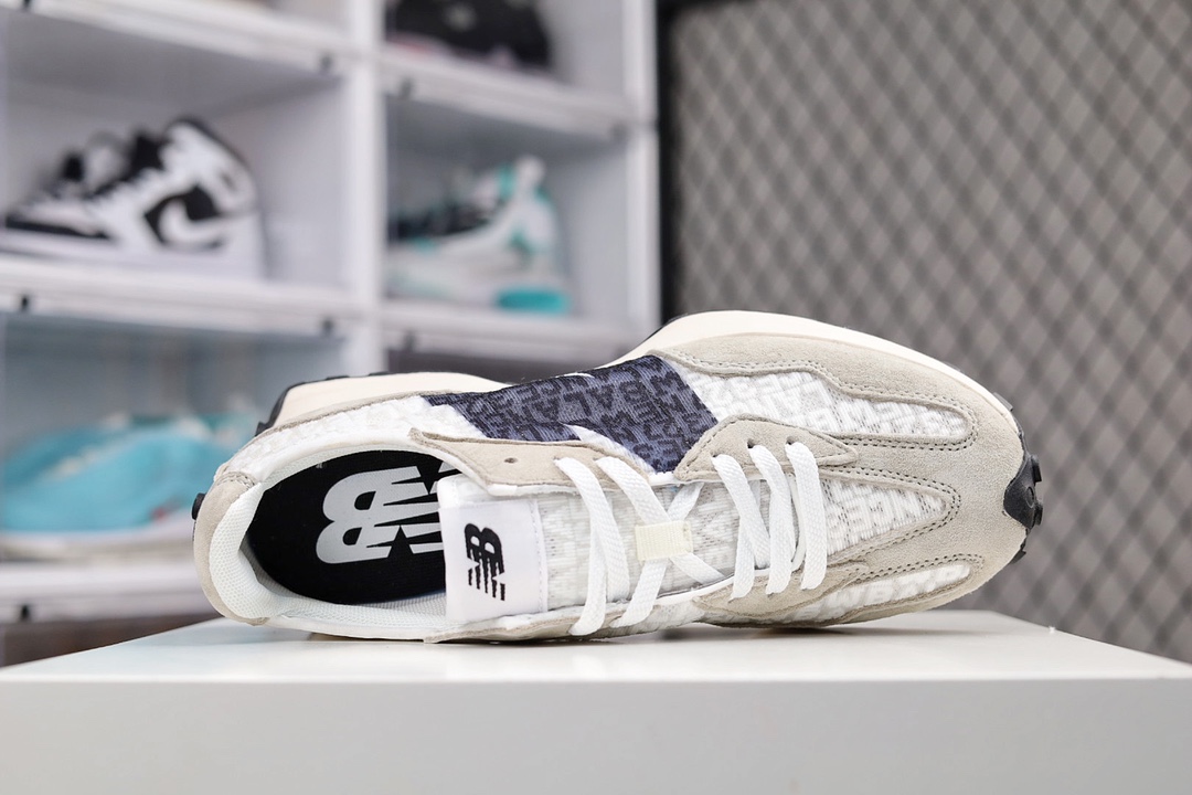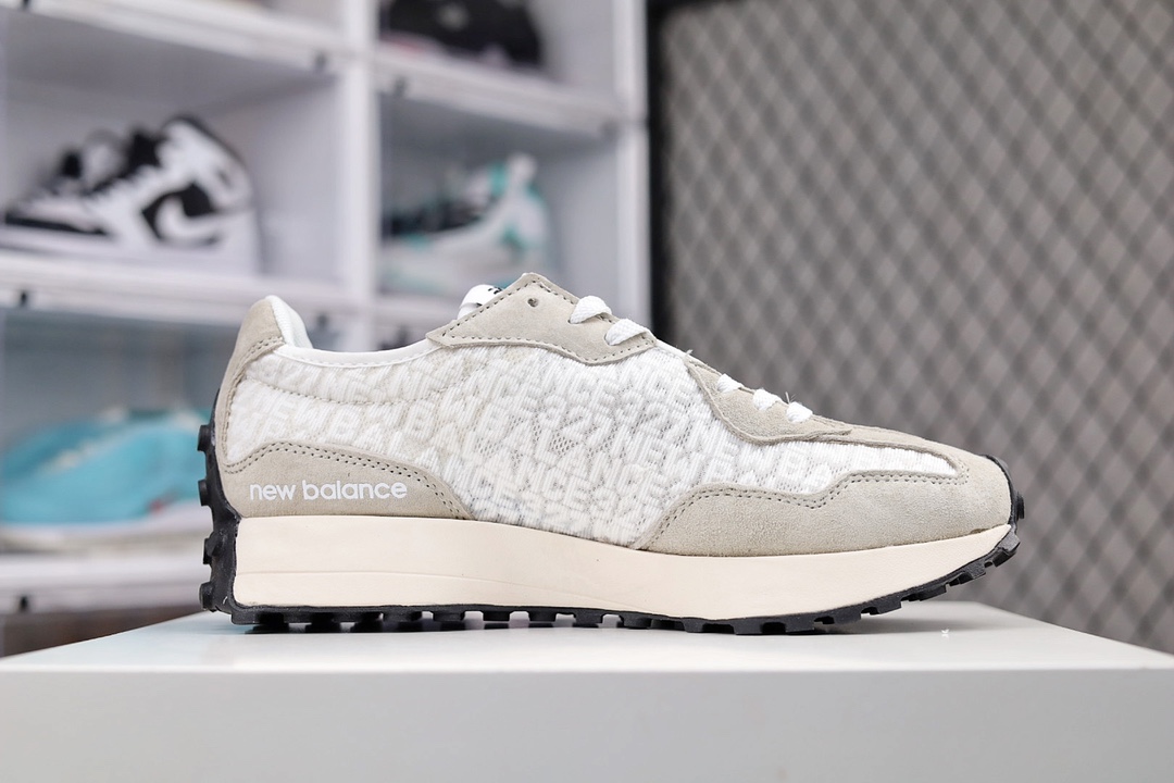 G5 男女鞋真标半码制原楦原纸版开发版型采用丝光猪巴革麂皮及透气网纱料拼接构成中底高弹EVA发泡材质加持满丁防滑橡胶外底上世纪 70 年代的意大利街头风格NB新百伦New Balance MS327系列复古休闲运动慢跑鞋“网纱提花海盐灰白黑”996YF
