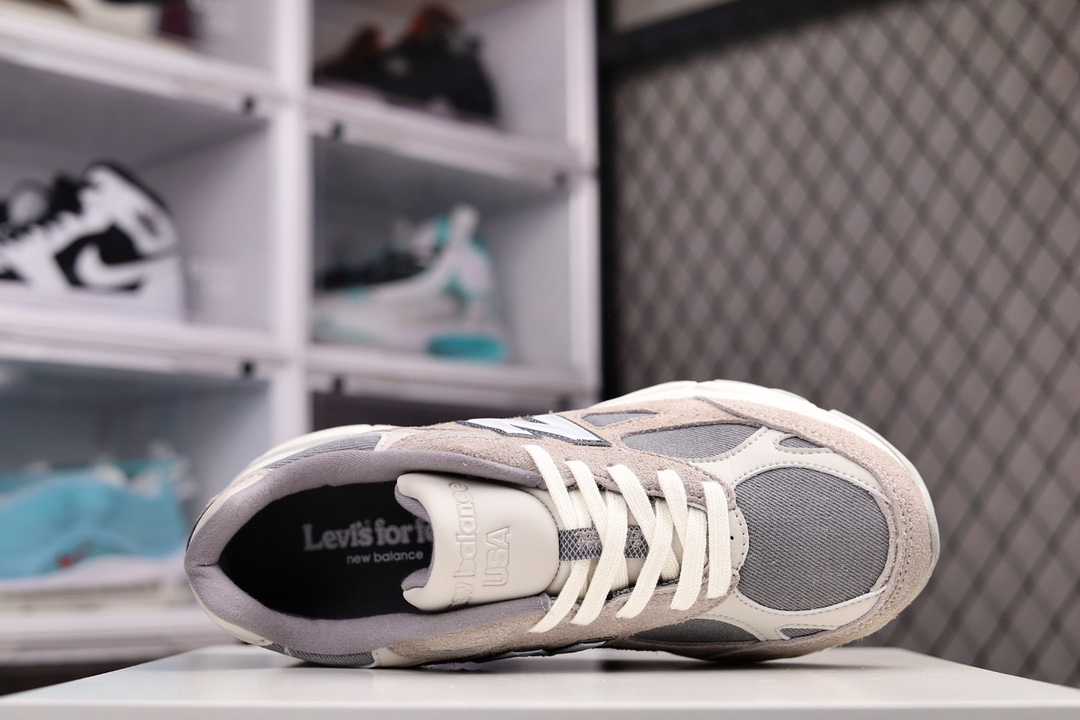 G5 综合版男女鞋真标半码制原楦原纸版数据开发采用猪巴革组合网织鞋面材质全新开发6层组合底模精密开发中底嵌入碳板缓震及后跟嵌入TPU装饰条稳固联乘全球著名牛仔品牌-李维斯Levi’s x NB新百伦New Balance Made in USA M990V3 三代系列低帮美产血统经典复古休闲运动百搭老爹跑步鞋“李维斯灰牛仔”BD
