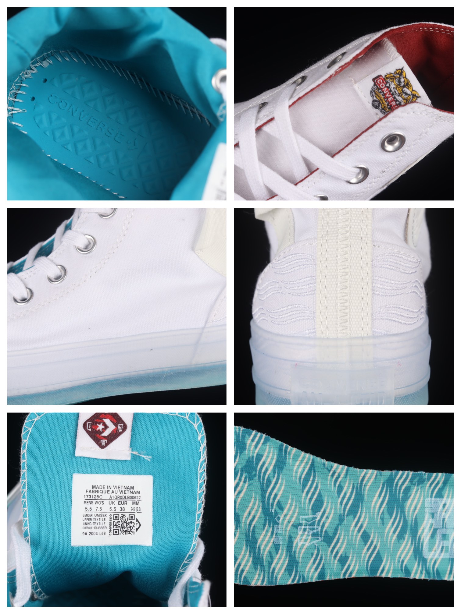 G5 Converse Chuck Tavlor All Star CX 虎年限定系列高帮休闲板鞋 173128C经典白色帆布鞋身,CX发泡鞋垫为舒适需求而设计,适合全天穿着,以水为灵感的图案寓意迎接新年的到来。虎头图案鞋舌点睛之笔,半透明大底围条、以徒步旅行为灵感的拉环以及中国新年细节,让你随处都能大放异彩。