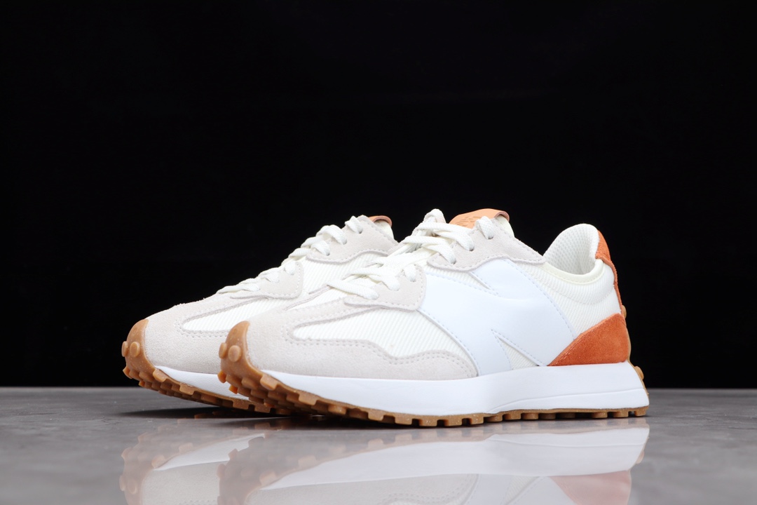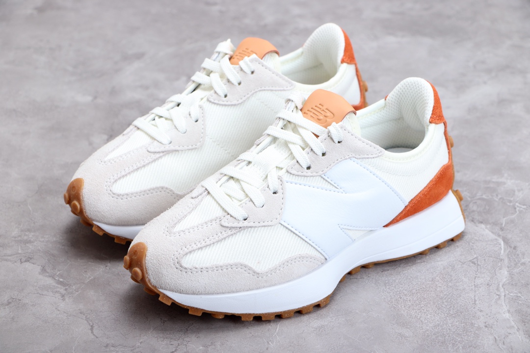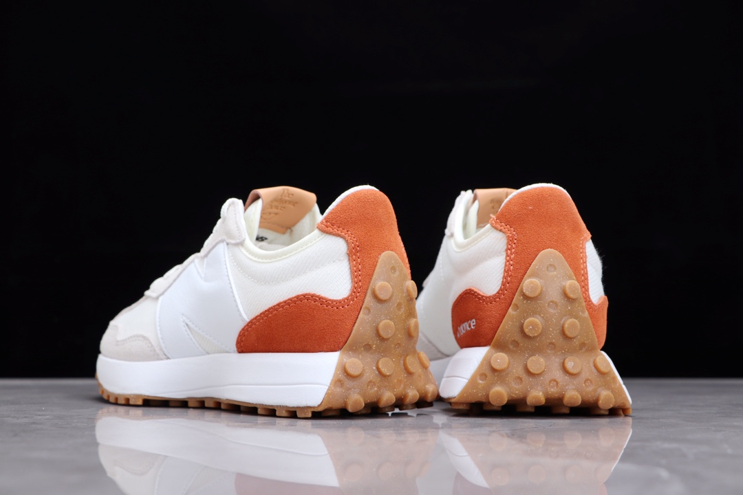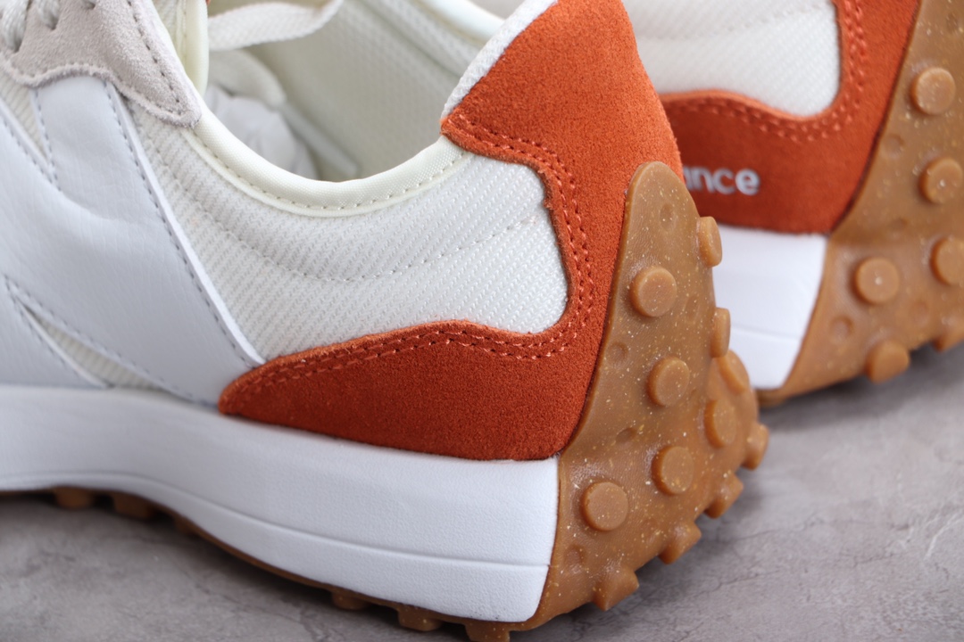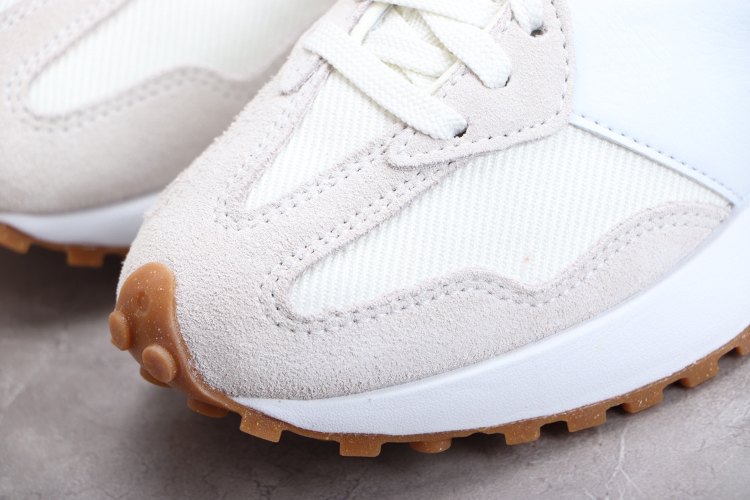 G5 NB新百伦New Balance MS327系列复古休闲运动慢跑鞋 “翻毛浅卡其白棕红”WS327RA上世纪 70 年代的意大利街头风格采用猪巴革麂皮及透气牛津布料拼接构成 区别市面翻毛皮错误版本中底高弹EVA发泡材质加持满丁防滑橡胶外底