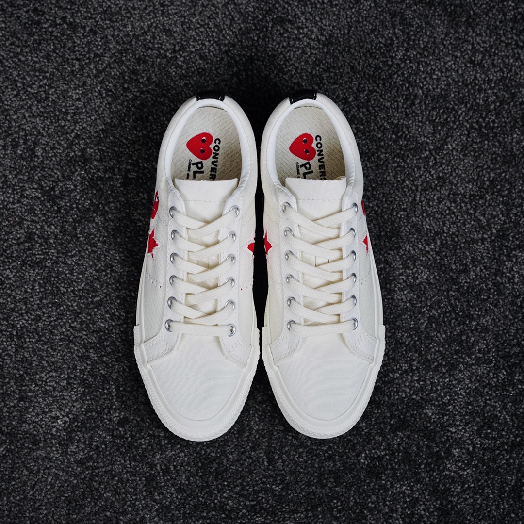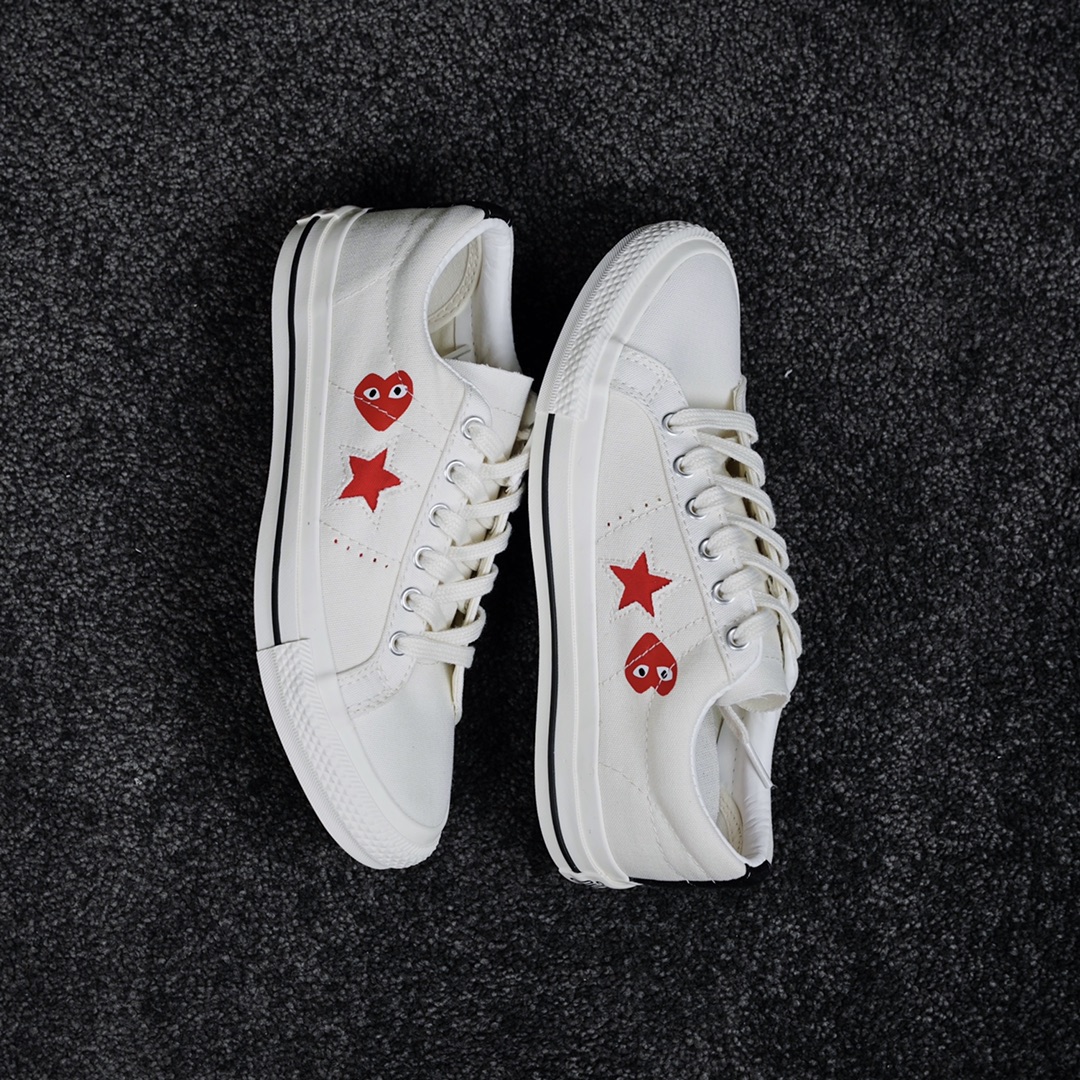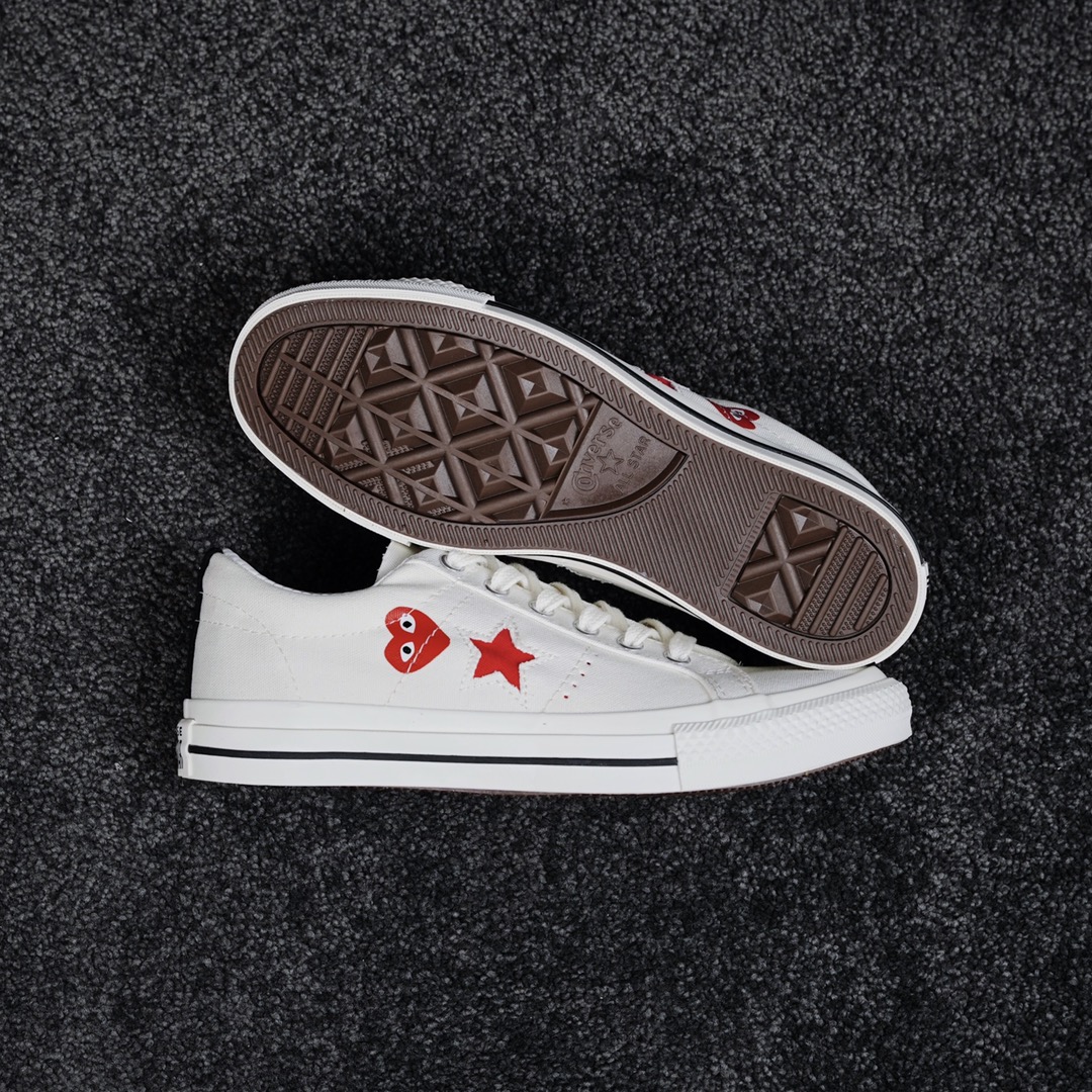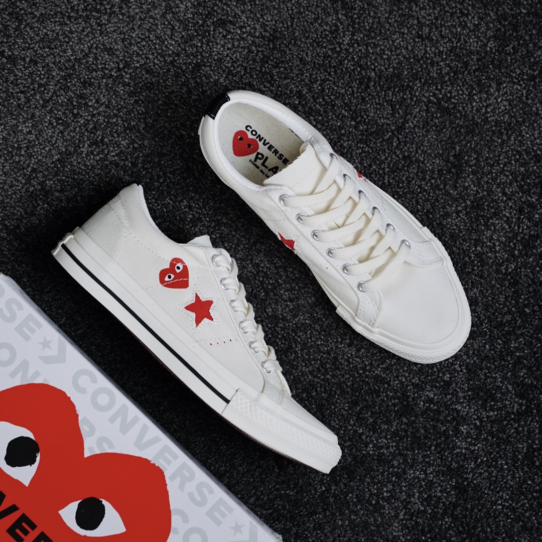 H0 “心”动预警! CDGPLAY全“星”出场匡威CDGPLAY联名12周年之际\t首次合作呈现滑板传奇鞋型ONESTAR依然是你喜欢的标志性“爱心眼”串联红色的心“星”相印CONVERSE X Comme desGarcons PLAY ONE STAR心”动PLAY以代表着创作热血的红色点缀滑板运动上脚让属于街头的回到街头本次联名系列新品含黑、白双色可选Size:35-44 (36.5 37.5 39.5 41.5 42.5)