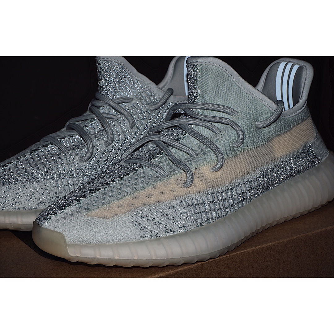 H0 真爆版本Adidas 阿迪达斯 Yeezy Boost 350V2 椰子 3M反光 冰蓝拼接满天星 超弹力BOOST爆米花中底 脚感无可挑剔