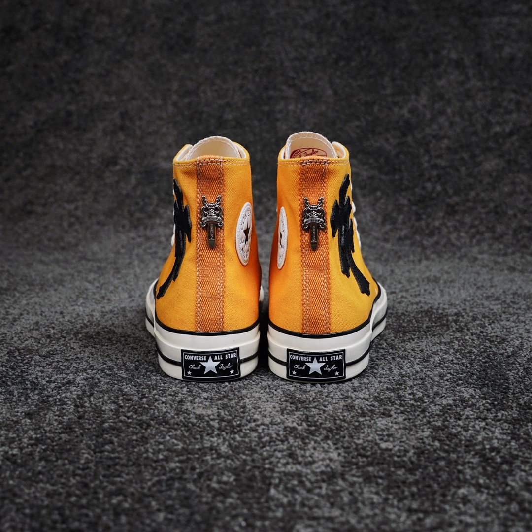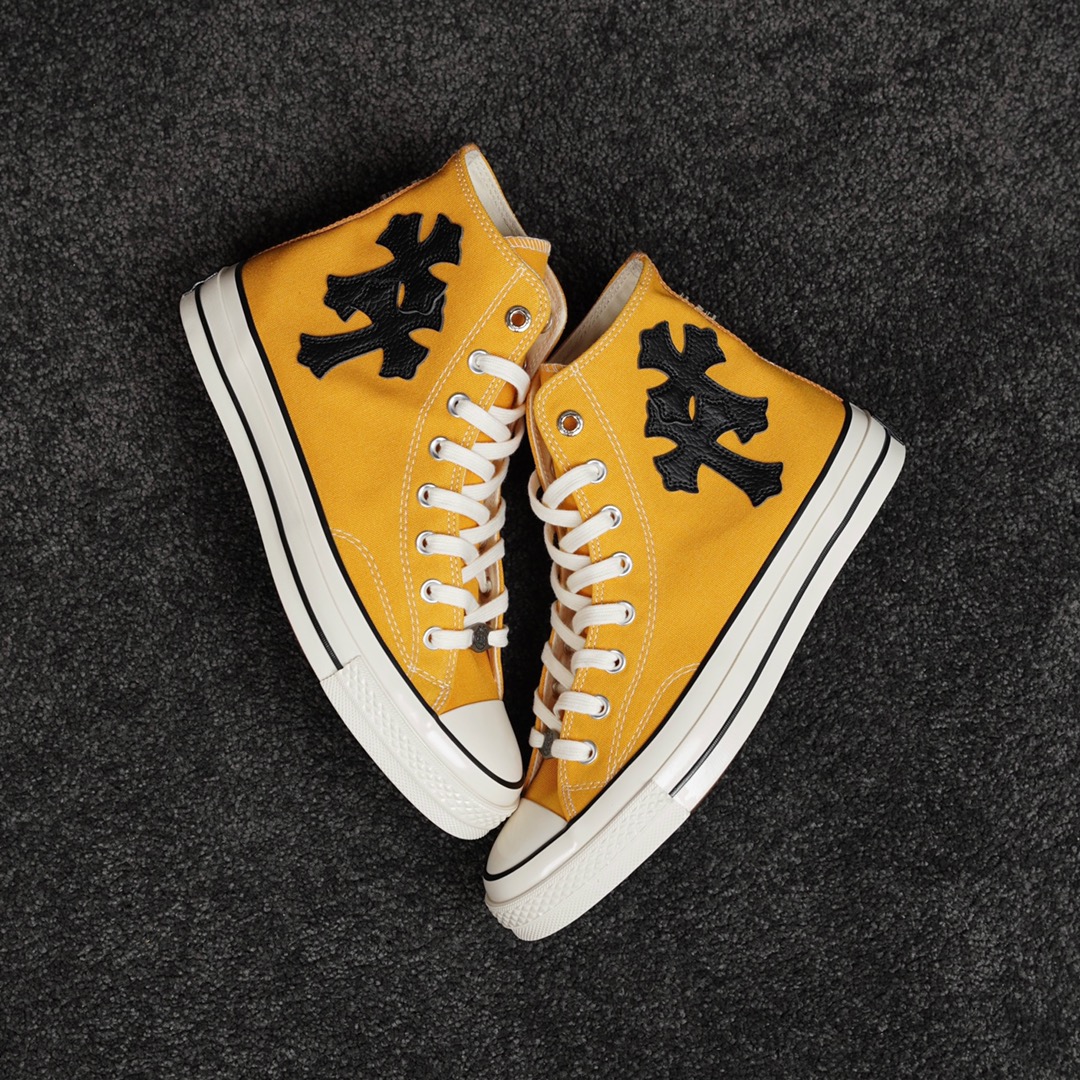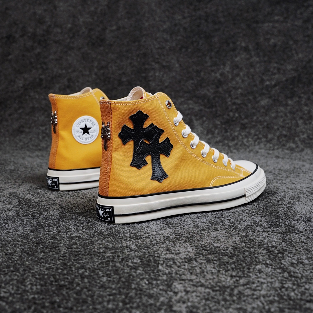 H0 Chrome Hearts x Converse Chuck Taylor 1970s克罗心联名贴皮十字大匡威 首发实拍鞋身后侧克罗心标志十字架贴皮 后跟宝剑银饰点缀 侧标完美 细节到位 全新工艺升级 完美组成一双全新的70s,整体看起来非常柔和舒适,鞋身给整体带来高级的感觉