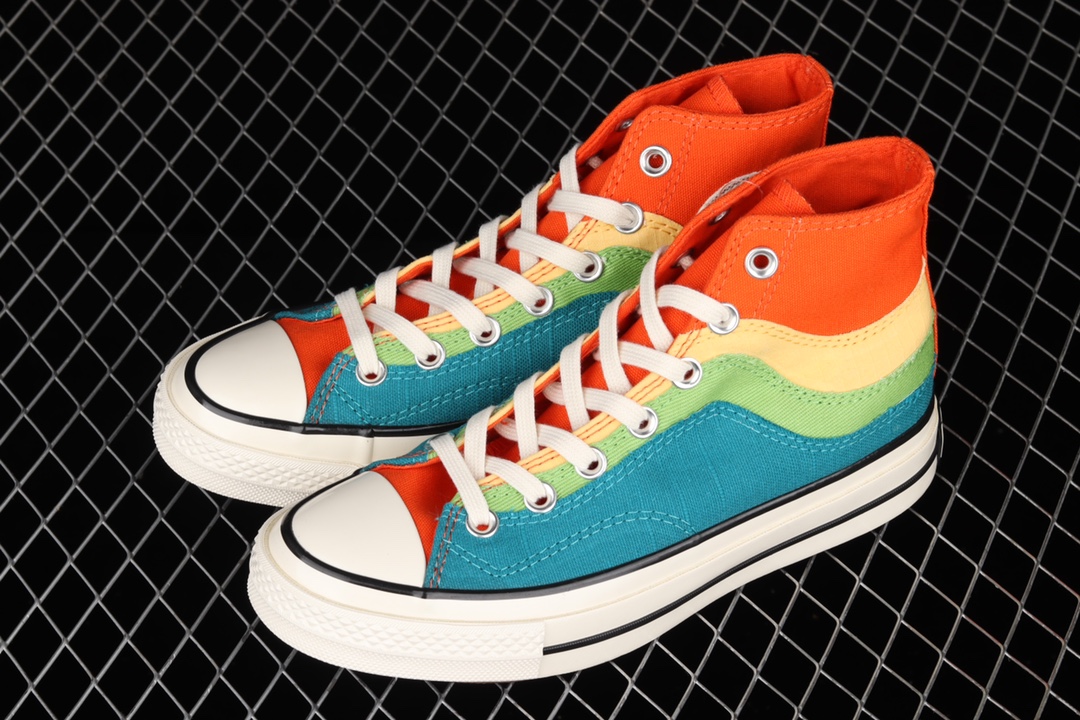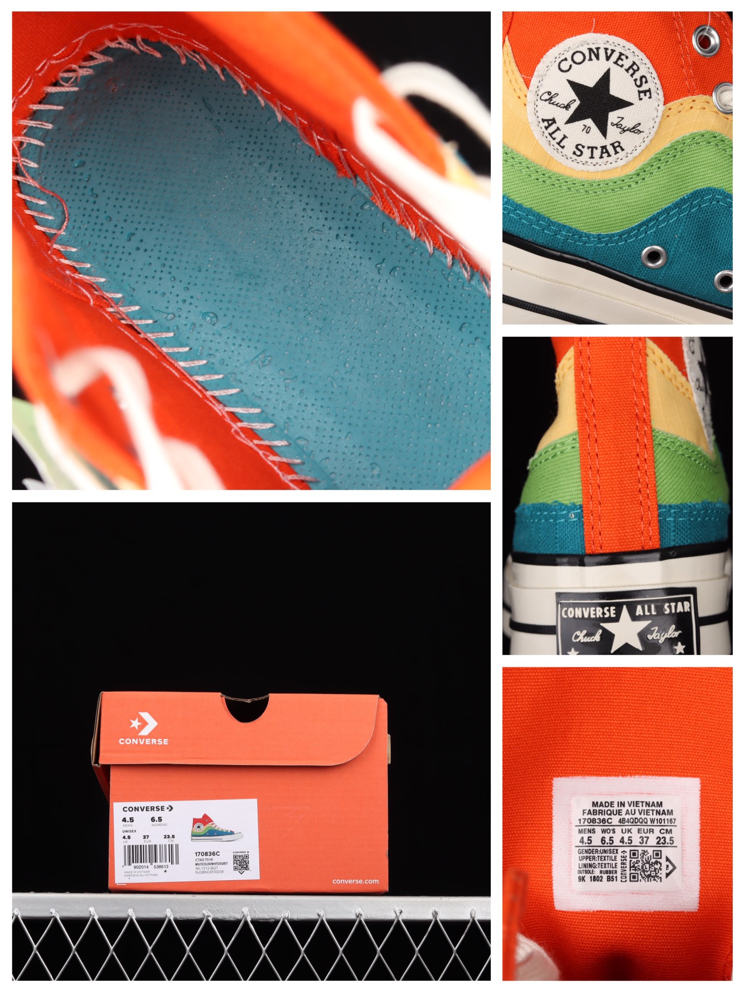 H0 Converse Chuck 70 2021新款三星标拼接撞色彩虹高帮帆布鞋 H0 836C
