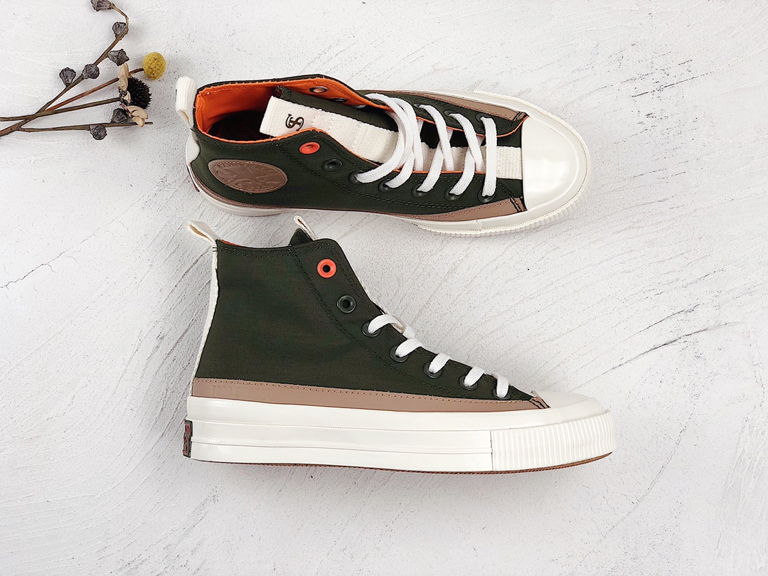H0 Converse x Todd SnyderConverse再度携手美国著名男装设计师ToddSnyder推出全新RebelPrep联名系列。此次双方采用经典Chuck70和JackPurcell为设计蓝本,呈现出硬朗军事风的同时,也在功能上表现的十分强悍!Chuck70采用蜡感棉帆布材质打造鞋面,鞋身以棕色呈现,内衬则是亮眼的橘色,为简约的鞋身增添一抹亮眼细节。同时由于蜡感棉帆布材质的缘故,还能带来不错的的户外防水效果。侧身处搭配皮革制ChuckTaylor鞋侧徽标,鞋跟和鞋舌印有ToddSnyder字样,彰显联名。