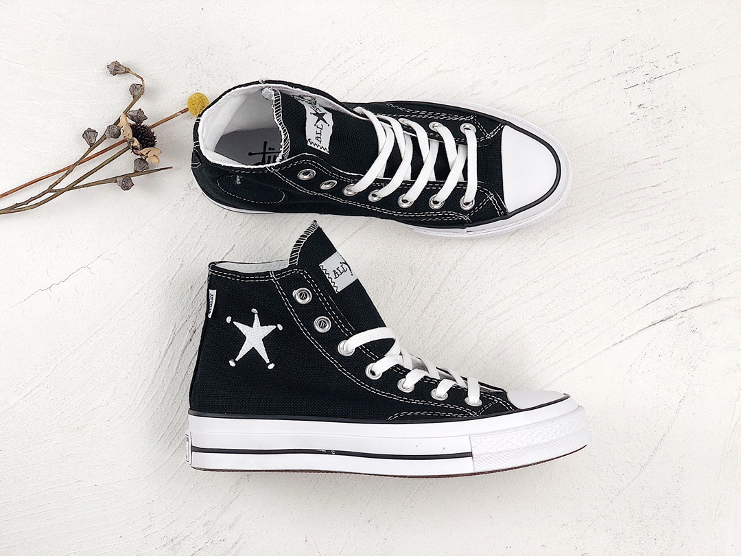 H0 Stussy x Converse Chuck 70 Hi 2022全新联名鞋款 海外地区同步发售 美国潮牌 斯图西Stussy与匡威CONVERSE联手打造的全新1970s联名帆布鞋 鞋面采用亚麻结构制成 为春夏季节提供通风 该鞋最大亮点应该就是星星刺绣标志,你心动了吗?货号:A01765CSize:35-44(36.5 37.5 39.5 41.5 42.5)