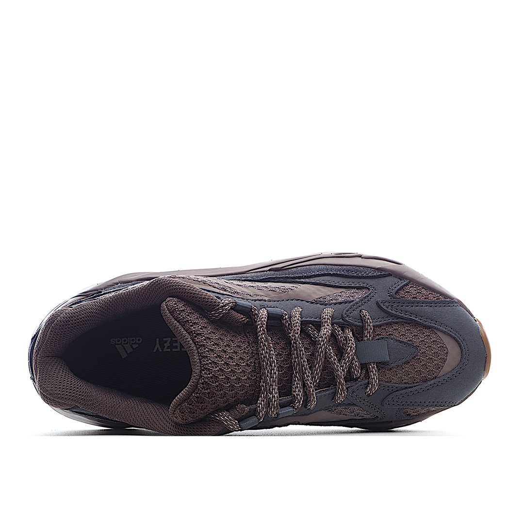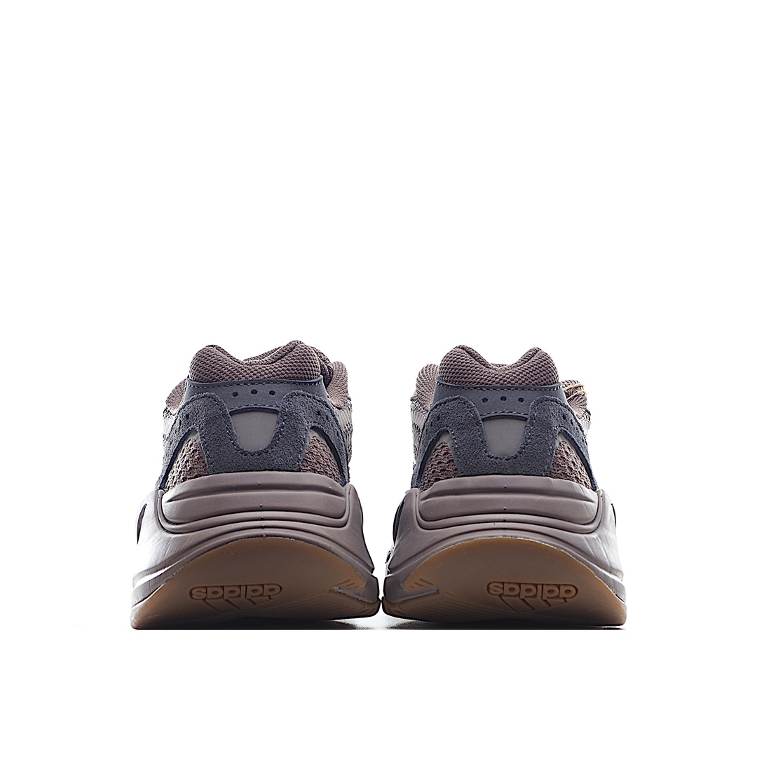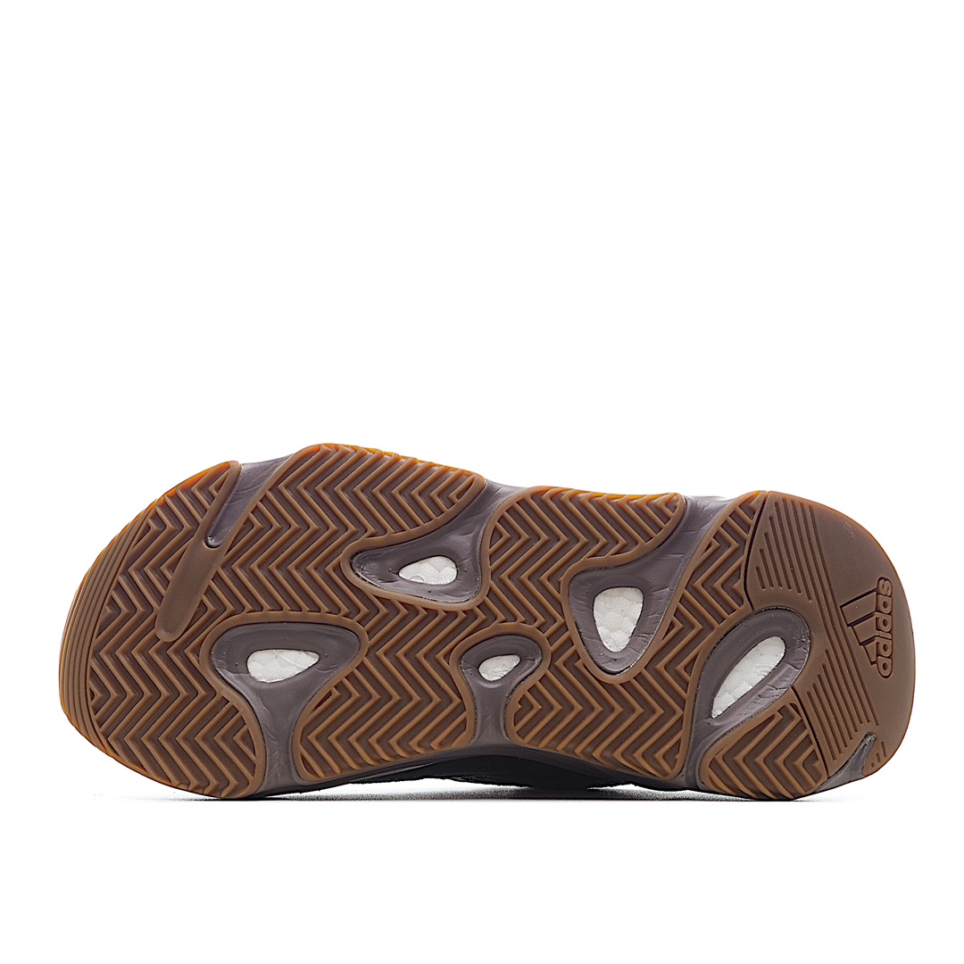 I0 Ad Yeezy Boost 700 “Enflame Amber” GZ0724 侃爷椰子700 黑灰椰子3M反光跑鞋 巴斯夫爆米花大底鞋面是以一个灰色进行展开,同时搭配黑色和墨紫色,中底用上了厚厚的橙黄色,也就是琥珀色,让整双鞋的视觉层次非常丰富;编织、皮革、麂皮在这双鞋子的应用很丰富,后帮部位左右对称的4个3M反光更显帅气