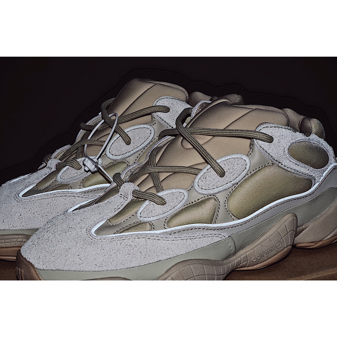 I0 Adidas 阿迪达斯 YEEZY 500椰子3M反光复古老爹跑鞋原厂3M反光条 市场独家真35码后跟V形结合人体工程学保证双脚舒适性鞋身与正品一致由合成革、麂皮和网面多种材质精心车缝拼接而成 搭载了adiprene减震科技大底,给人上脚以舒适平稳百搭而著称