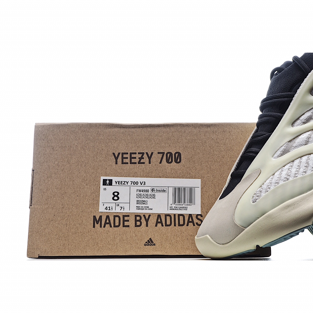 I0 Adidas 阿迪达斯 Yeezy 700V3 ” Azael” 侃爷椰子夜光鞋面异型复古老爹鞋 FW49 I0 外星人 正确鞋型”重点看后跟” 原装BOUNCE 聚氨酯包裹 EVA 发泡材质中底打造 正确甲卡织面 夜光效果