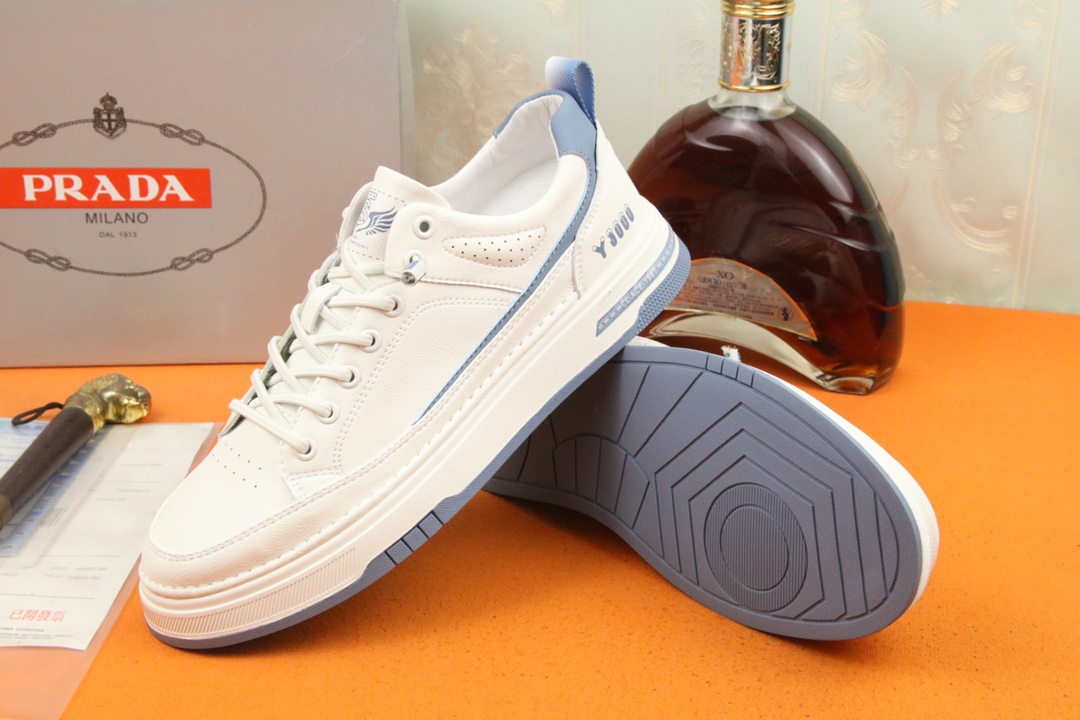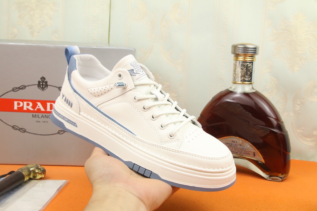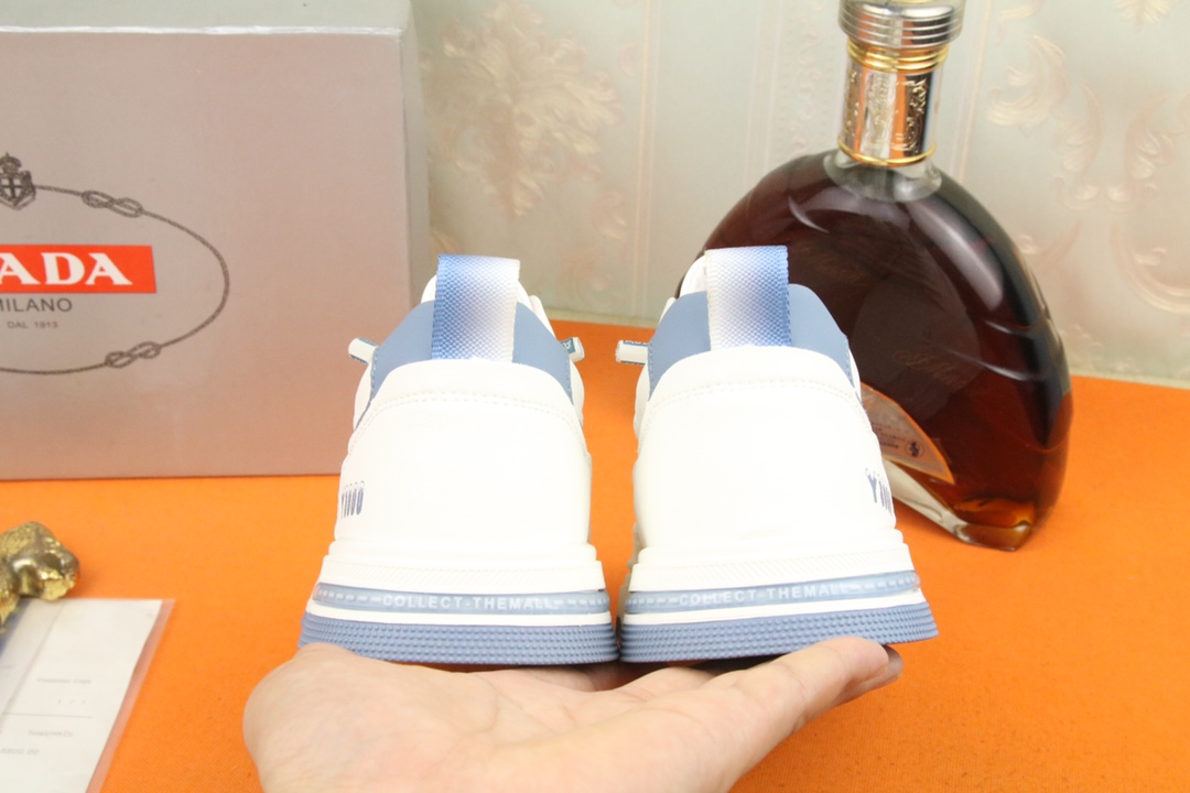 I5 高品质PRADA普拉达上市著名奢侈品牌,专柜同步更新,意大利男鞋时尚杂志季刊封面主推款鞋面采用意大利进口头层牛皮,舒适羊皮内里。原版防滑橡胶大底,上脚舒适有型。 细节无可挑剔。码数38-43