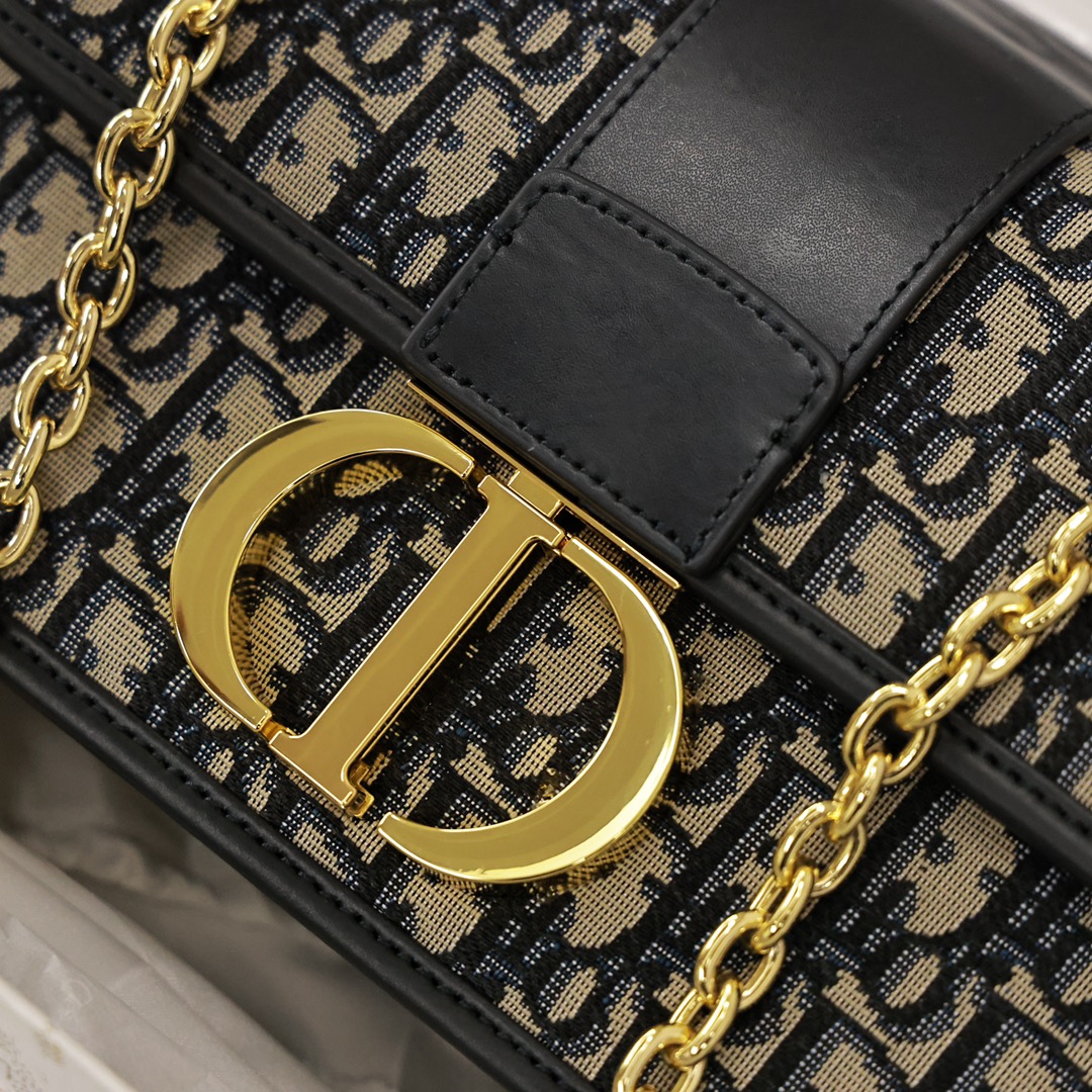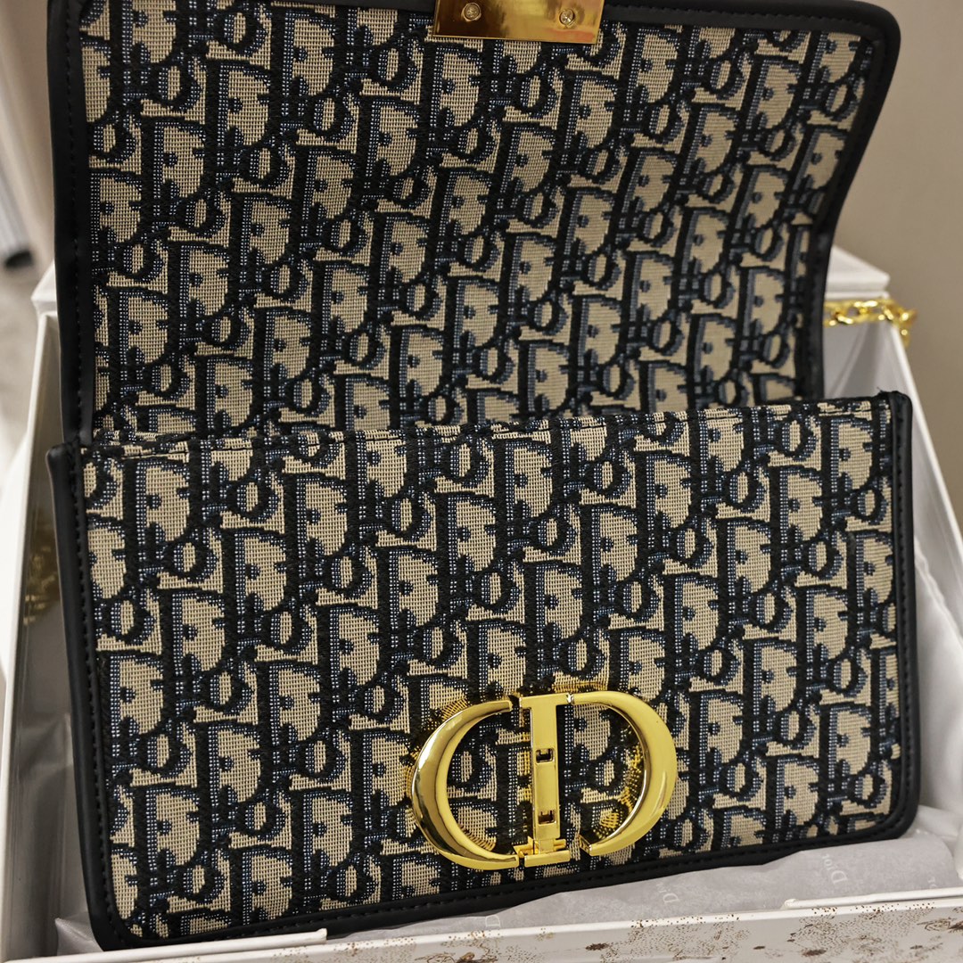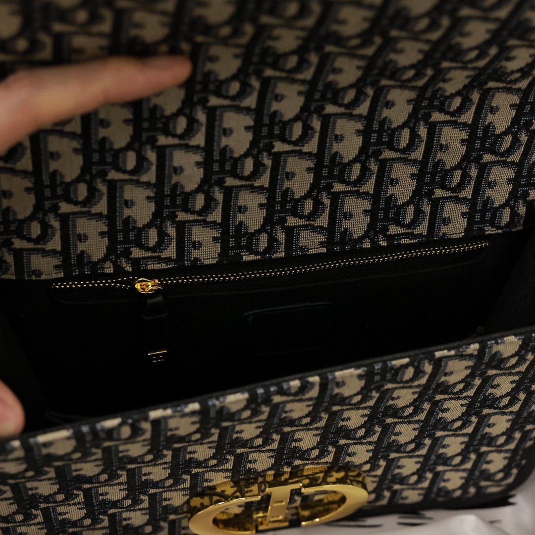 这款手袋采用 Oblique 印花精心装饰.打造优雅经典的造型.翻盖饰以复古金色饰面金属“CD”扣环.灵感源自 Christian Dior 香水瓶的封口.背面“30 Montaigne”压花标志等高雅的细节.突显时尚的设计.