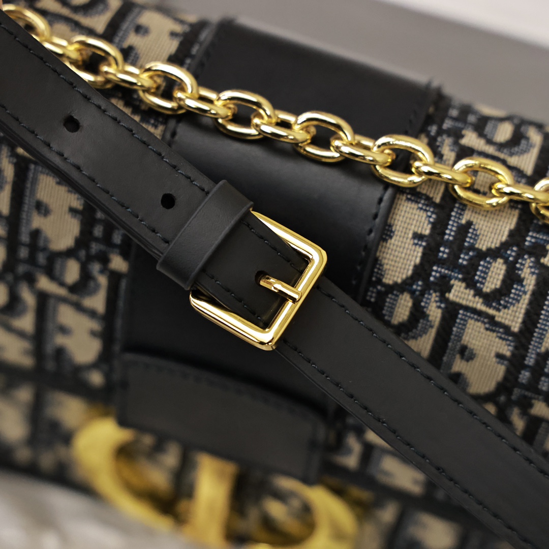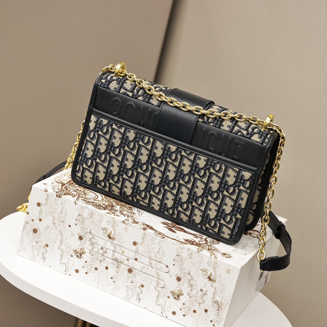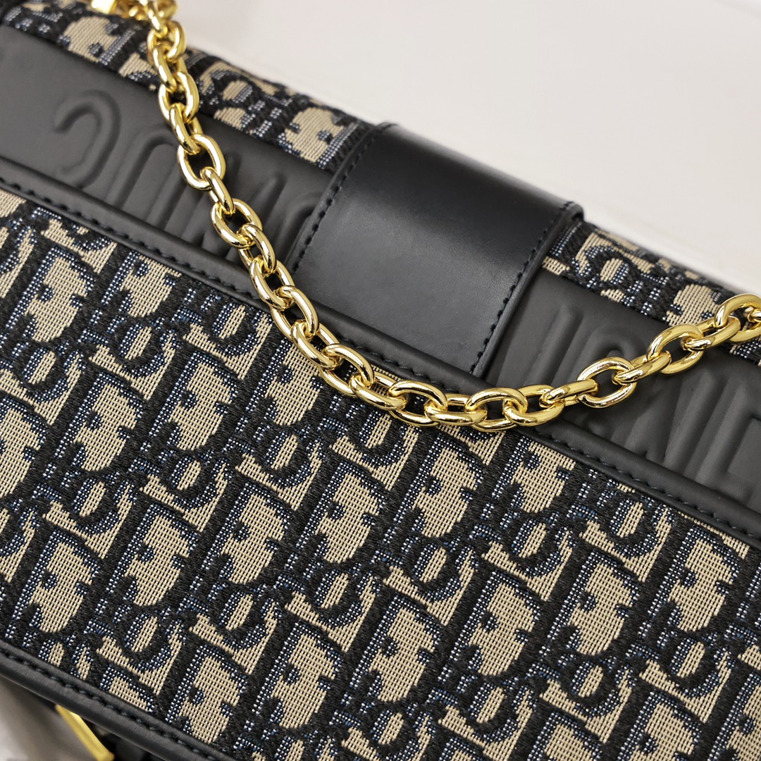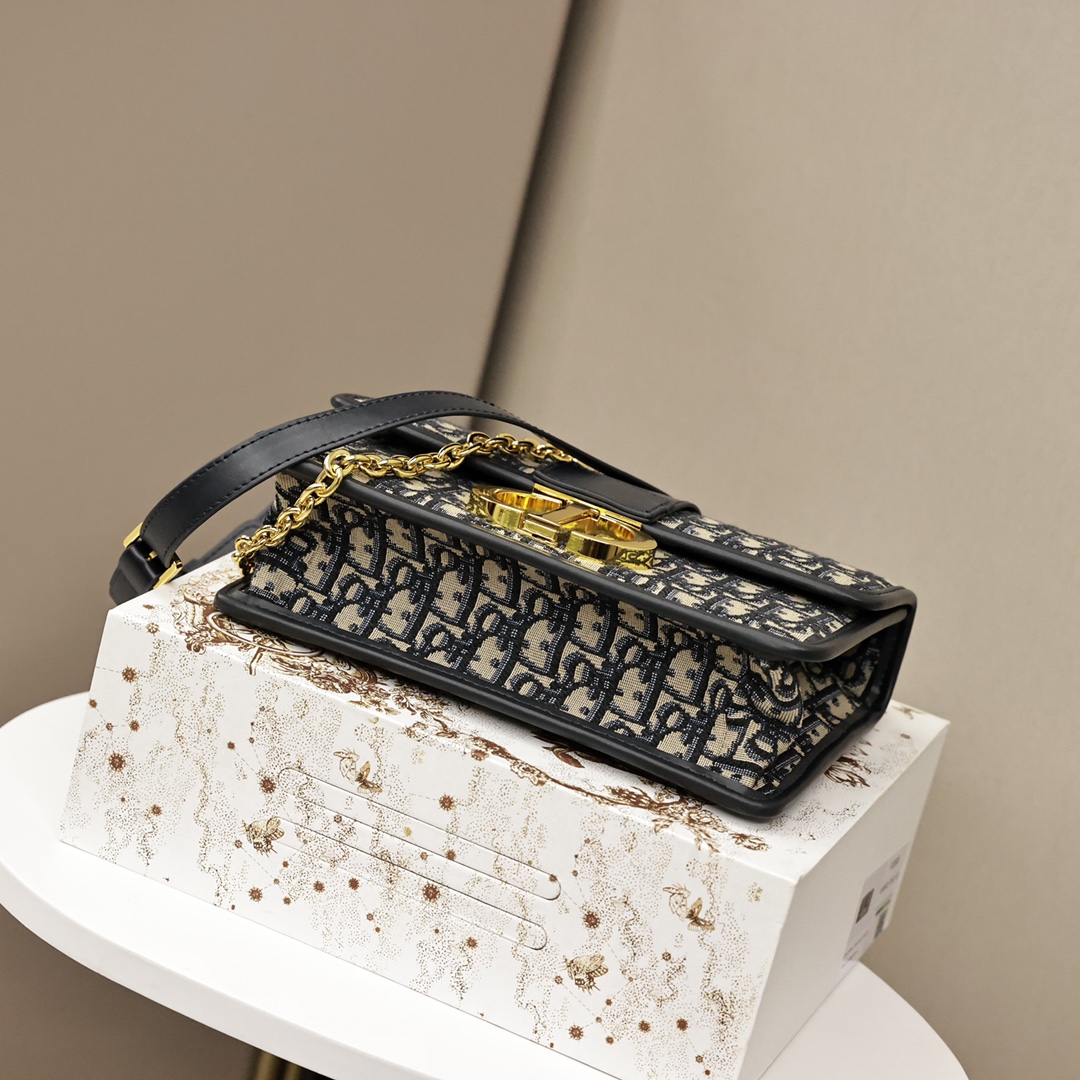 这款手袋采用 Oblique 印花精心装饰.打造优雅经典的造型.翻盖饰以复古金色饰面金属“CD”扣环.灵感源自 Christian Dior 香水瓶的封口.背面“30 Montaigne”压花标志等高雅的细节.突显时尚的设计.