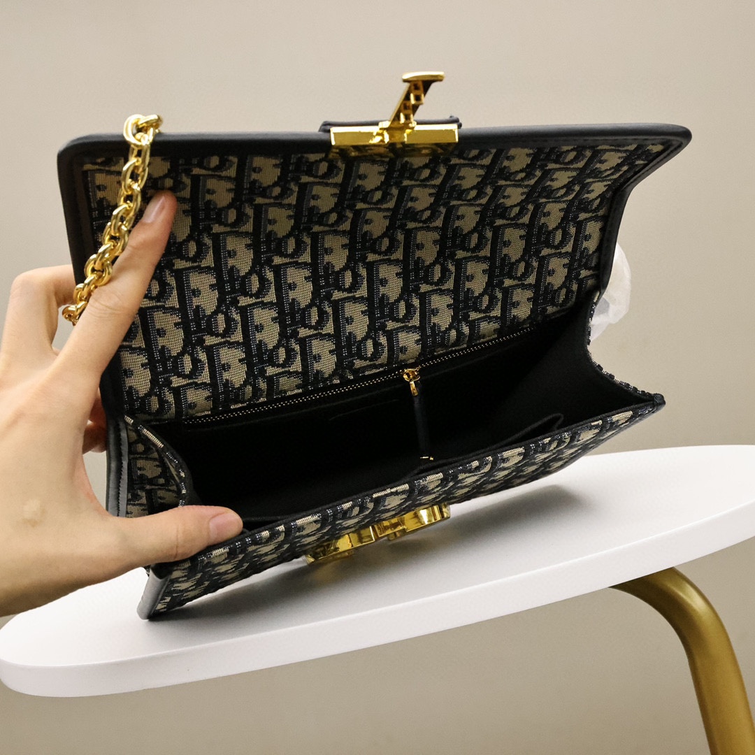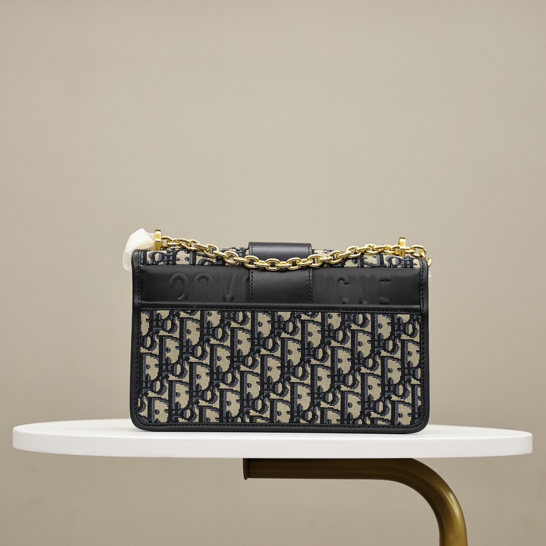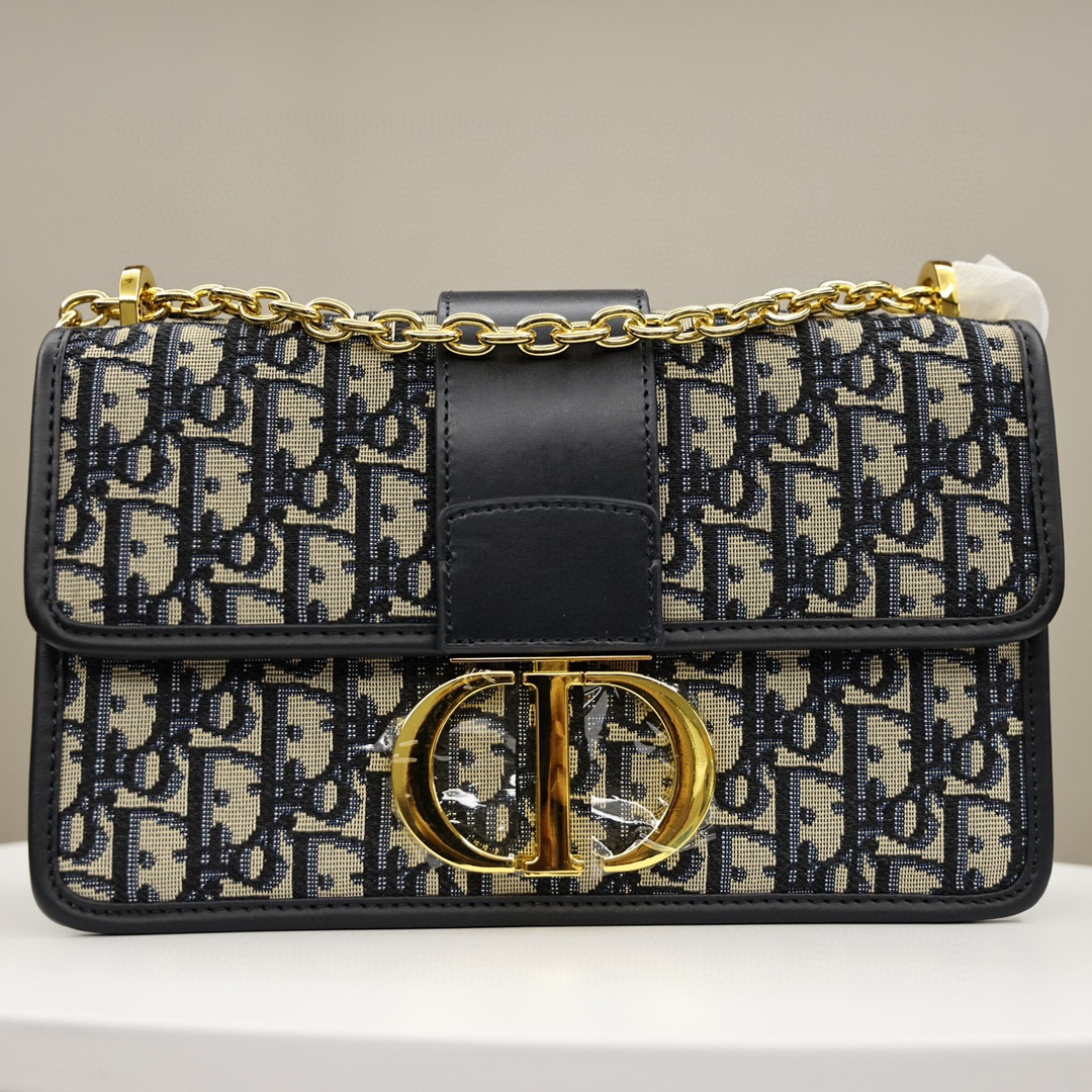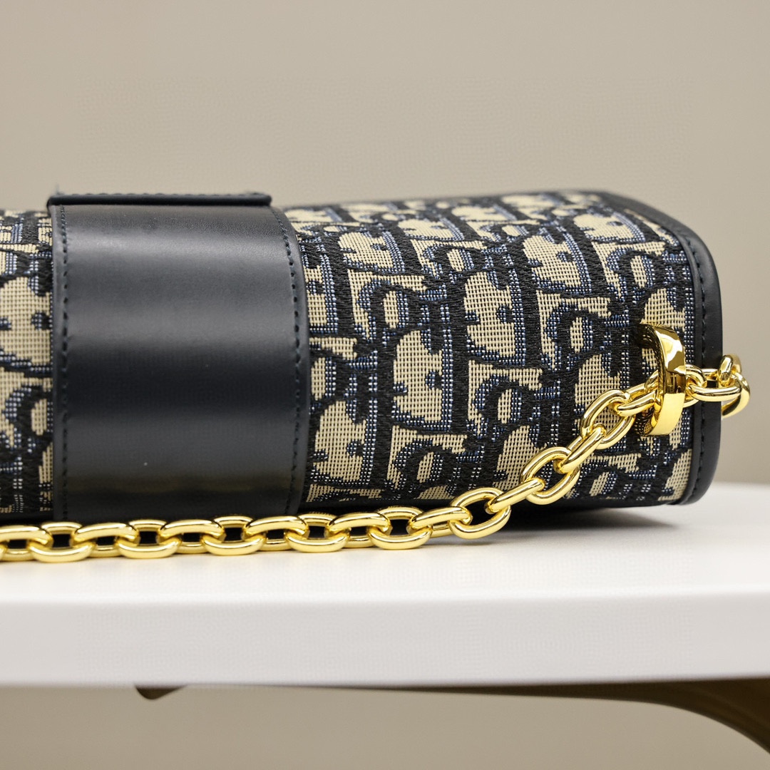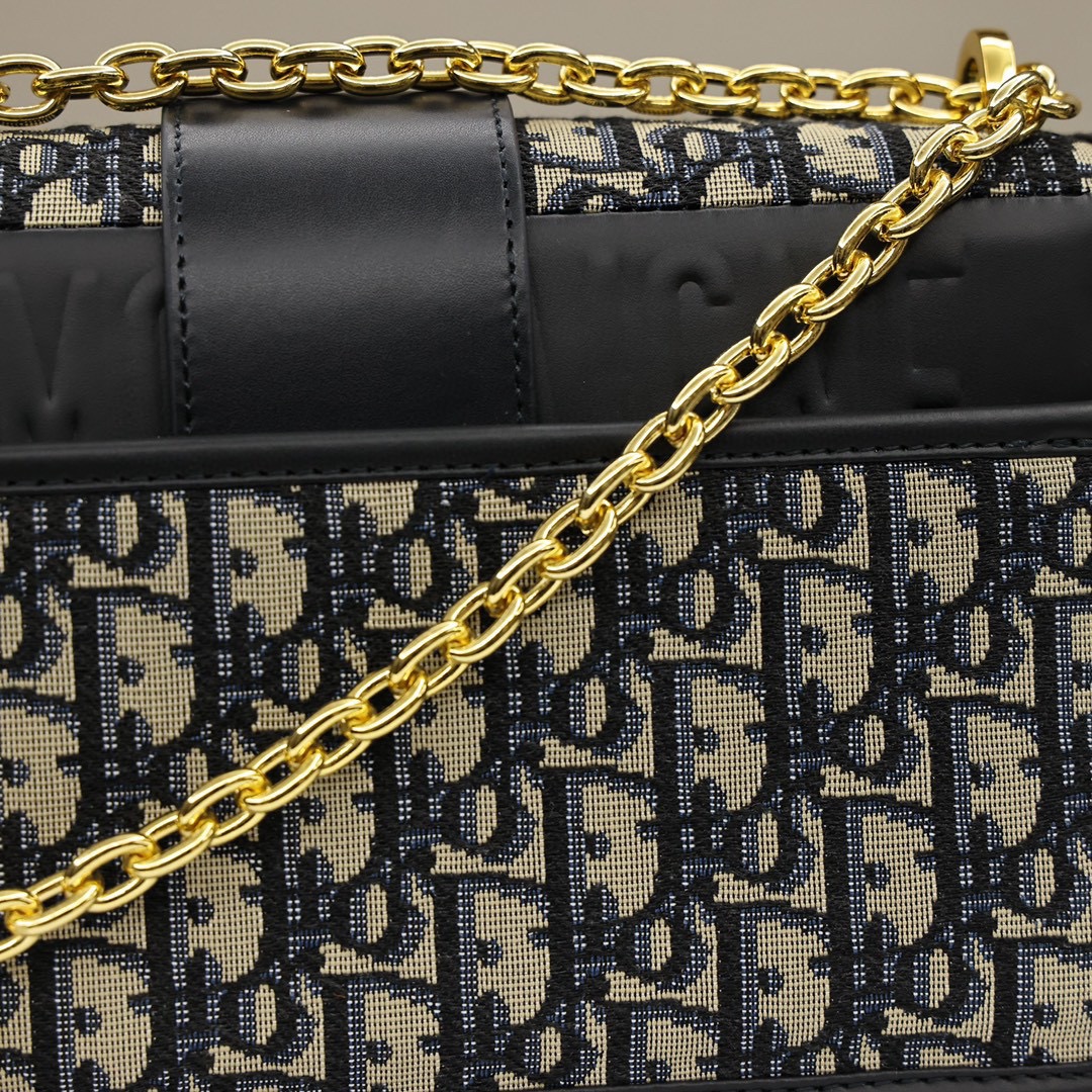 这款手袋采用 Oblique 印花精心装饰.打造优雅经典的造型.翻盖饰以复古金色饰面金属“CD”扣环.灵感源自 Christian Dior 香水瓶的封口.背面“30 Montaigne”压花标志等高雅的细节.突显时尚的设计.