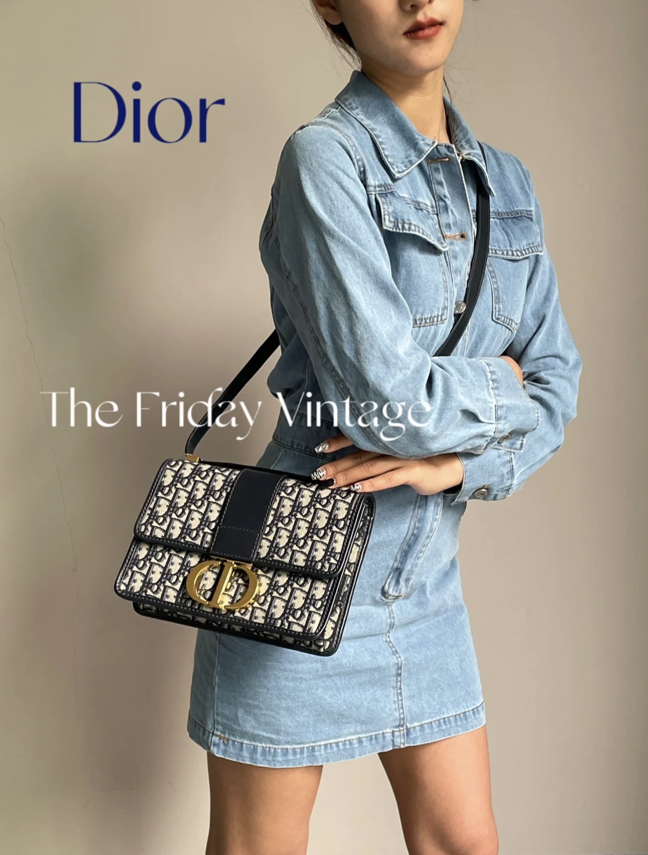 这款手袋采用 Oblique 印花精心装饰.打造优雅经典的造型.翻盖饰以复古金色饰面金属“CD”扣环.灵感源自 Christian Dior 香水瓶的封口.背面“30 Montaigne”压花标志等高雅的细节.突显时尚的设计.