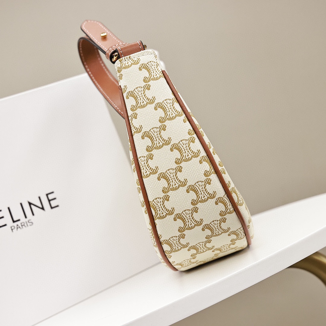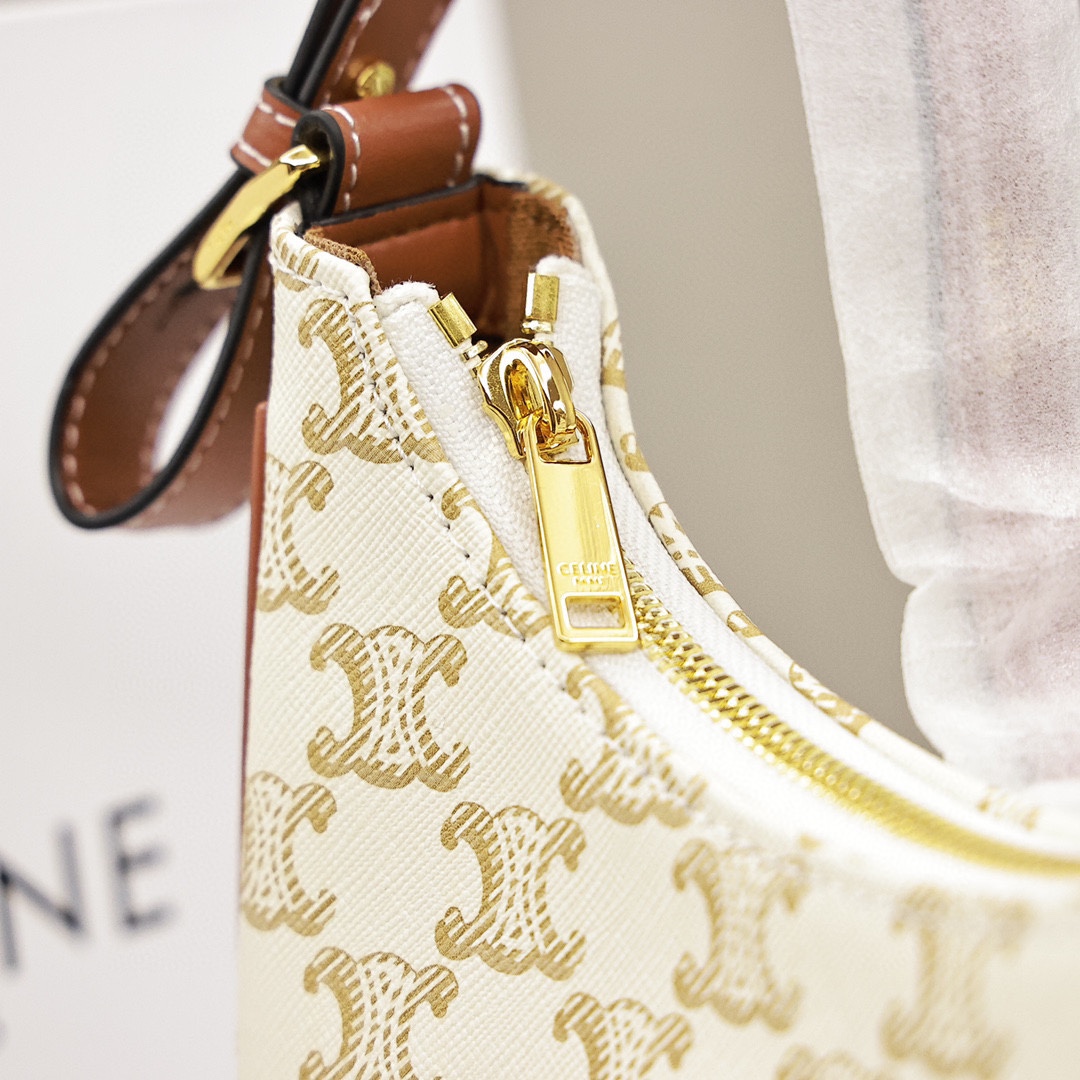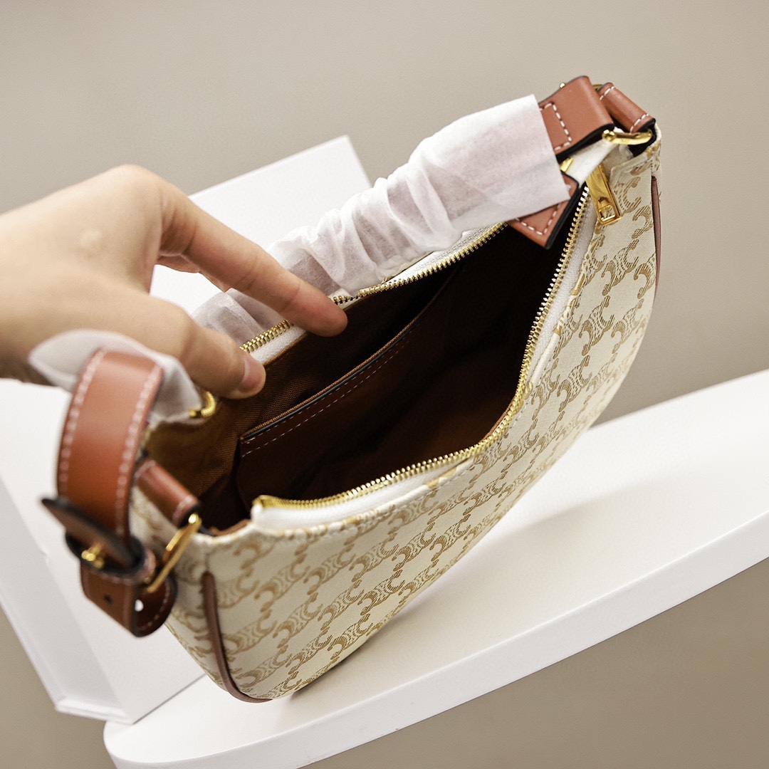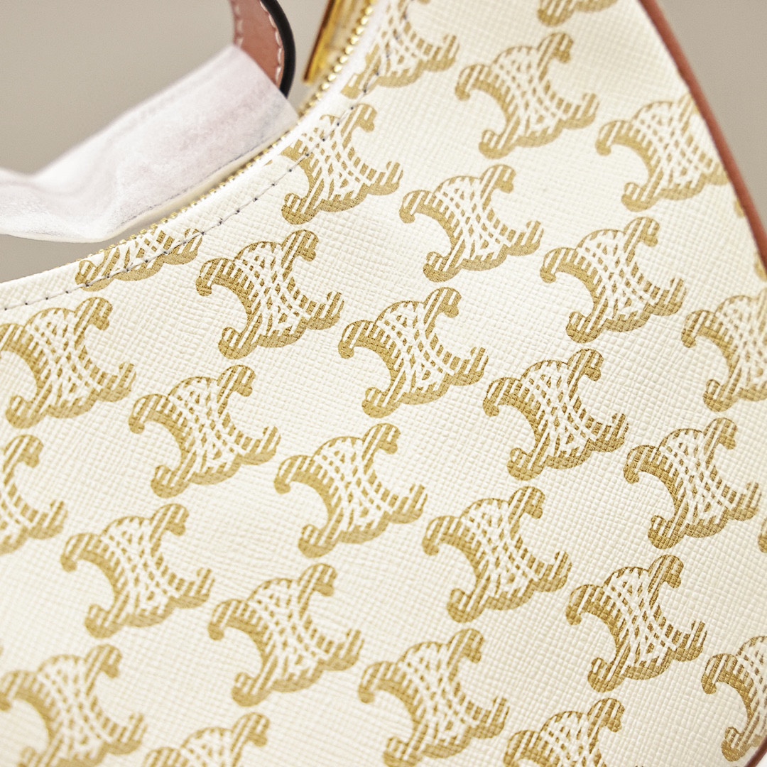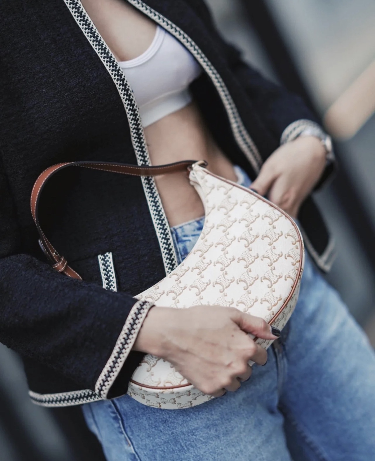 有着独特的半月豌豆包型.线条流畅.最能显出大气和优雅.它的包身是最经典的Celine凯旋门logo帆布印花. 腋下包仍然是今年最火的包型之一.能装还好搭配.时髦女孩儿们都特别爱.