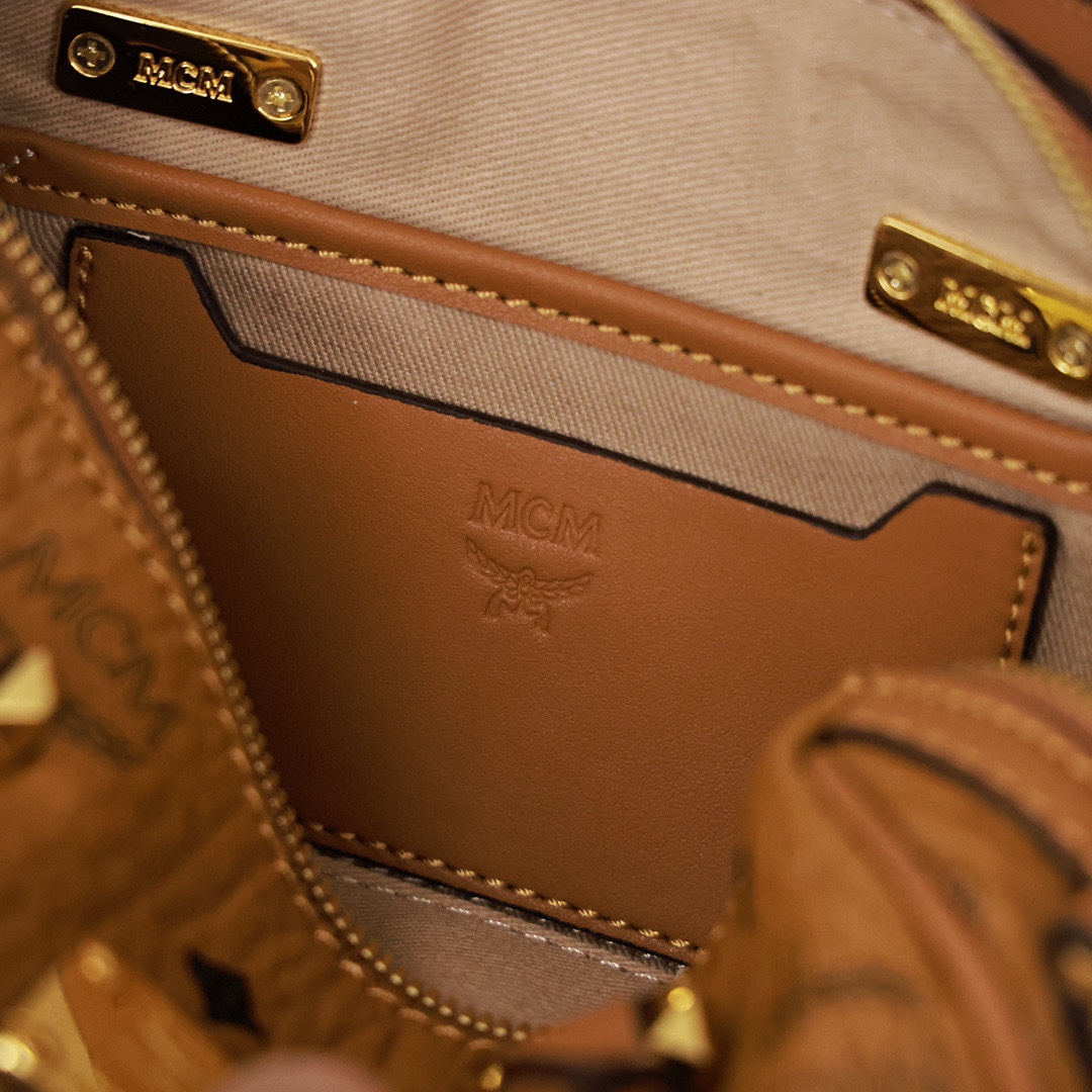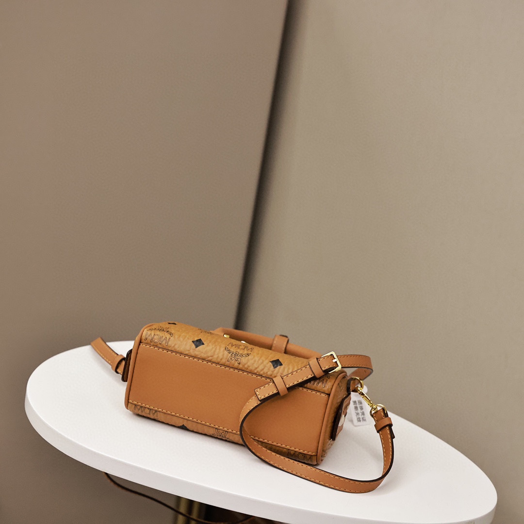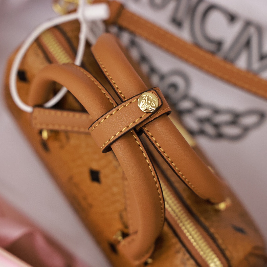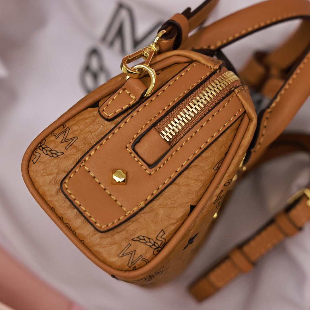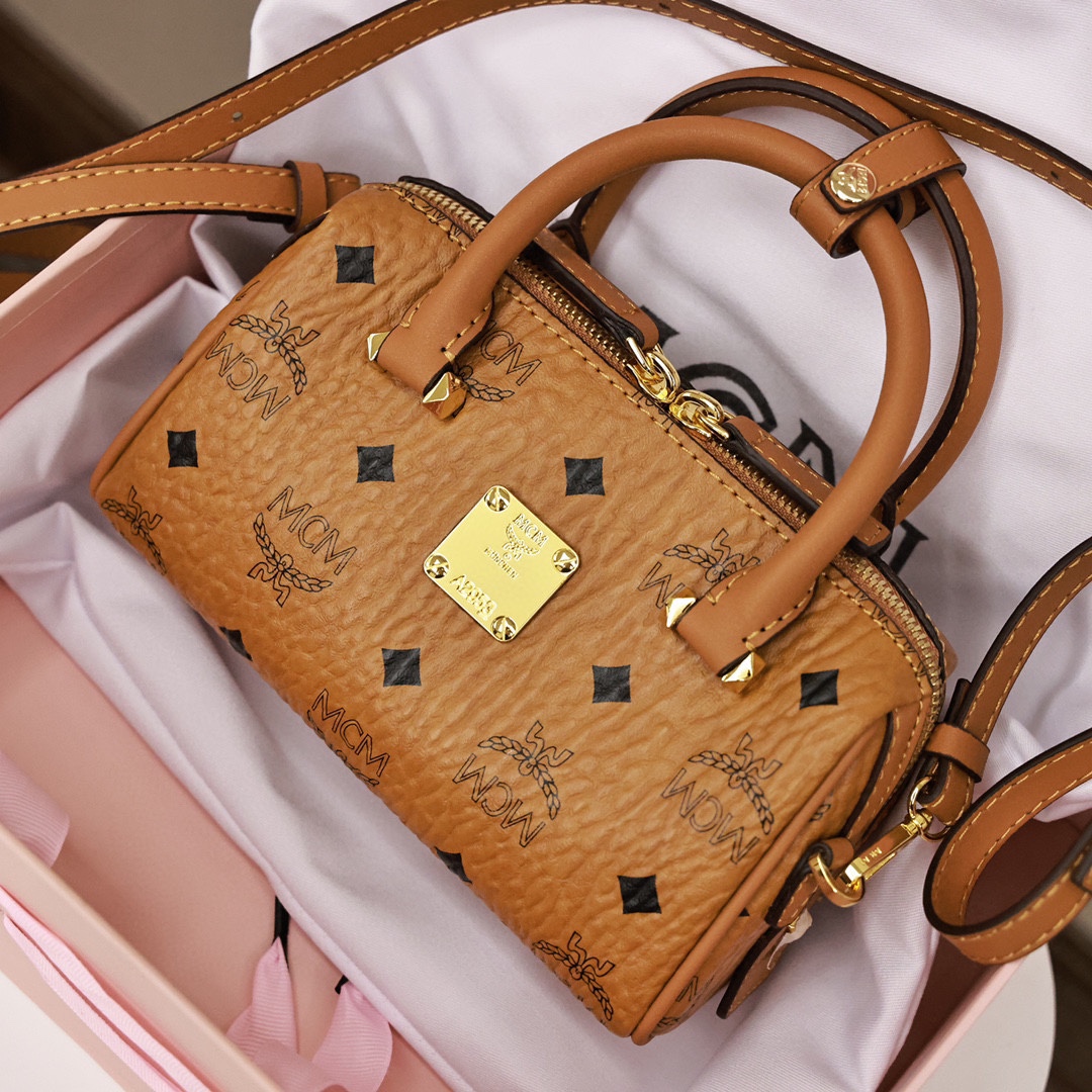 这款向MCM根植于旅行的理念致敬的波士顿包让人联想起周末旅行包.干净利落的线条.并配有方便开启的加长拉链.做工精细.一丝不苟.顶部提手由手工进行缠绕.针缝和边缘上漆.