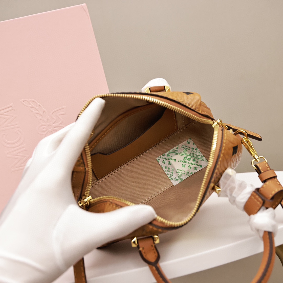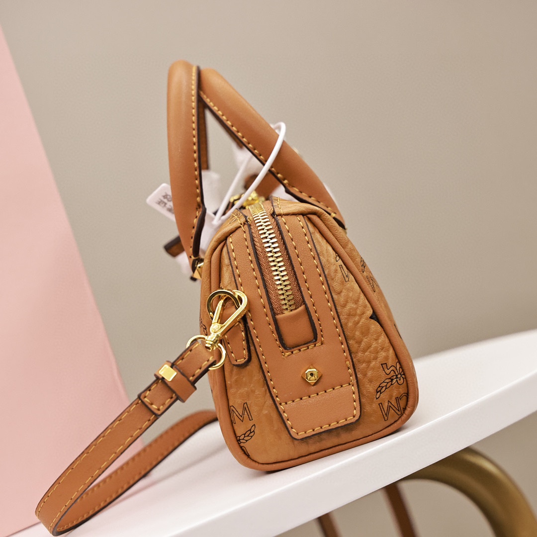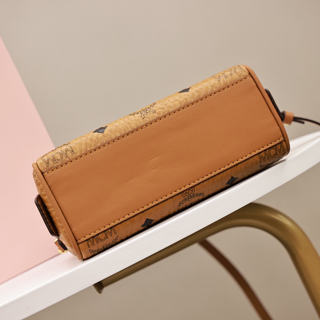 这款向MCM根植于旅行的理念致敬的波士顿包让人联想起周末旅行包.干净利落的线条.并配有方便开启的加长拉链.做工精细.一丝不苟.顶部提手由手工进行缠绕.针缝和边缘上漆.