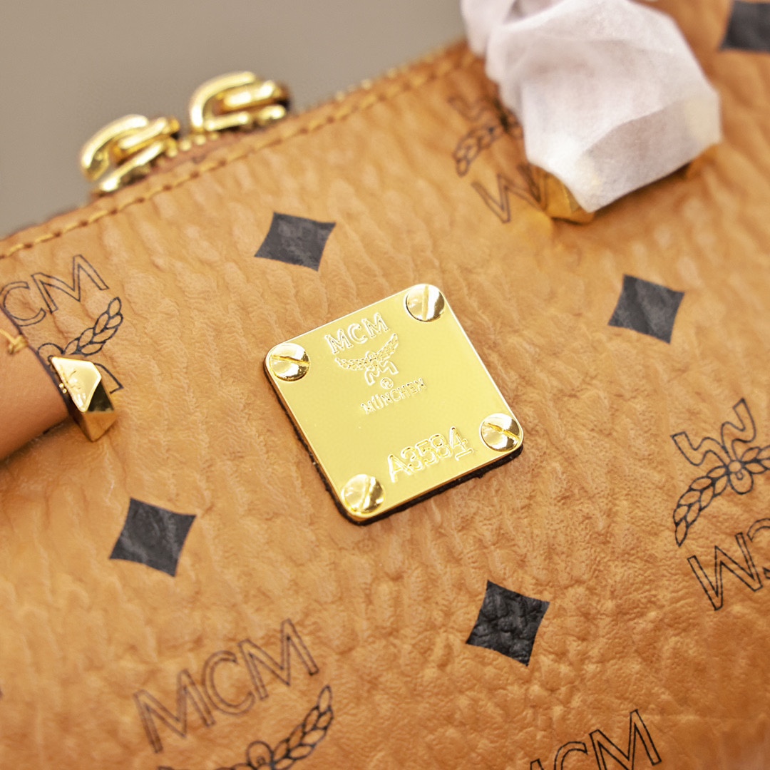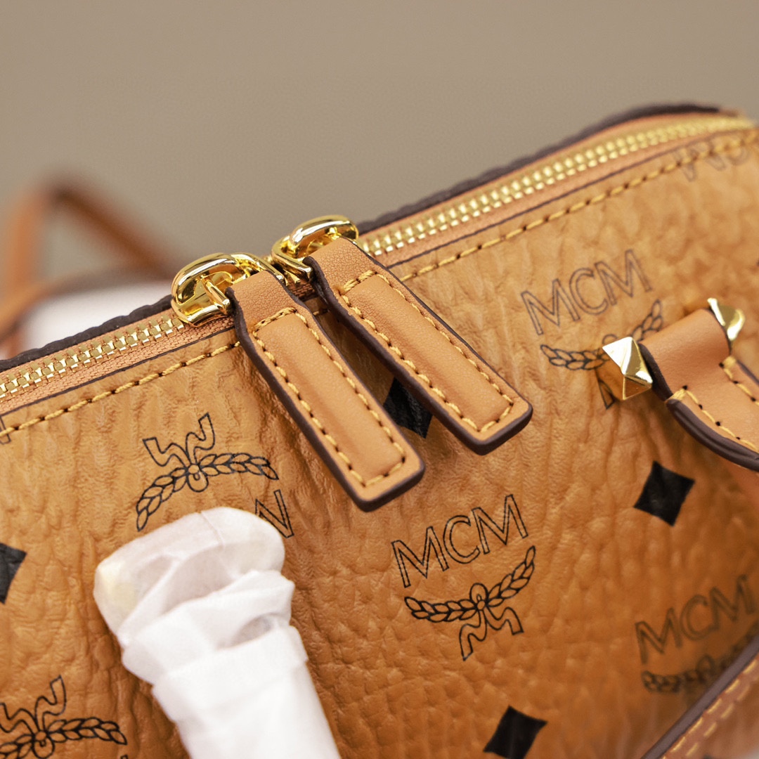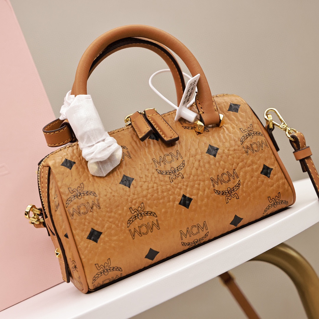 这款向MCM根植于旅行的理念致敬的波士顿包让人联想起周末旅行包.干净利落的线条.并配有方便开启的加长拉链.做工精细.一丝不苟.顶部提手由手工进行缠绕.针缝和边缘上漆.