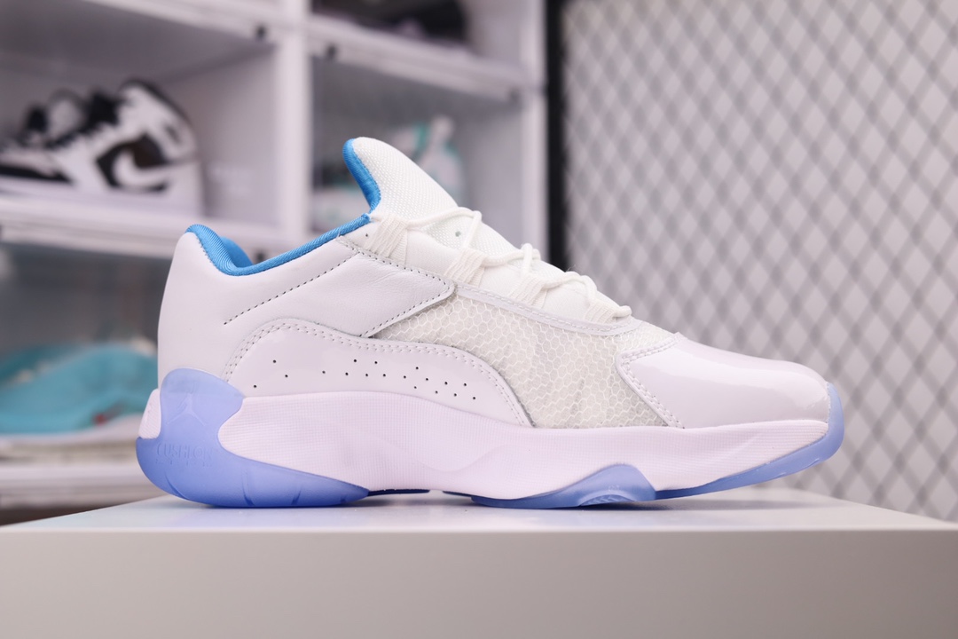 G5 Air Jordan AJ11 CMFT Low South Beach 全新配色季后赛低帮防滑减震篮球鞋 整双鞋采用黑白双色打造,视觉效果十分简约。侧身处将传统的漆面材质改为荔枝纹皮革,虽然没有那么亮眼,但依旧有着超高的规格。鞋带口以不规则的泼墨样式打造,为简约的鞋身增添一抹色彩,呈现出经典的南海岸造型。中底部分将上次的开窗式AIR MAX气垫,改为了传统的泡沫中底,最后搭配水晶外底完善设计
