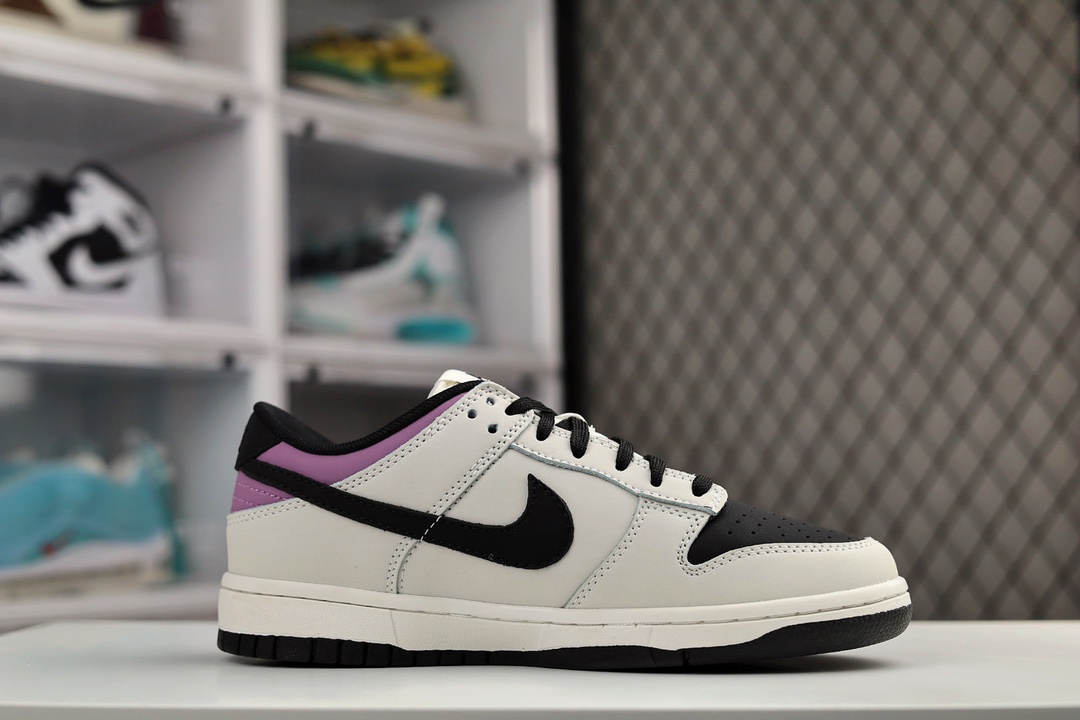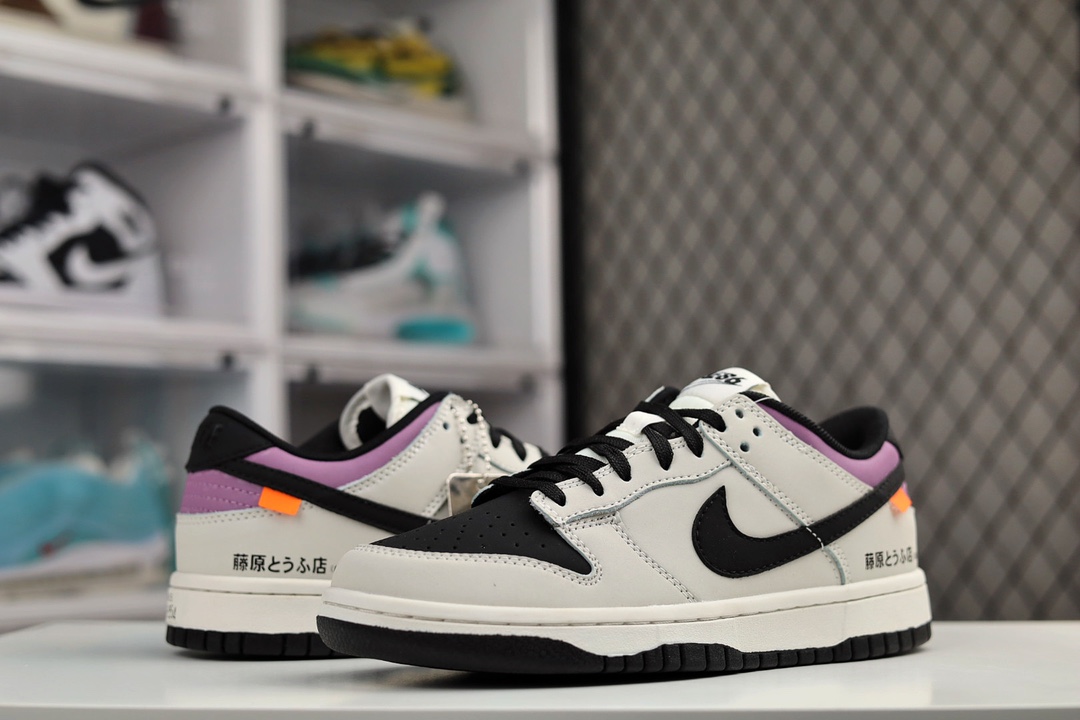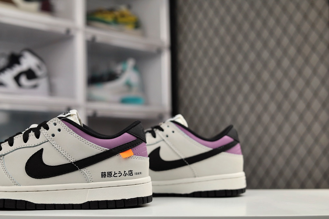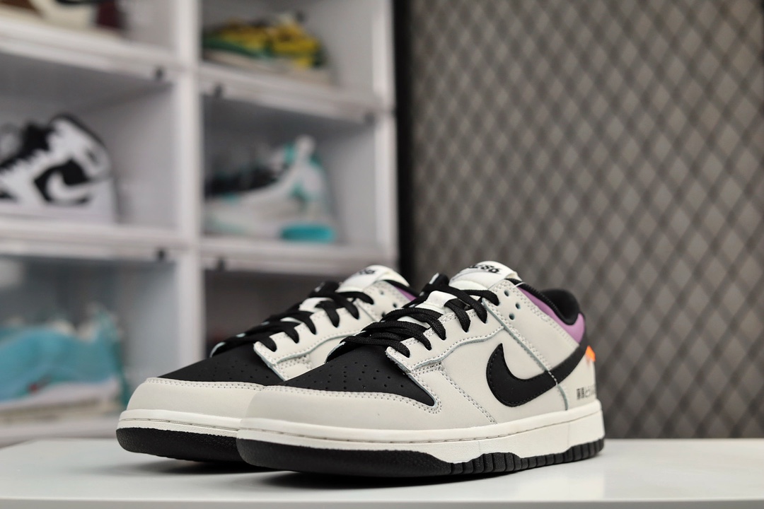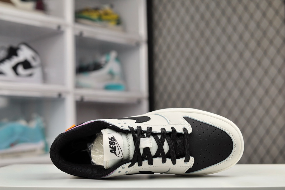 H0 公司级Nike Dunk Low “Racer 低帮 板鞋 黑灰 头文字D AE86 “鞋面整体以皮革材质打造,配色方面则使用反转设计,以经典的”AE86 车身配色为主题,将AE86部分反转呈现。鞋身整体以黑色皮革为底色,搭配灰色框架以及Swoosh设计