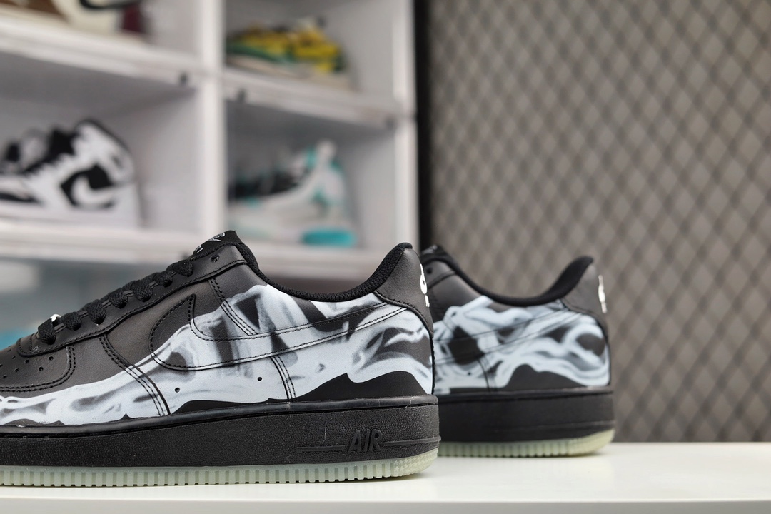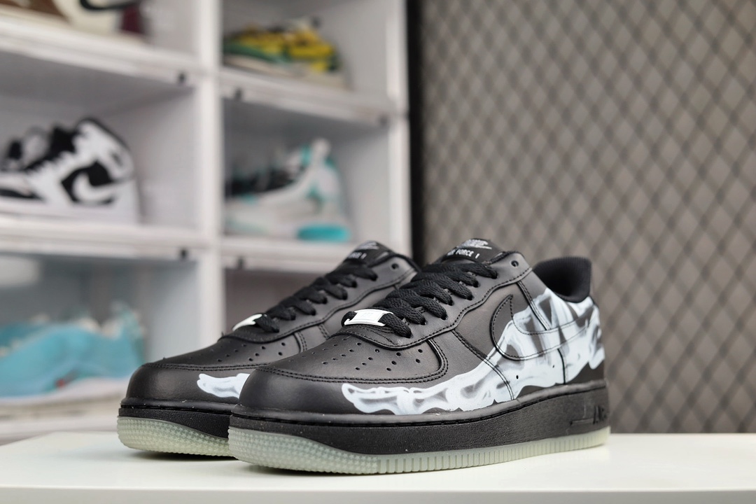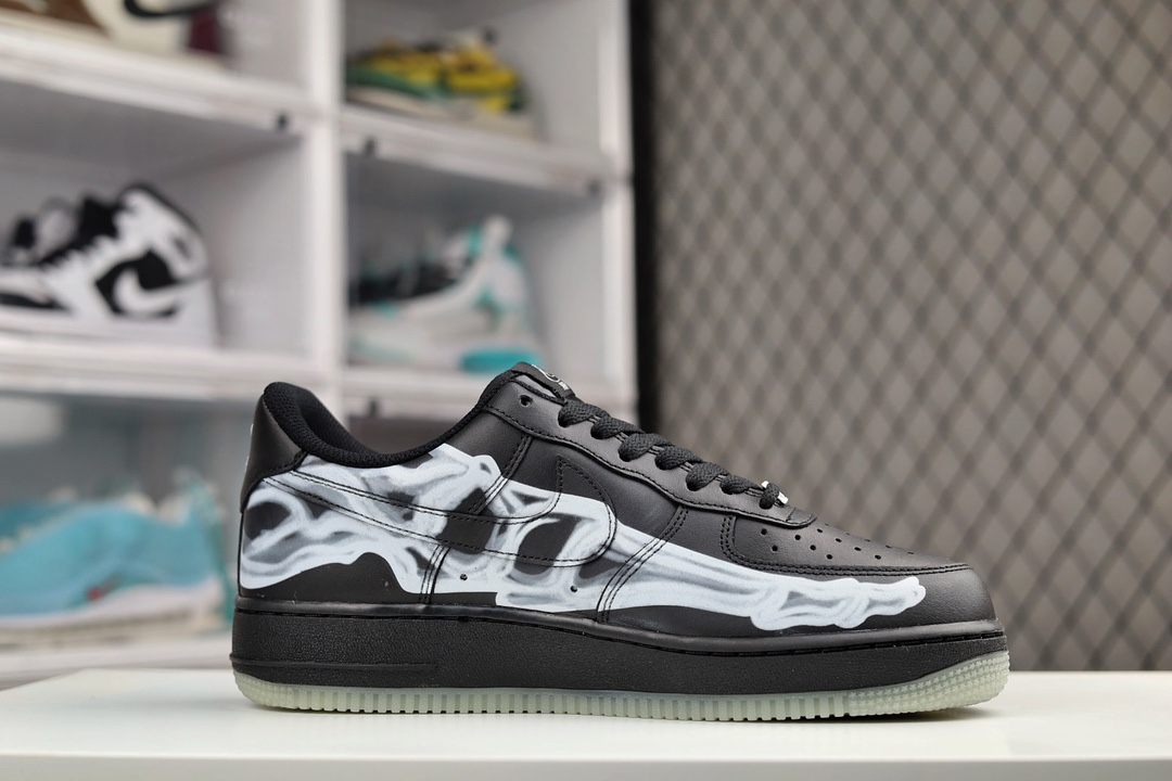 H0 Air Force 1 “Skeleton” 骨骼万圣节骨头 夜光空军一号低帮板鞋全新升级鞋面花纹 透视荧光大底 脚部的骨骼侧透效果,鞋舌字样也改以骨骼装扮呈现,使其更具万圣节的恐怖节日氛围