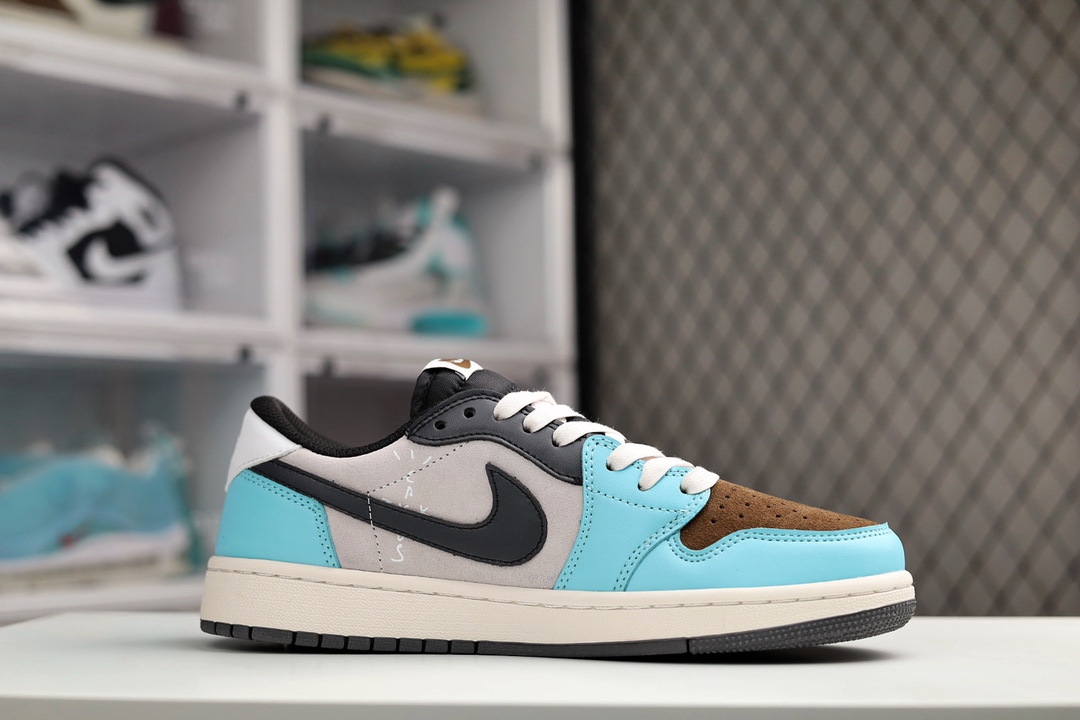 H0 Air Jordan 1 Low OG 低帮 灰蓝棕倒勾 AJ1 乔丹1代 aj1 乔1 低邦 棕蓝灰倒钩联名 穿着多彩拼接配色方案。没有泄露的照片浮出水面,但你可以期待这款Air Jordan 1 Low的外侧采用传统的大号后向Swoosh,而内侧则采用常规的Swoosh。
