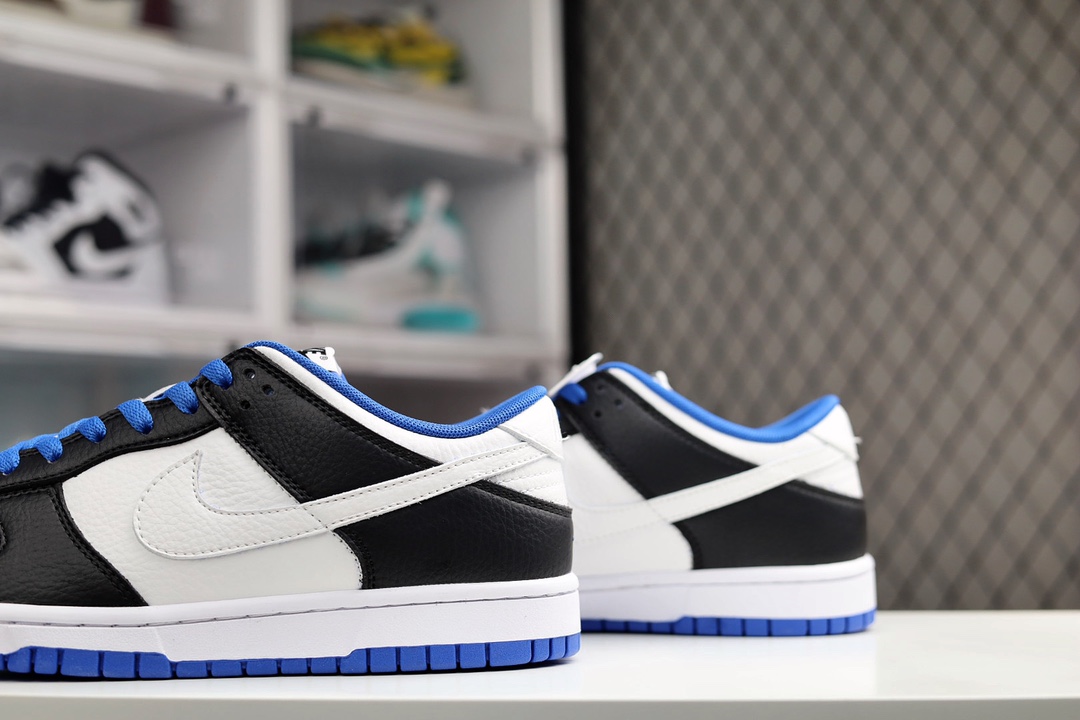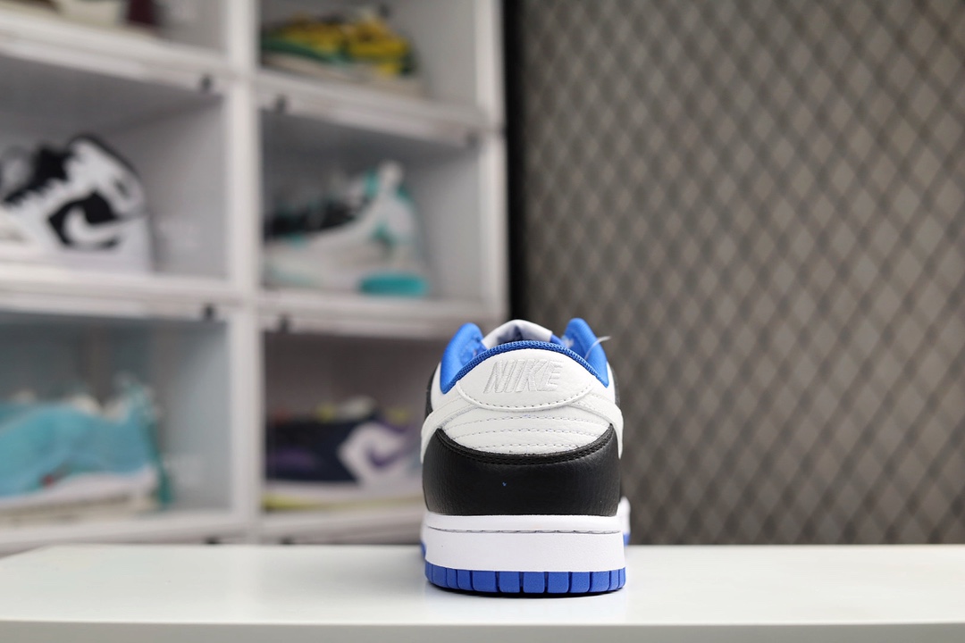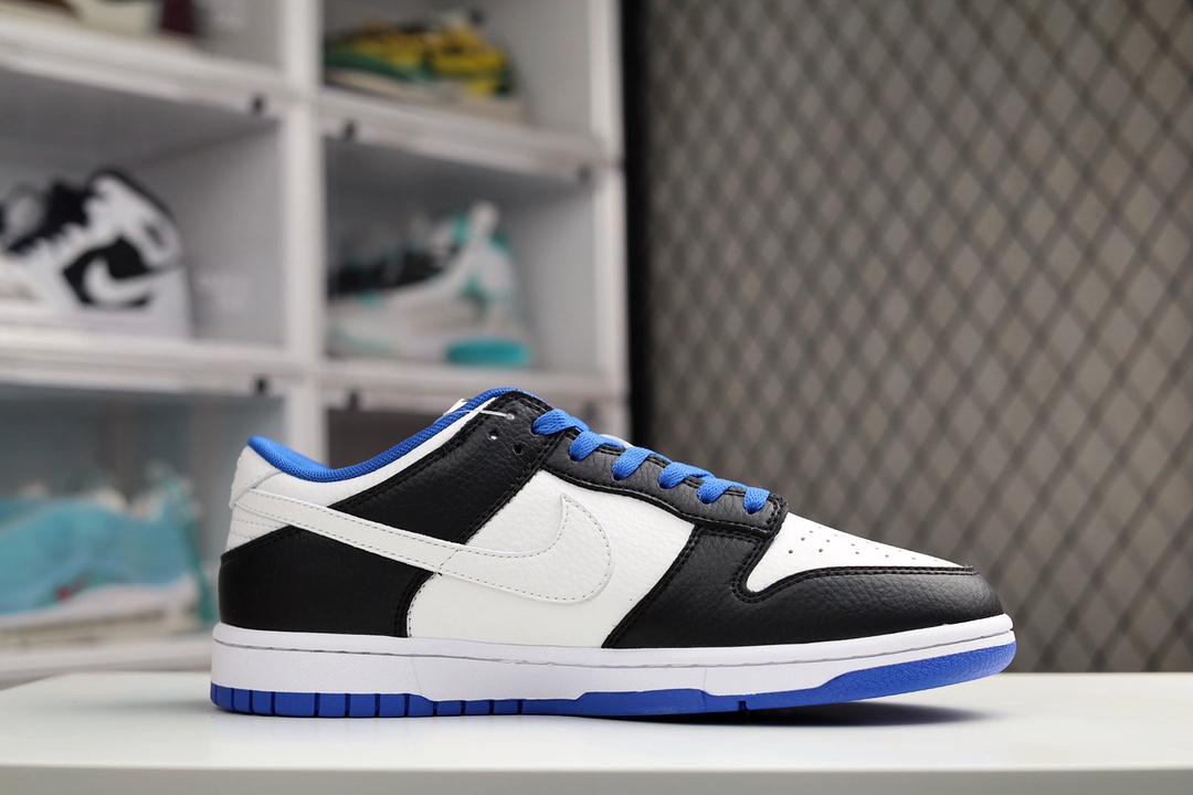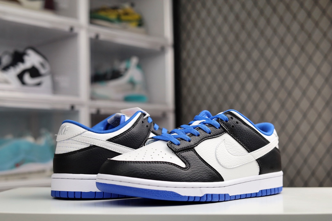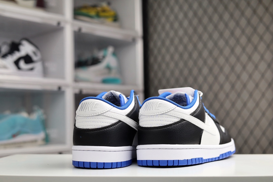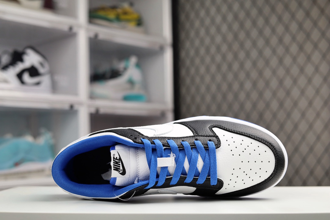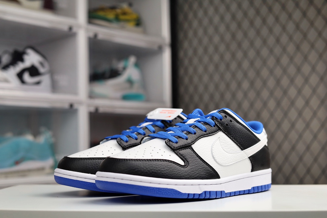 H0 Nike SB Dunk Low 小闪电史诗 全网唯一全头层版本 正确低趴鞋头细节 拒绝偷工减料供应 本次推出的Dunk Low采用黑色和白色以及蓝色作为主配色,和大底一样,鞋带采用了海军蓝的颜色,形成上下呼应的设计。值得一提的是,此次Swoosh采用了白色,这就和熊猫Dunk有了区分,同时在鞋后跟上的“NIKE”刺绣字样,也采用了白色,此举瞬间提升了整体质感