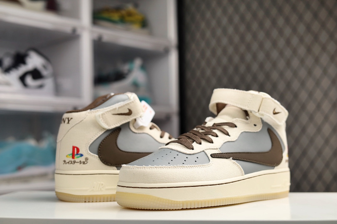 H5 公司级 TS x PlayStation x Air Force 1 PS5 创意定制 三方联名 空军一号中帮休闲板鞋 原楦头原纸板 夜光大底 纯正空军版型 原厂中底钢印 拉帮完美 内置全掌气垫