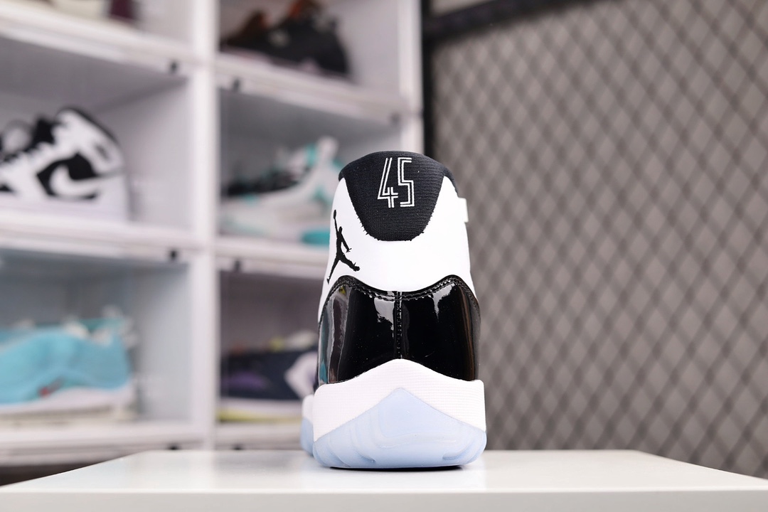 J0 Air Jordan AJ11 康扣 45号后跟 黑白 纯原 原楦原档案数据开模打造 原厂中底拉帮钢印 原厂漆皮 防冻不开裂 头层皮料 原装鞋撑 水晶大底正确色度色泽 原楦原数据刺绣 原厂车缝走线及对位 毫厘不差 飞人logo采用原数据电脑刺绣 原装正品碳纤维真实碳板 增强抗扭 原内标 原盒标 正确官方原盒 原厂防氧化水晶外底 原厂配套厂全掌AIR SOLE气垫885QS