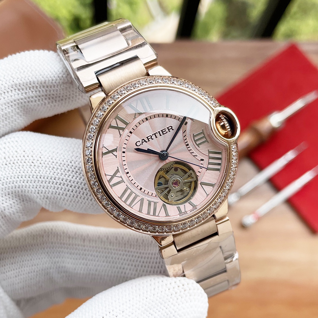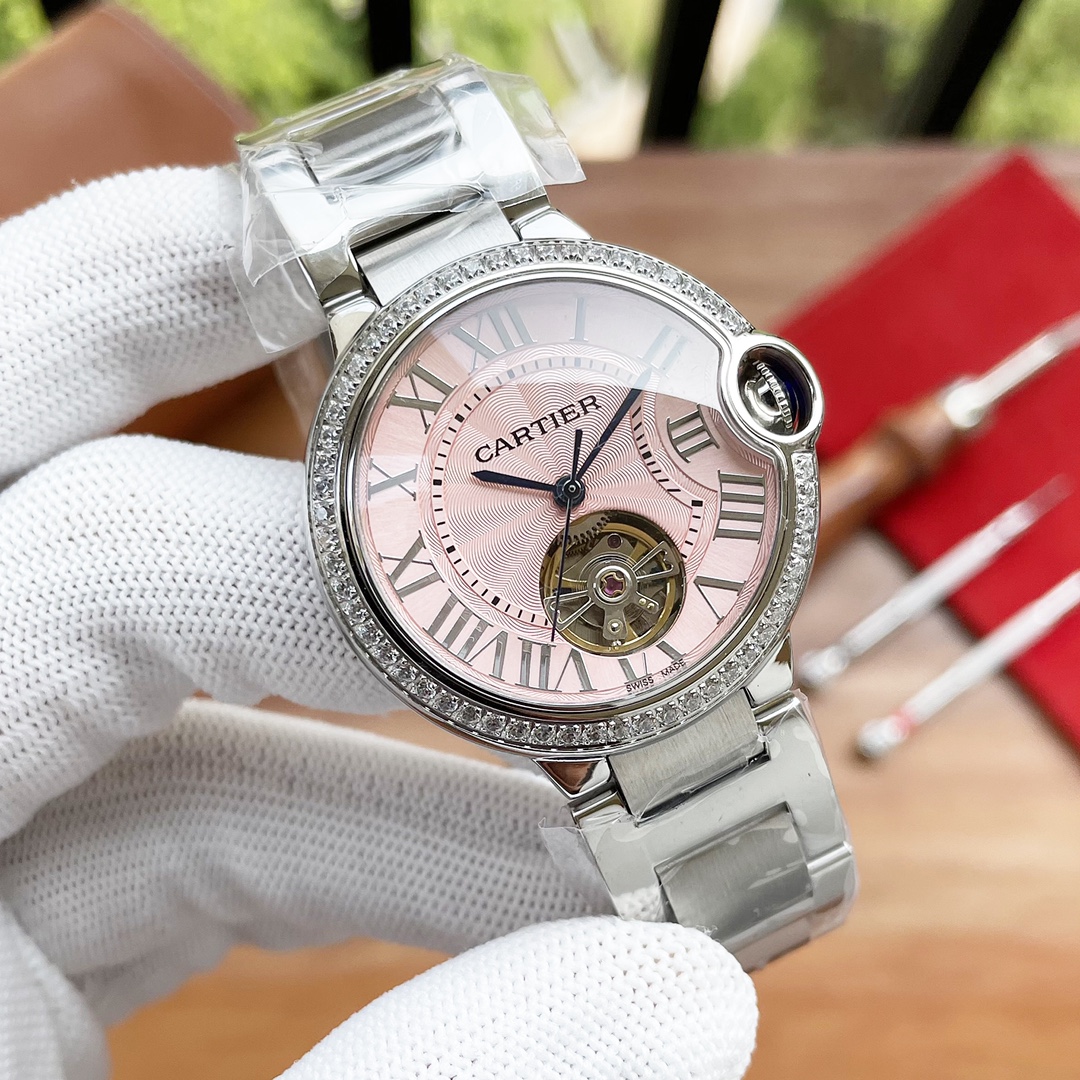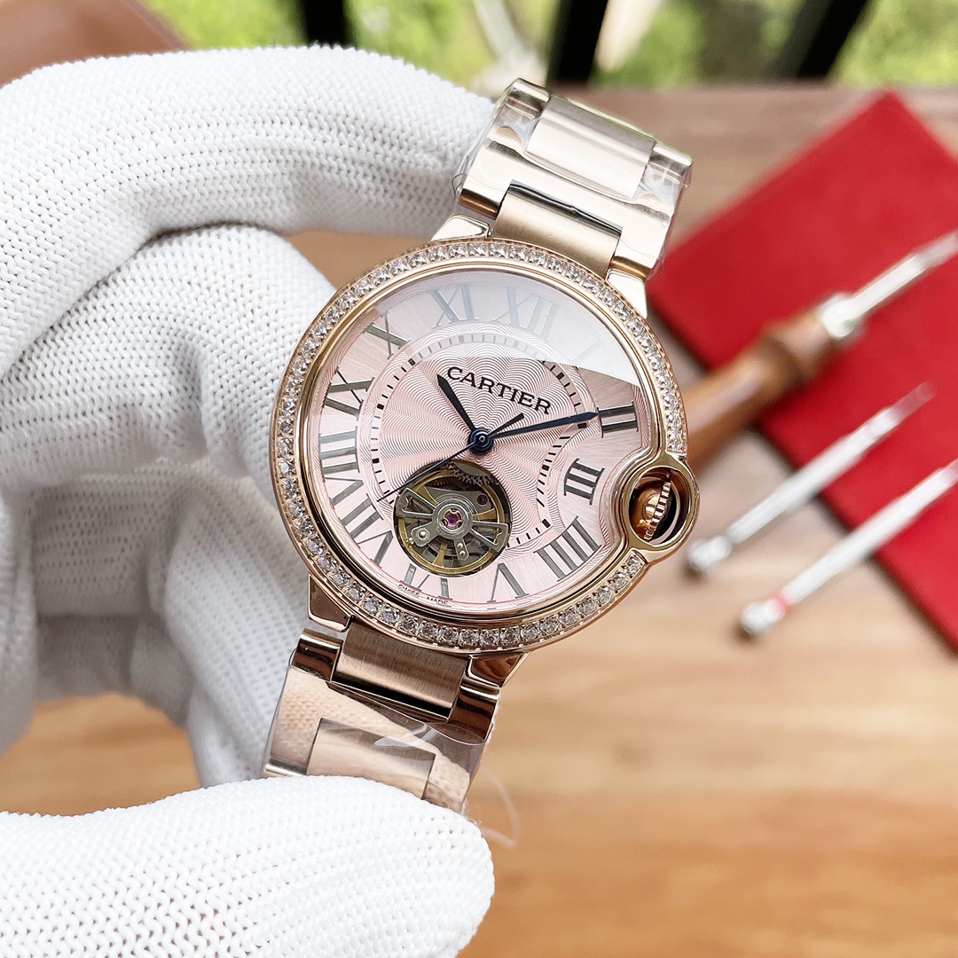 白 ,玫 ,单钻20,钢带40 一表一卡三码合一台湾厂出品 深度防水30米 卡地亚 Cartier 女款蓝气球飞轮系列 双卜鱼眼蓝宝石镜面陀飞轮自动机械女表火热上市,专柜最畅销的粉色罗马钉表盘流露着时尚唯美。机芯飞轮运作一目了然、尽显高贵奢华。水珠:鱼眼泡双卜蓝宝石镜面采用316精钢材料四件套钢蓝剑形指针316钢带原装拉扣式,意大利真皮表带完美融合经典与创新。直径宽36mm,厚10mm。请认准独家品质30米深度防水三码合一卡片吊牌与后盖编码一致,独立包装