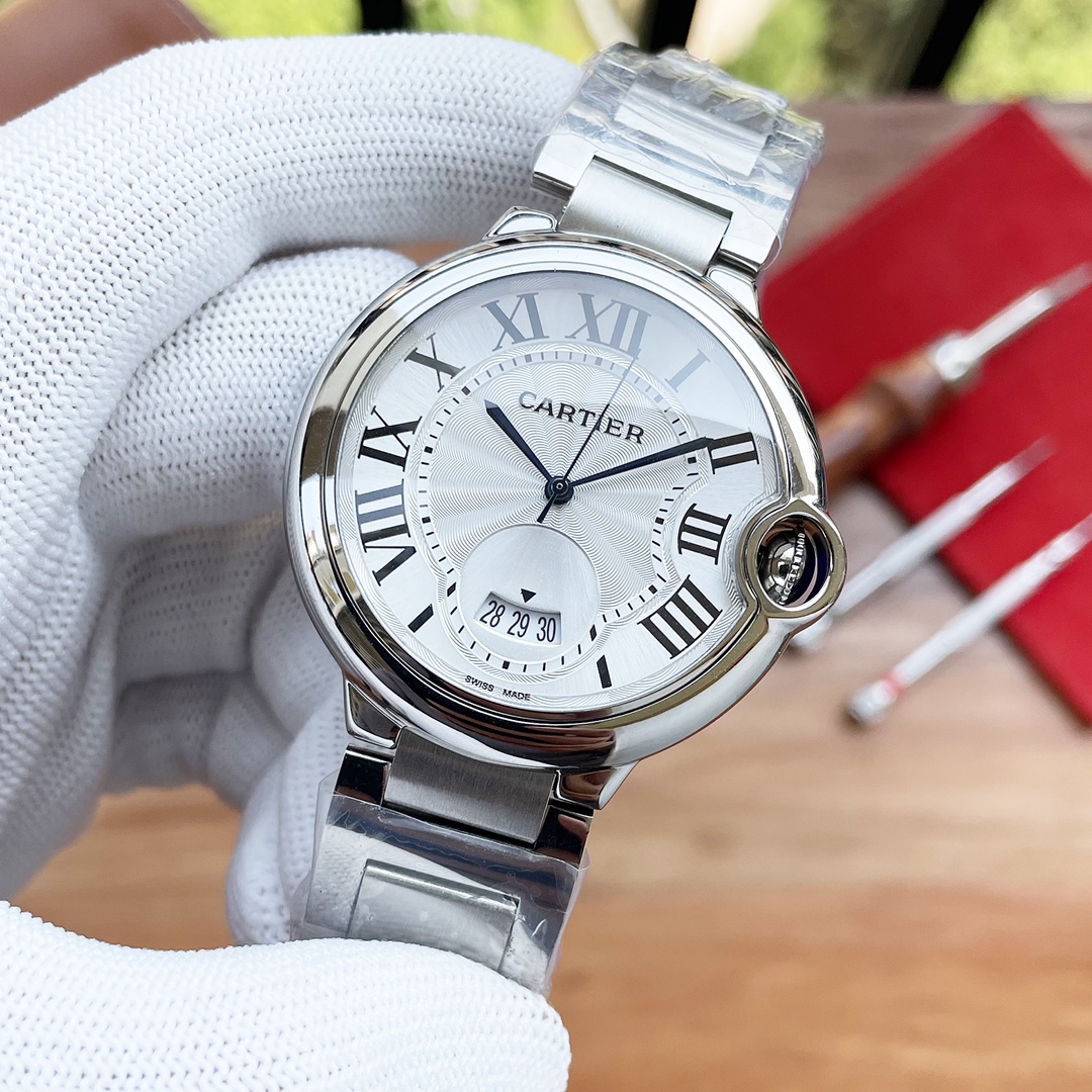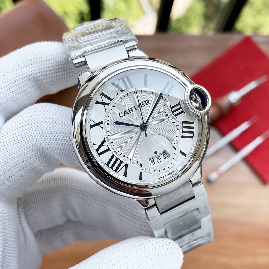 一表一卡三码合一 VR台湾厂出品Cartier 卡地亚 Cartier 蓝气球系列:42mm男款上市,双卜蓝宝石玻璃镜面,三针日历经典罗马表盘,搭载原装进口全自动机械机芯,采用316精钢表壳,钢蓝剑形指针,水珠鱼眼泡双卜蓝宝石镜面,尺寸42mm厚11mm底盖编码卡片吊牌三码合一独立包装
