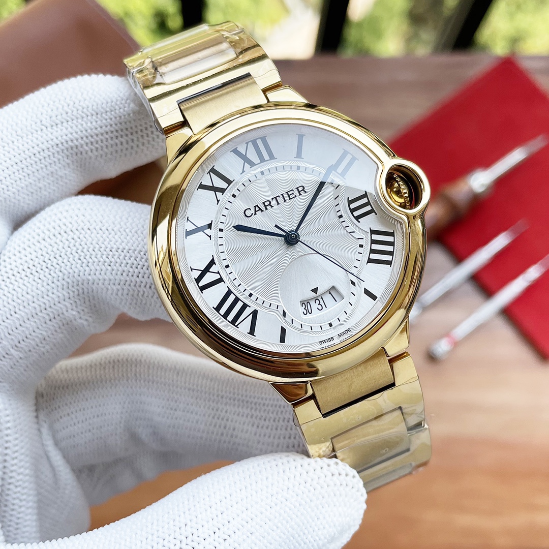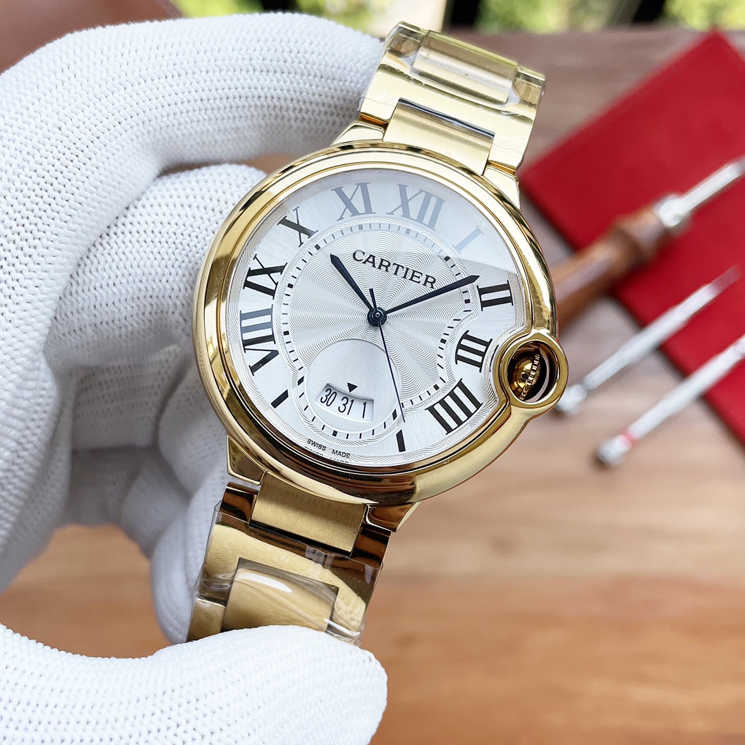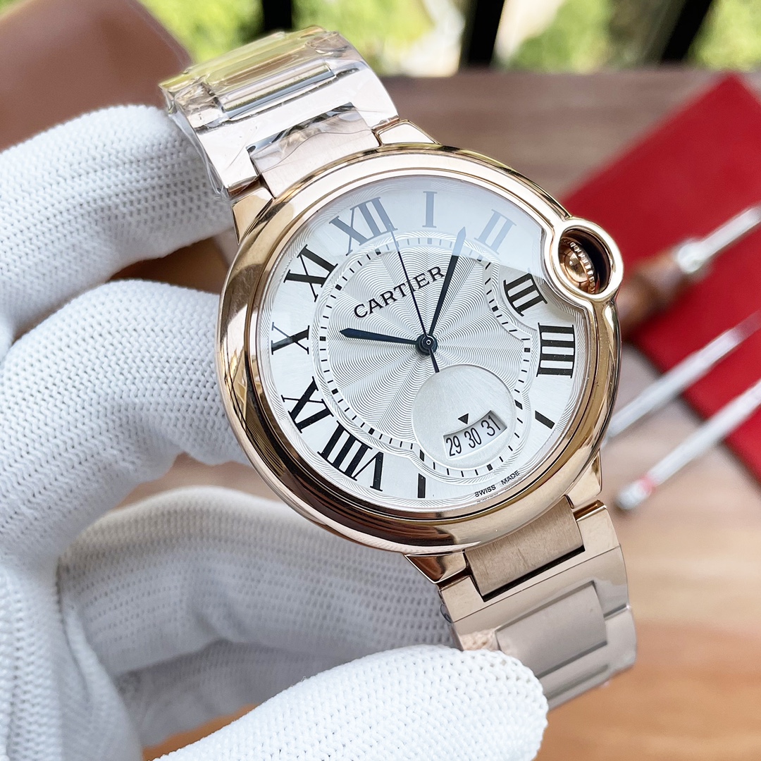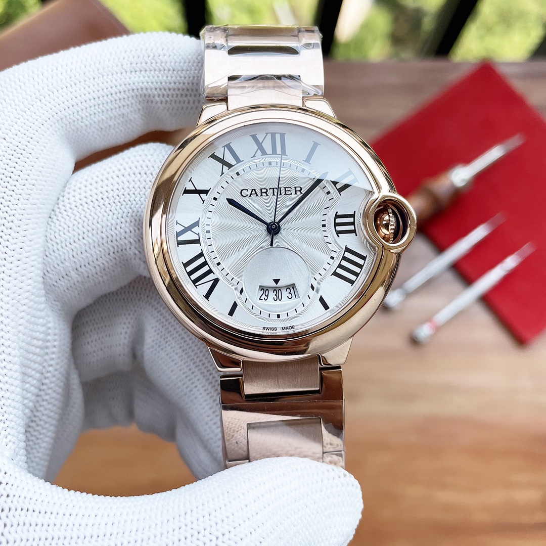 白 ,玫 ,钢带40 一表一卡三码合一 VR台湾厂出品Cartier 卡地亚 Cartier 蓝气球系列:42mm男款上市,双卜蓝宝石玻璃镜面,三针日历经典罗马表盘,搭载原装进口全自动机械机芯,采用316精钢表壳,钢蓝剑形指针,水珠鱼眼泡双卜蓝宝石镜面,尺寸42mm厚11mm底盖编码卡片吊牌三码合一独立包装