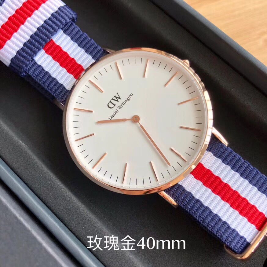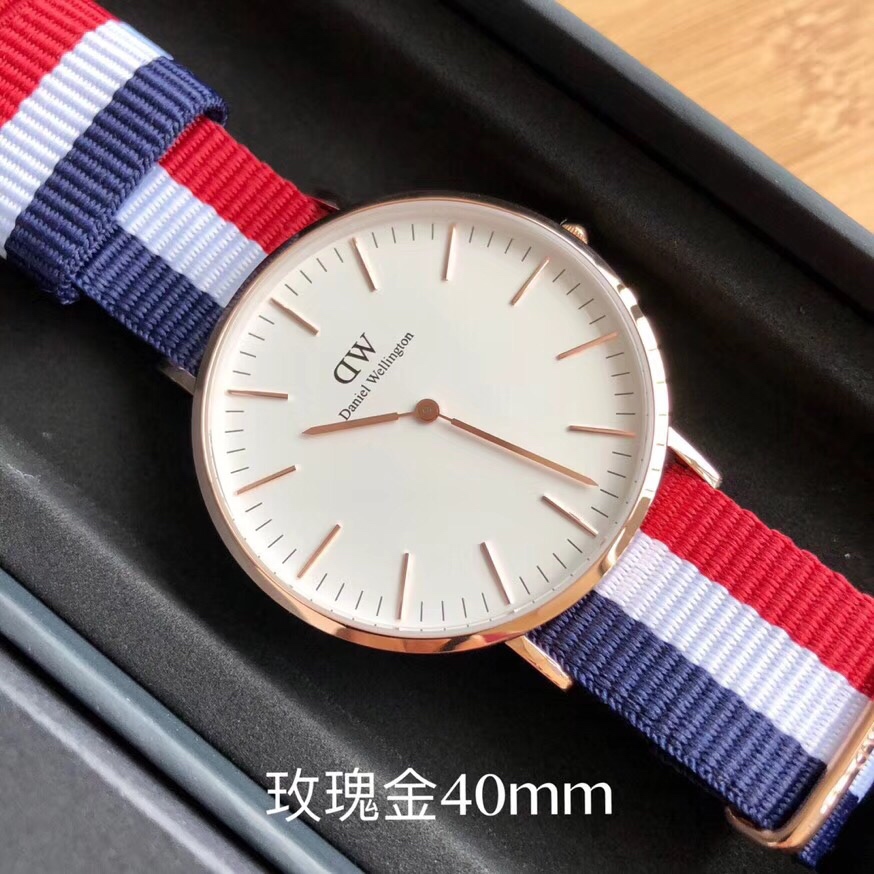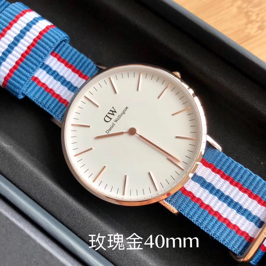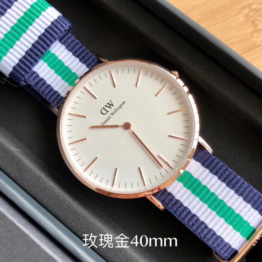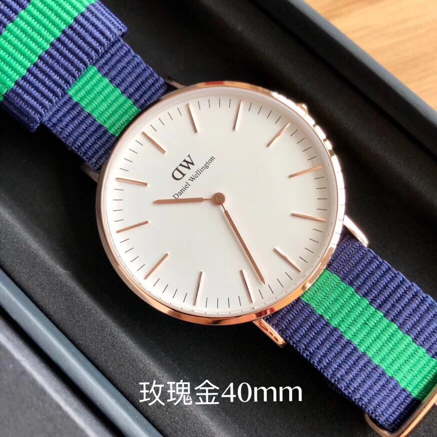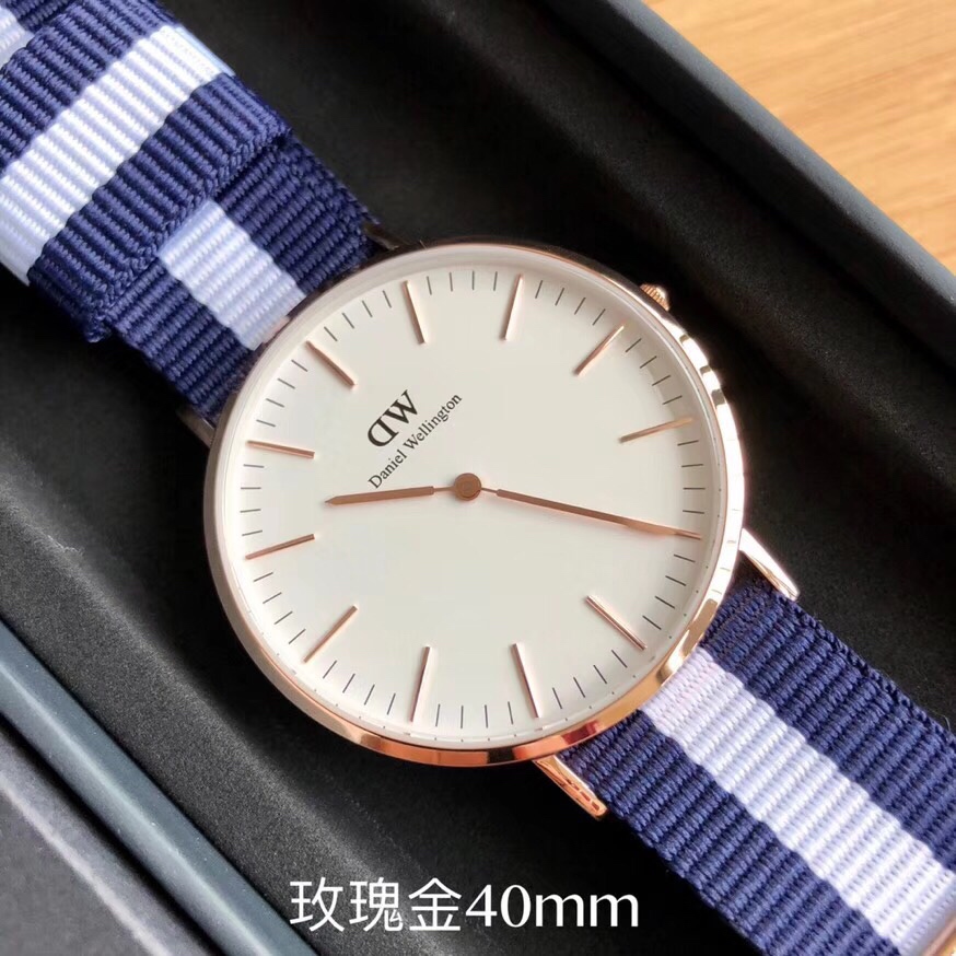 丹尼尔惠灵顿 Daniel Wellington DW尼龙表带,玫瑰金40mm表径。丹尼尔惠灵顿 Daniel Wellington DW剑桥经典款男表,Daniel Wellington丹尼尔.惠灵顿,超薄6mm厚度,316钢表壳,简约设计,时尚新宠。配专柜最新包装大全套,送礼有面。LDF出品