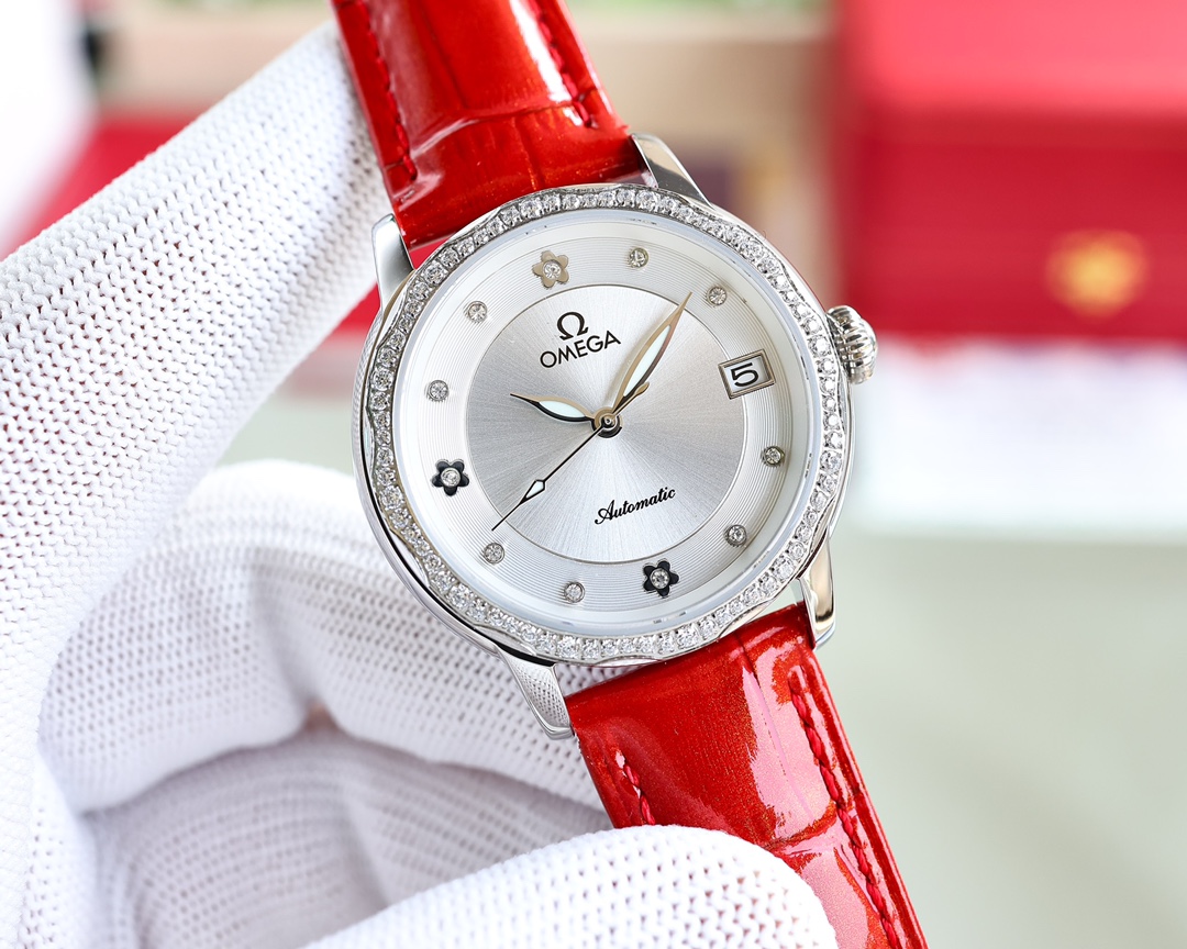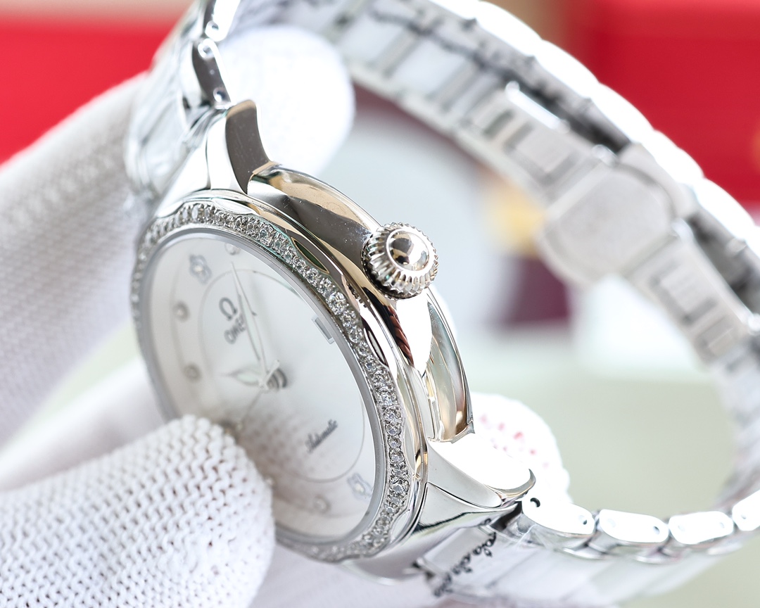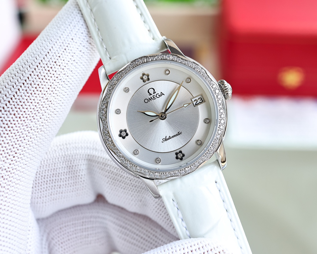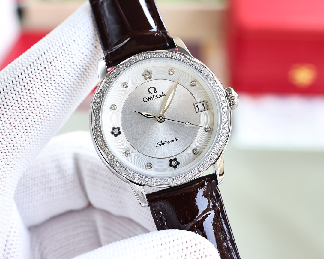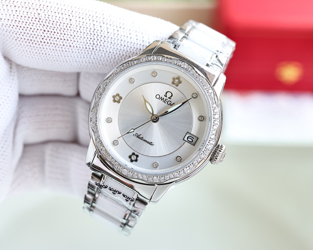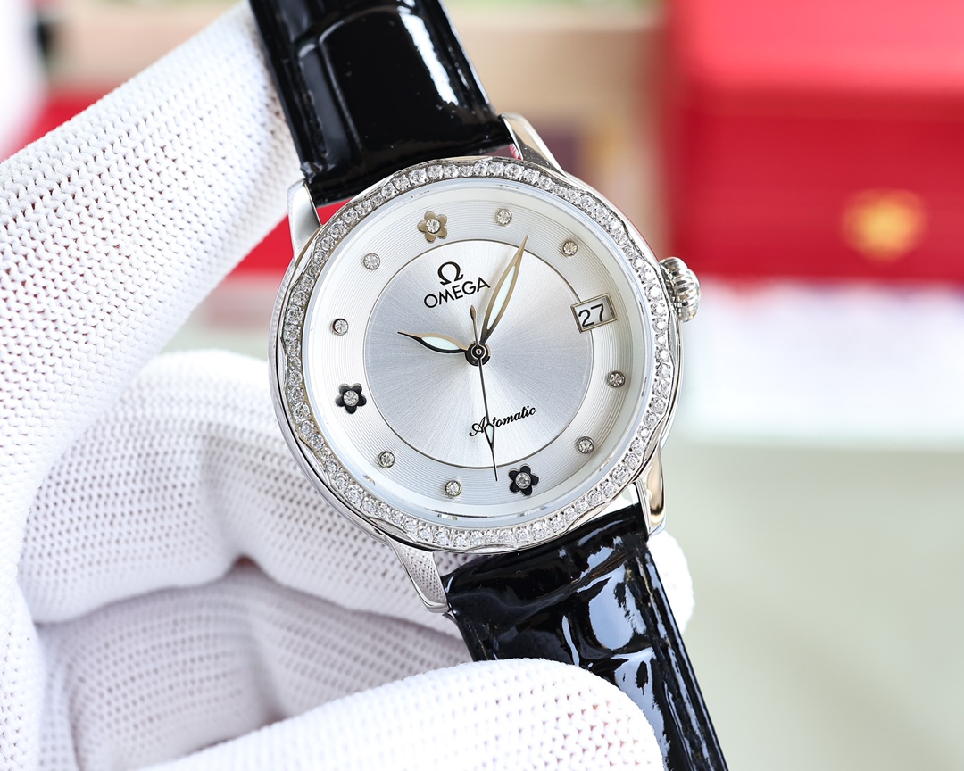 品牌: 欧米茄 Omega 类型:女款机械腕表 表壳:316精钢做工上乘 表带:进口小牛皮/陶瓷带两种可选 机芯:进口精工Nh35机械机芯走时精准 材料:高级蓝宝石水晶镜面防划花 尺寸:直径35mm,厚度12mm。