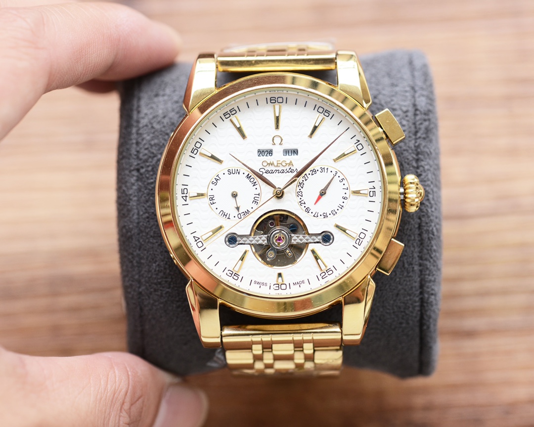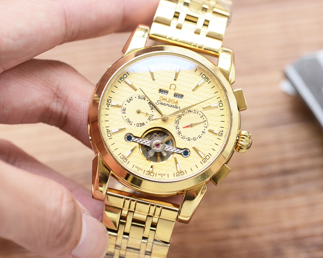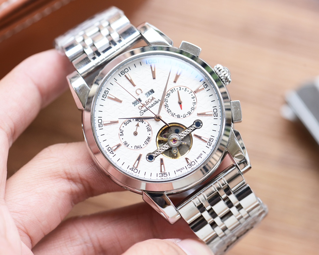 男人挚爱 多功能腕表 最新: 欧米茄 Omega 最佳设计独家首发 类型:精品男士腕表 表带:316精钢表带 机芯:高端全自动机械机芯 镜面:矿物质强化玻璃更高清 品味高雅 浩瀚大气 匠心独运 腕间瑰宝 尺寸:直径41mm厚12mm