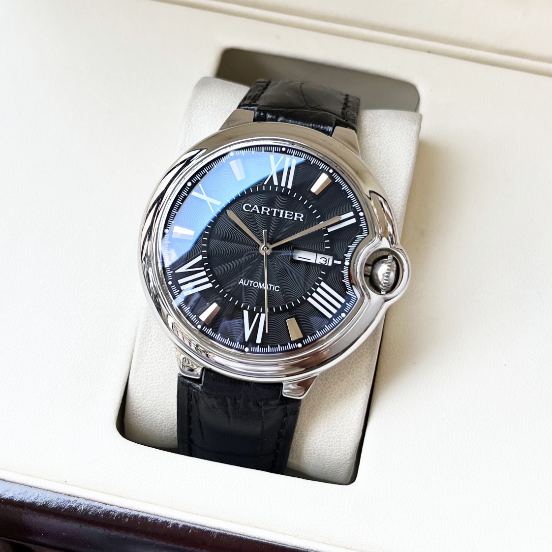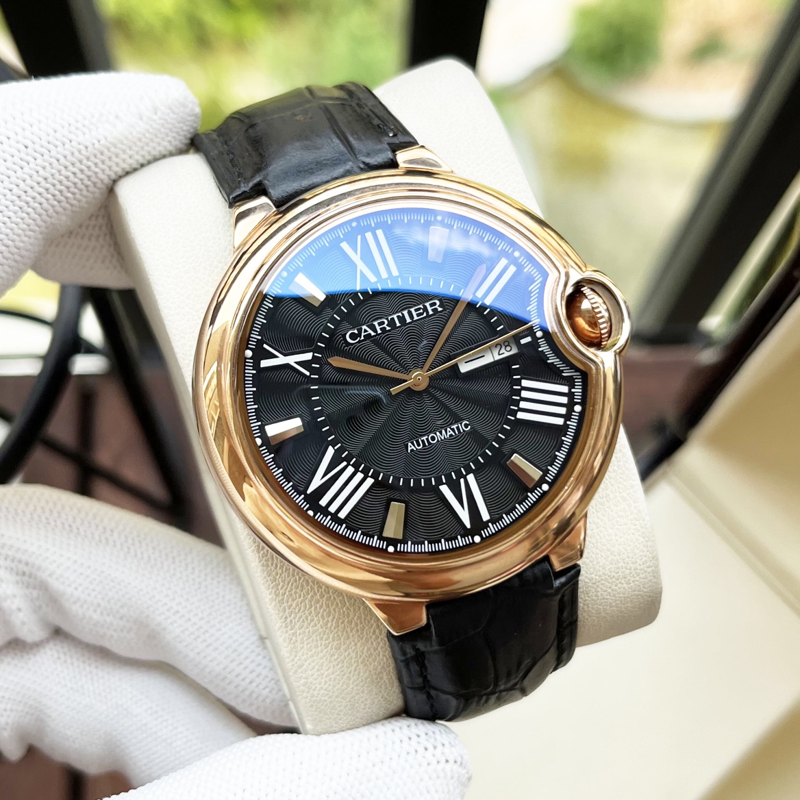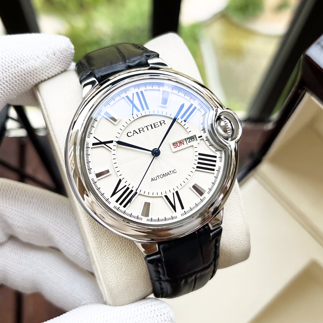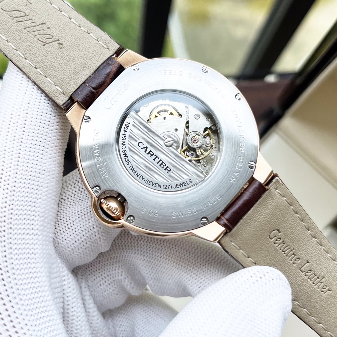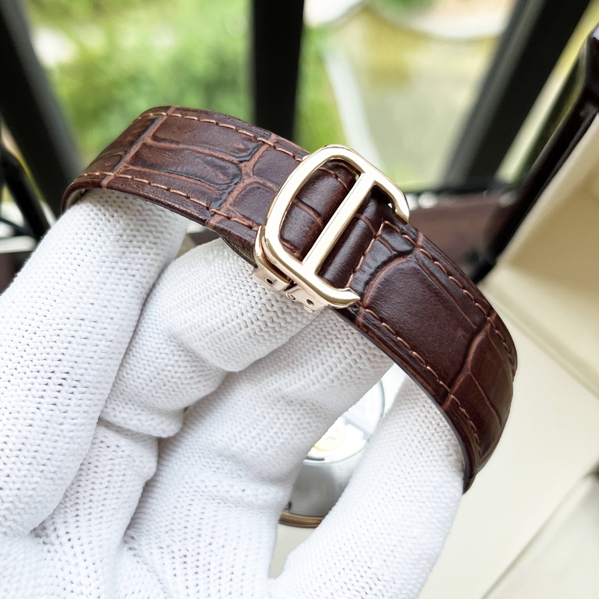 白壳 ,玫瑰金 。简约时尚 优雅大方 卡地亚 Cartier 男士腕表 全自动机械机芯 矿物强化玻璃 316L精钢表壳 真皮表带 全新风格 商务休闲 尺寸:直径44mm 厚度12mm