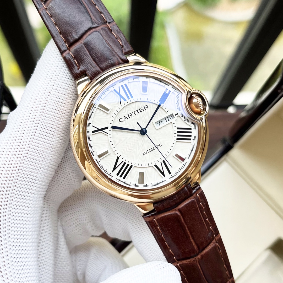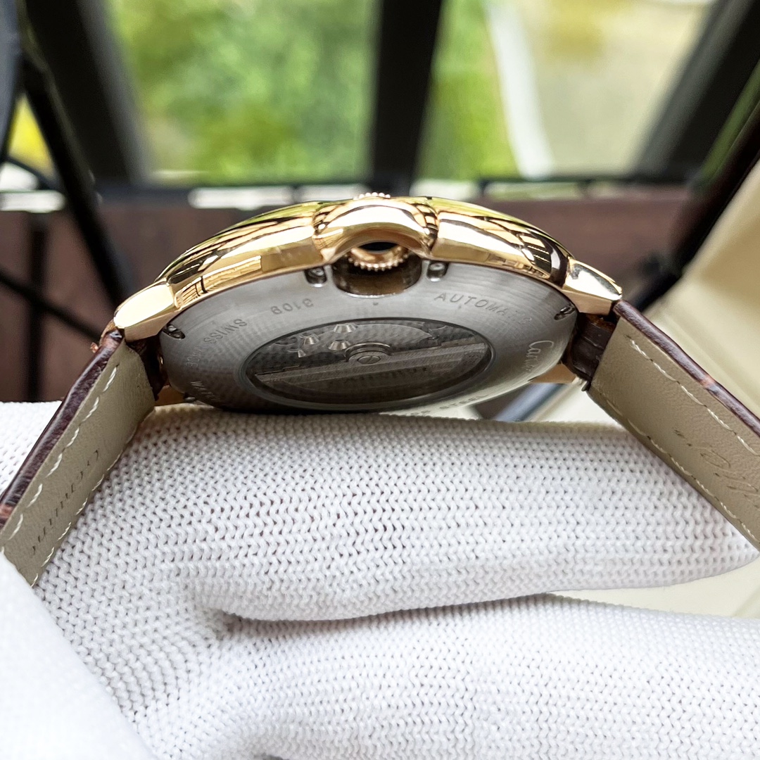 白壳,玫瑰金。简约时尚 优雅大方 卡地亚 Cartier 男士腕表 全自动机械机芯 矿物强化玻璃 316L精钢表壳 真皮表带 全新风格 商务休闲 尺寸:直径44mm 厚度12mm