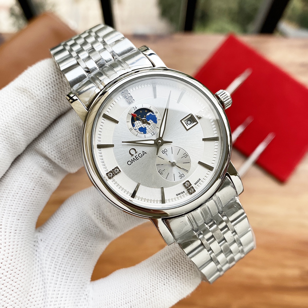 皮带,钢带,金白同价 品牌: 欧米茄 Omega 精品男士腕表,简约四针小秒盘搭配星辰设计,316精钢表壳,全自动飞轮机械机芯,尺寸:40 mm厚12mm,顶级316精钢钢带 纯自然光拍摄 零P图