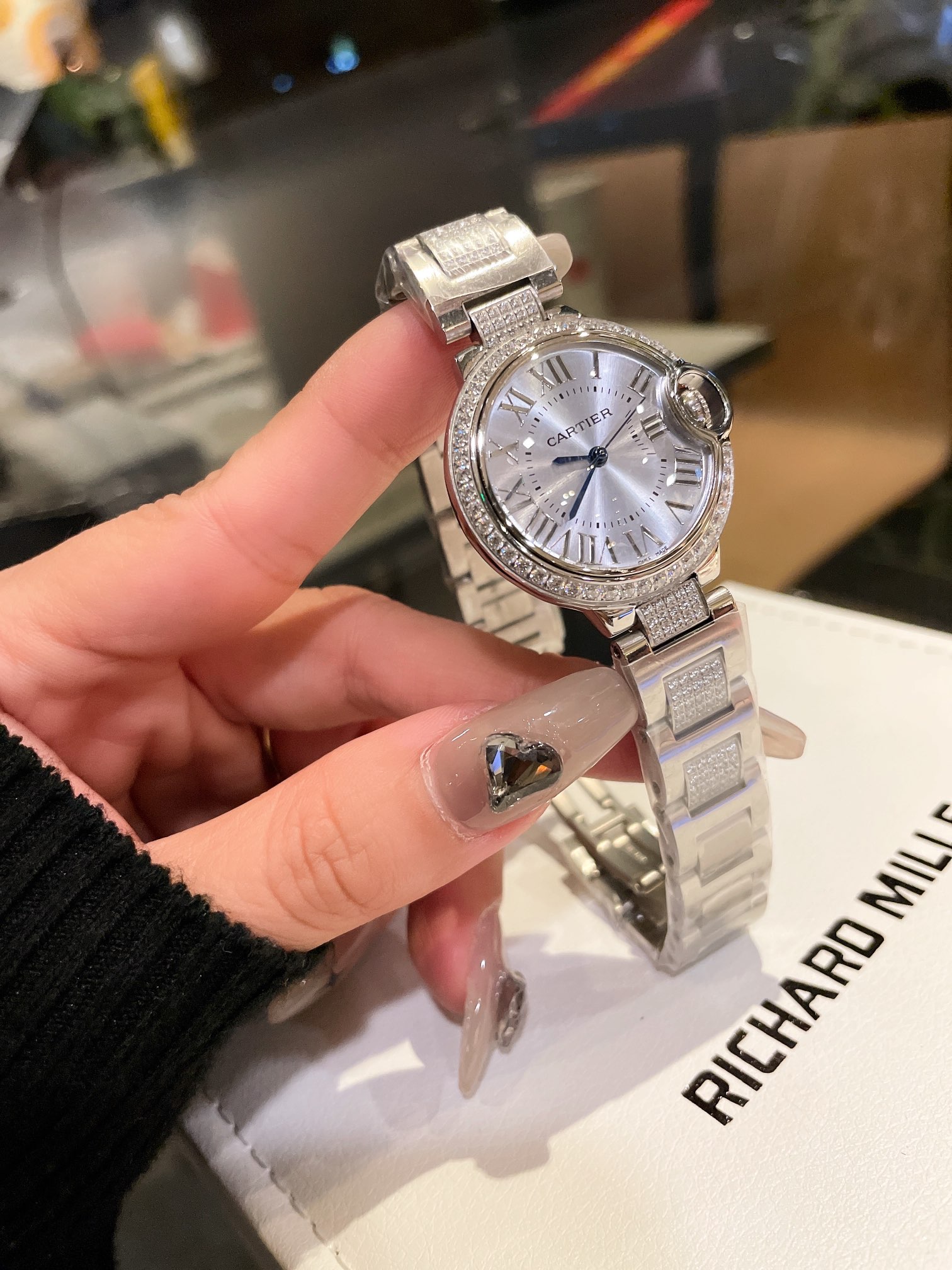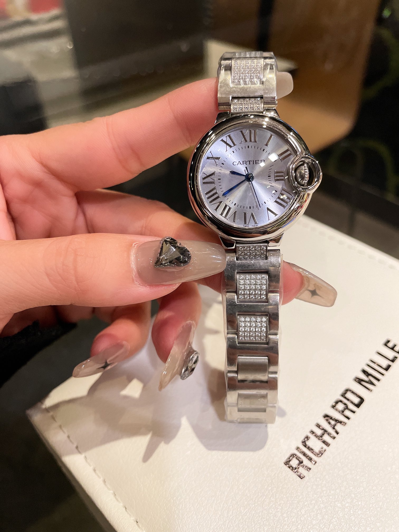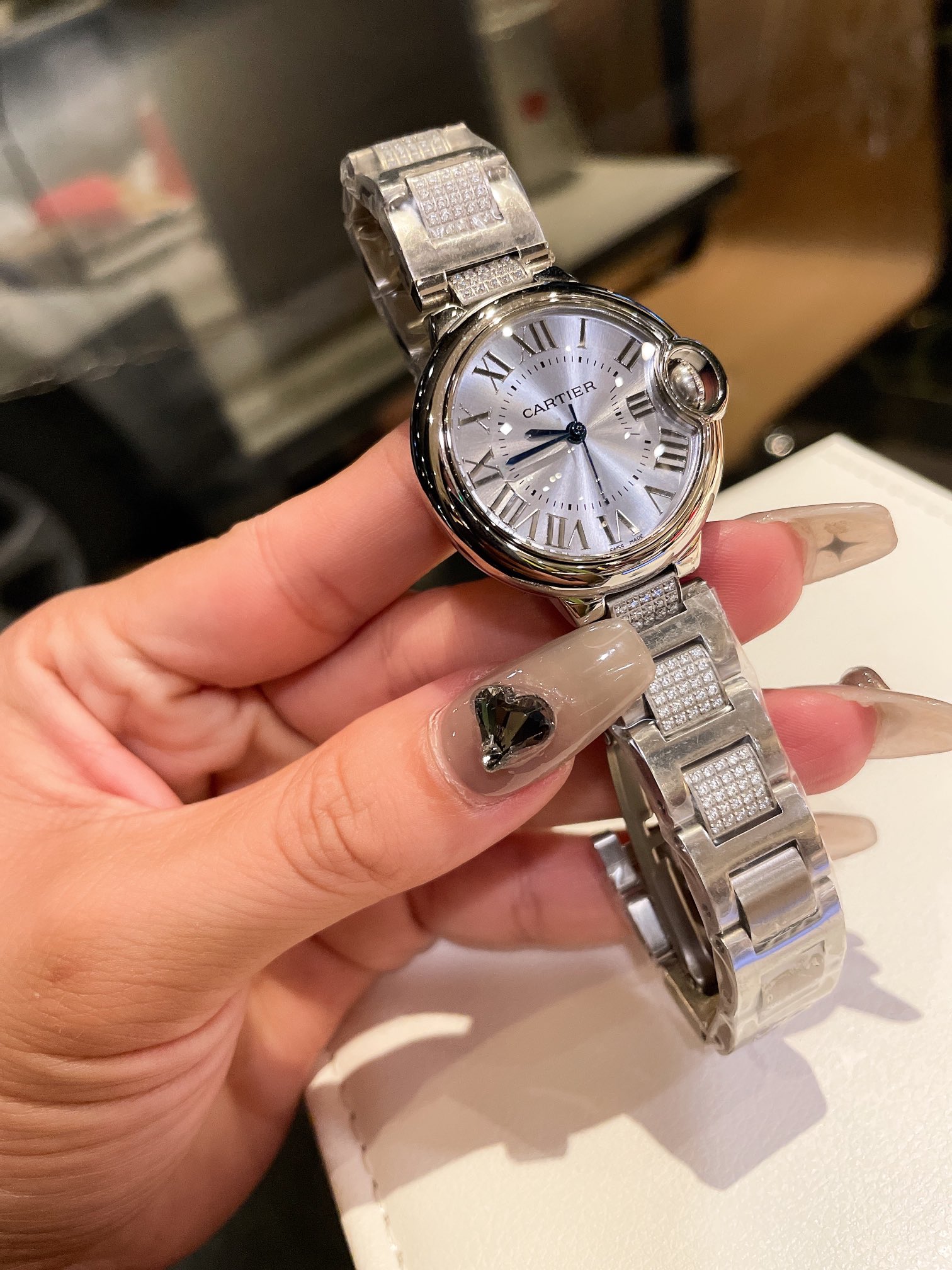 鱼眼玻璃 33cm 匠心之作 卡地亚 Cartier 蓝气球,精致33mm石英腕表,传统三针设计 星空运转 时间流淌 特殊工艺镶钻,个性 完美 搭配鱼眼蓝宝玻璃运用瑞士原装瑞士石英机芯 走时精准 进口高光牛皮带 原装折叠扣 认准高